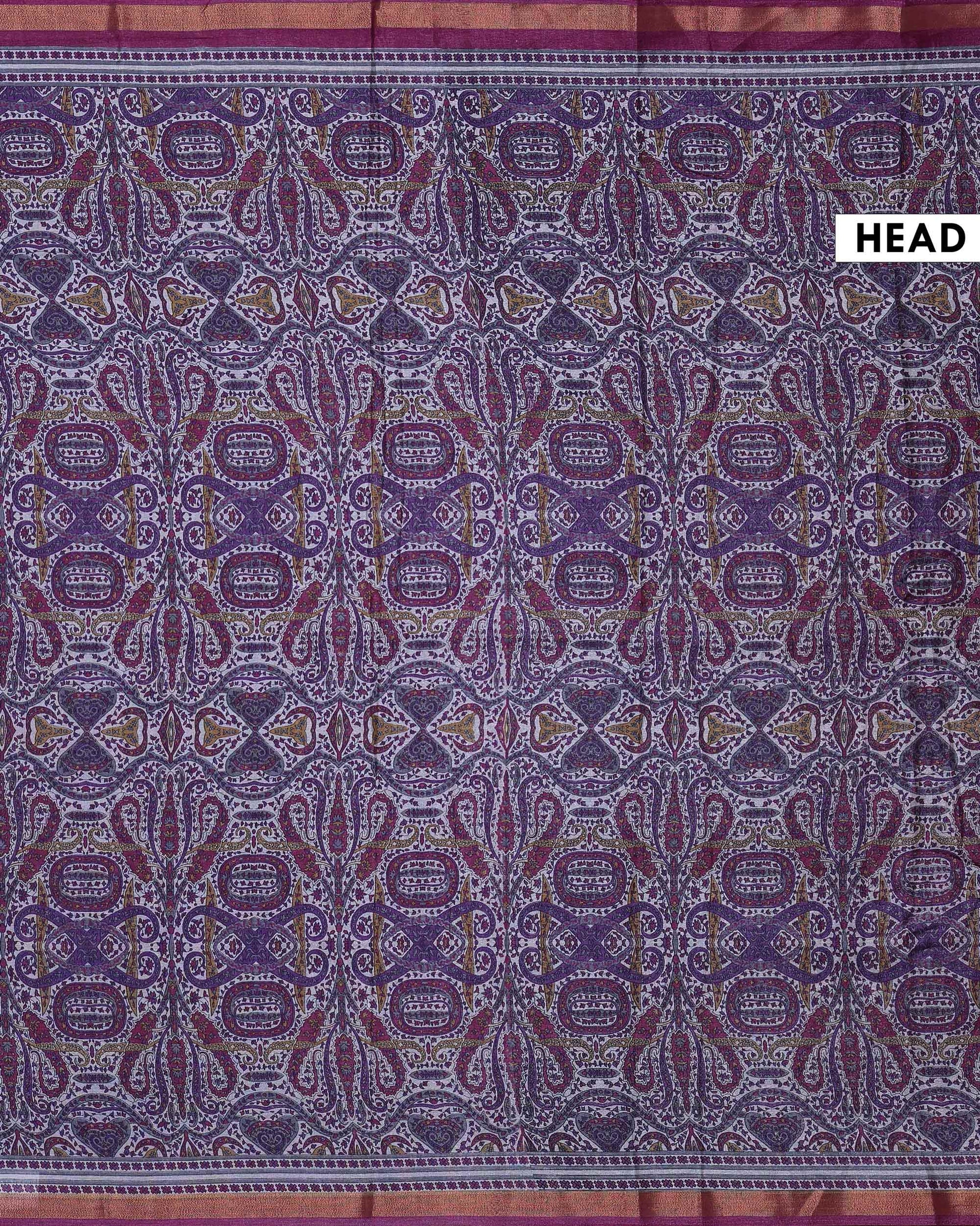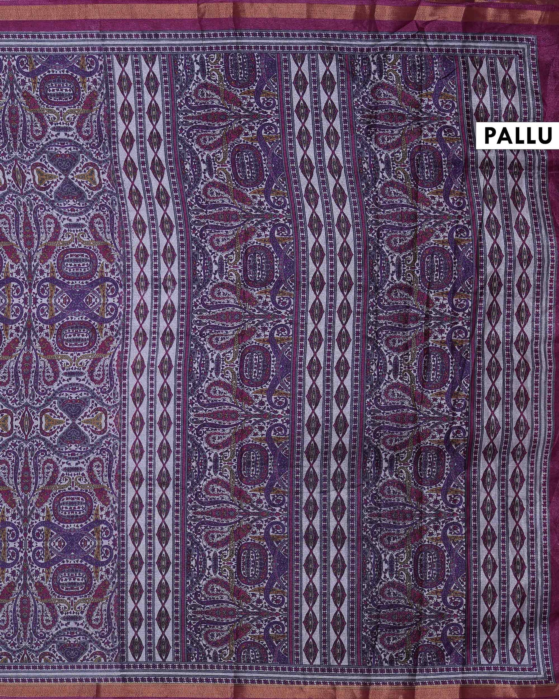 Elegant Art Silk Saree with Intricate Paisley & Geometric Motifs Traditional Print and Woven Border - Light Purple