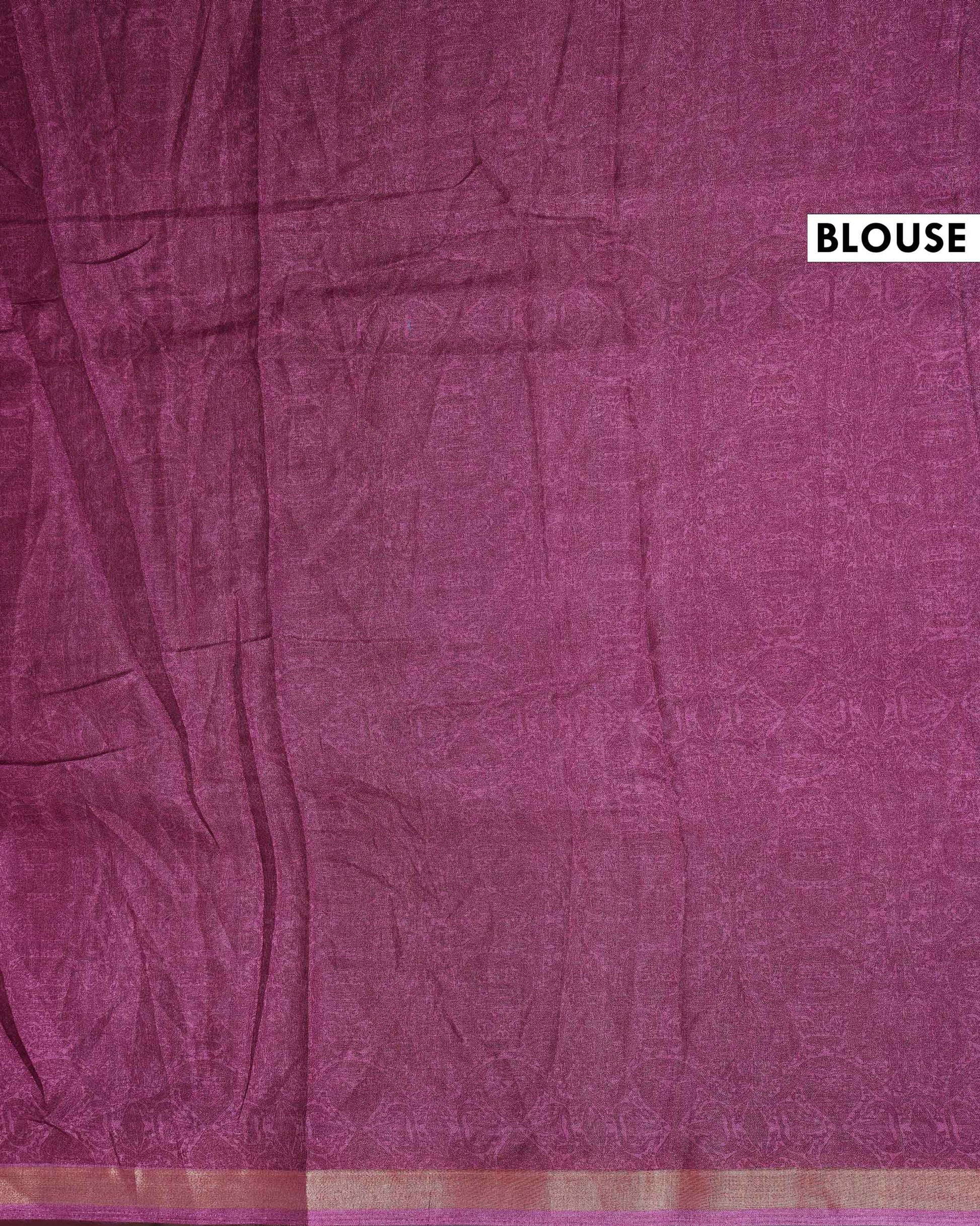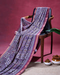 - Drape yourself in elegance with this stunning Purple Art Silk Saree featuring intricate Ajrakh inspired prints and a contrasting border