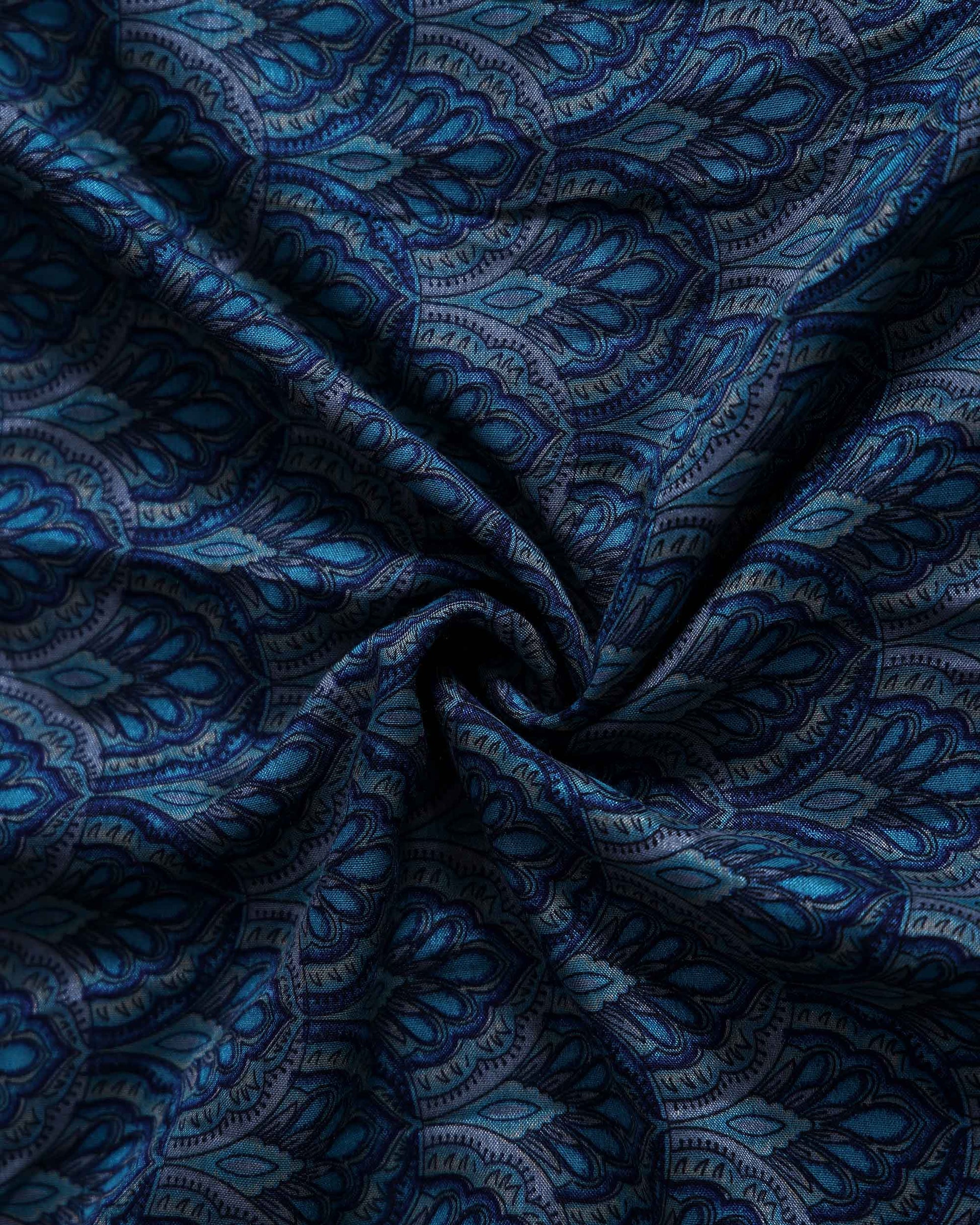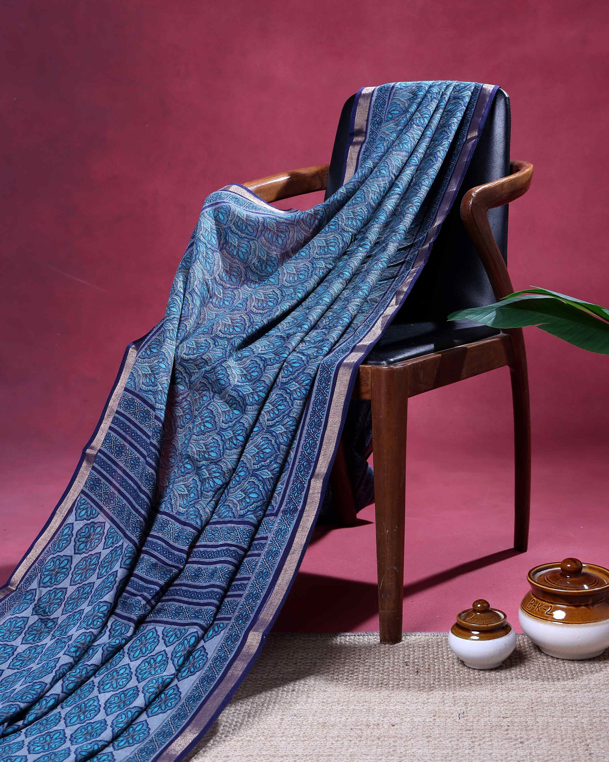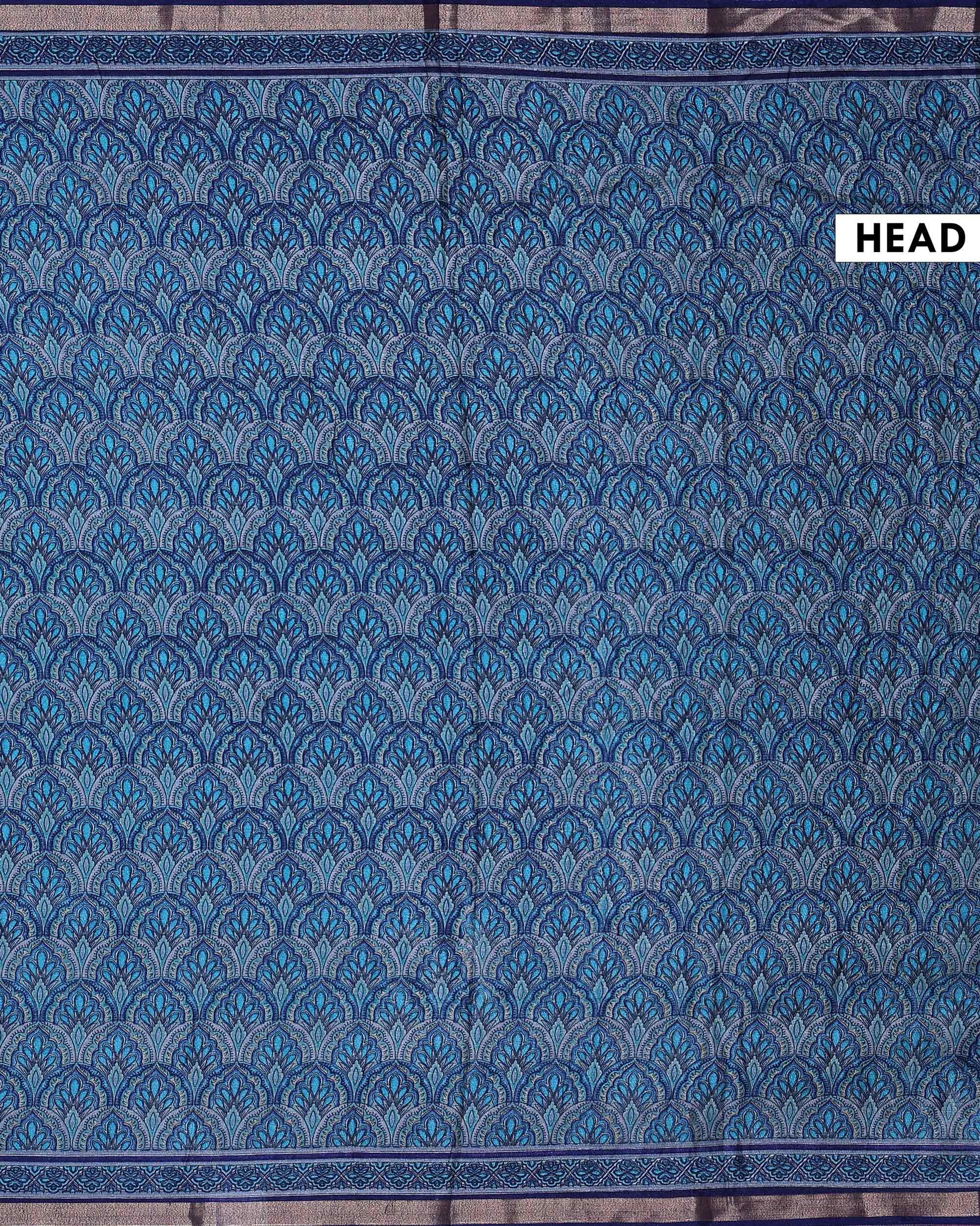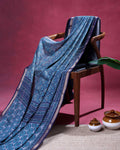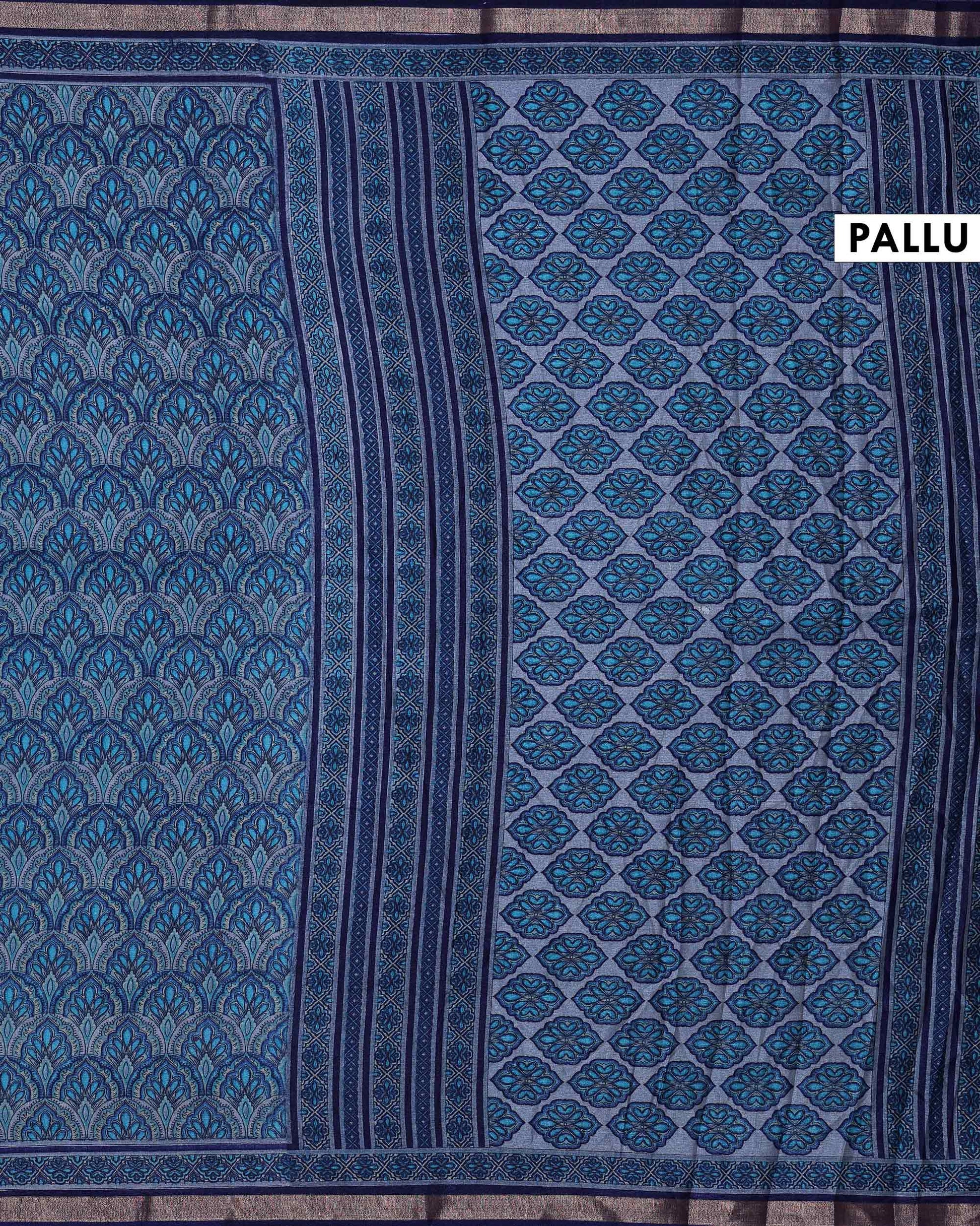 - Discover this stunning art silk saree in celestial blue shades, featuring intricate hand block prints for a traditional look