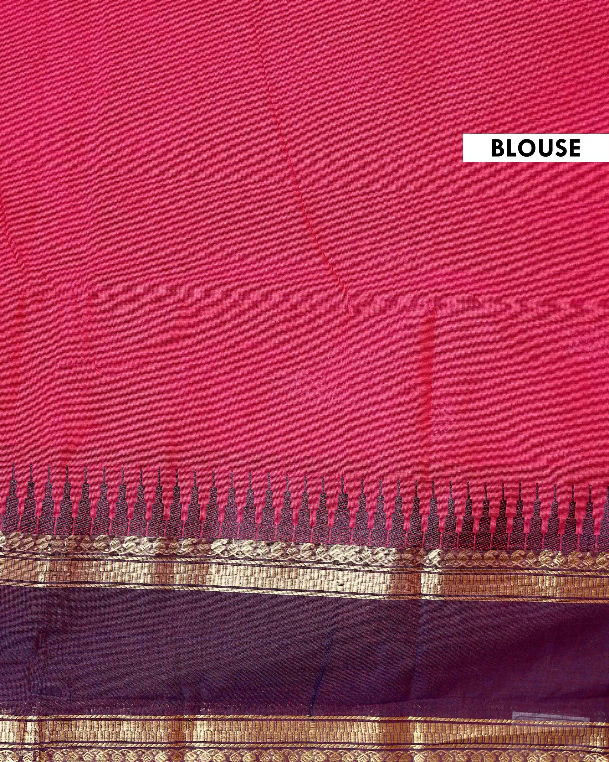 Elegant Authentic Kanchi Cotton Saree with Classic Temple Motif Zari Work and Rich Handloom Finish - Dark Pink