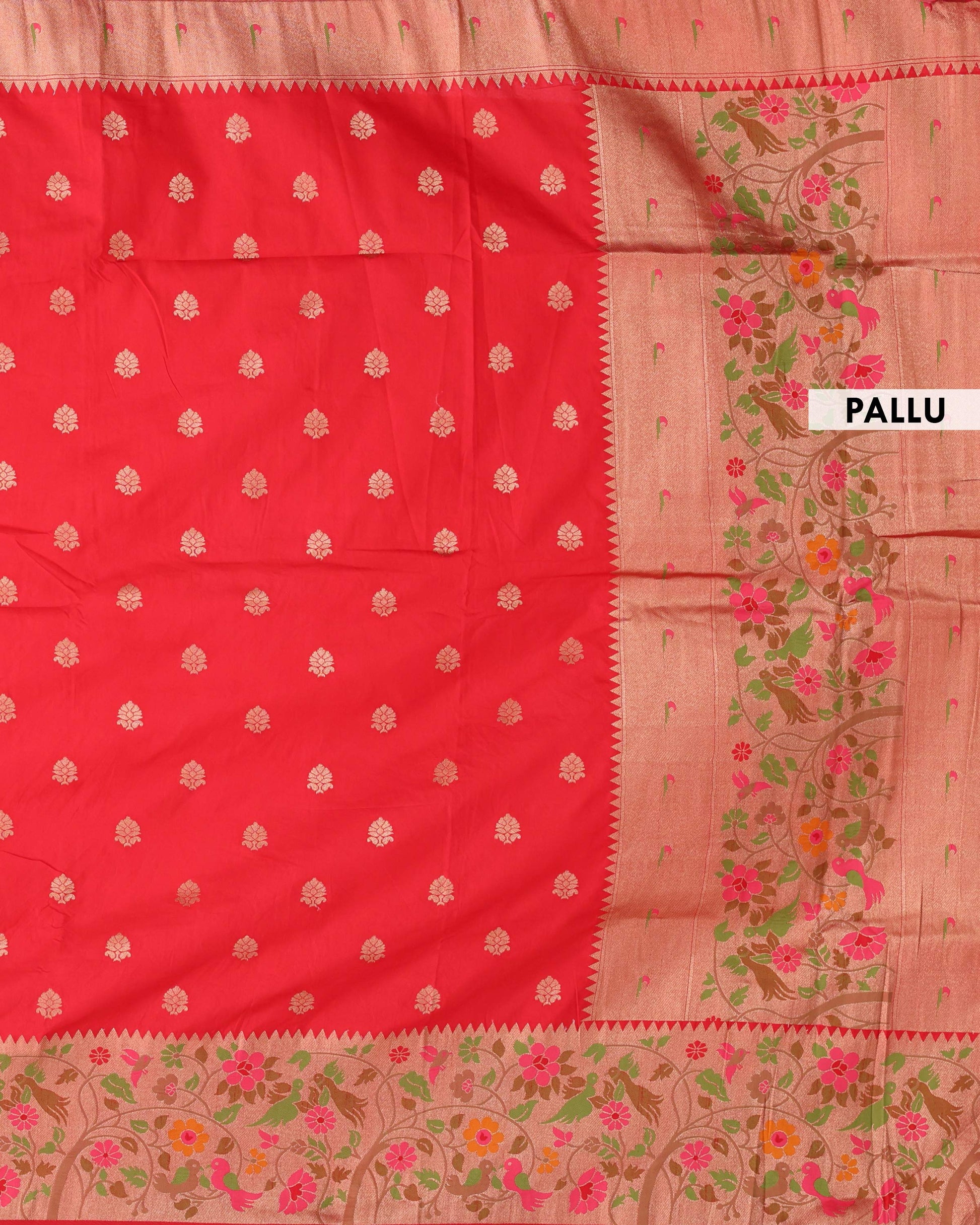 Elegant Banarasi Semi Silk Saree with Butta Motifs Floral Zari Woven Border and Traditional Contrast Pallu Design - Red