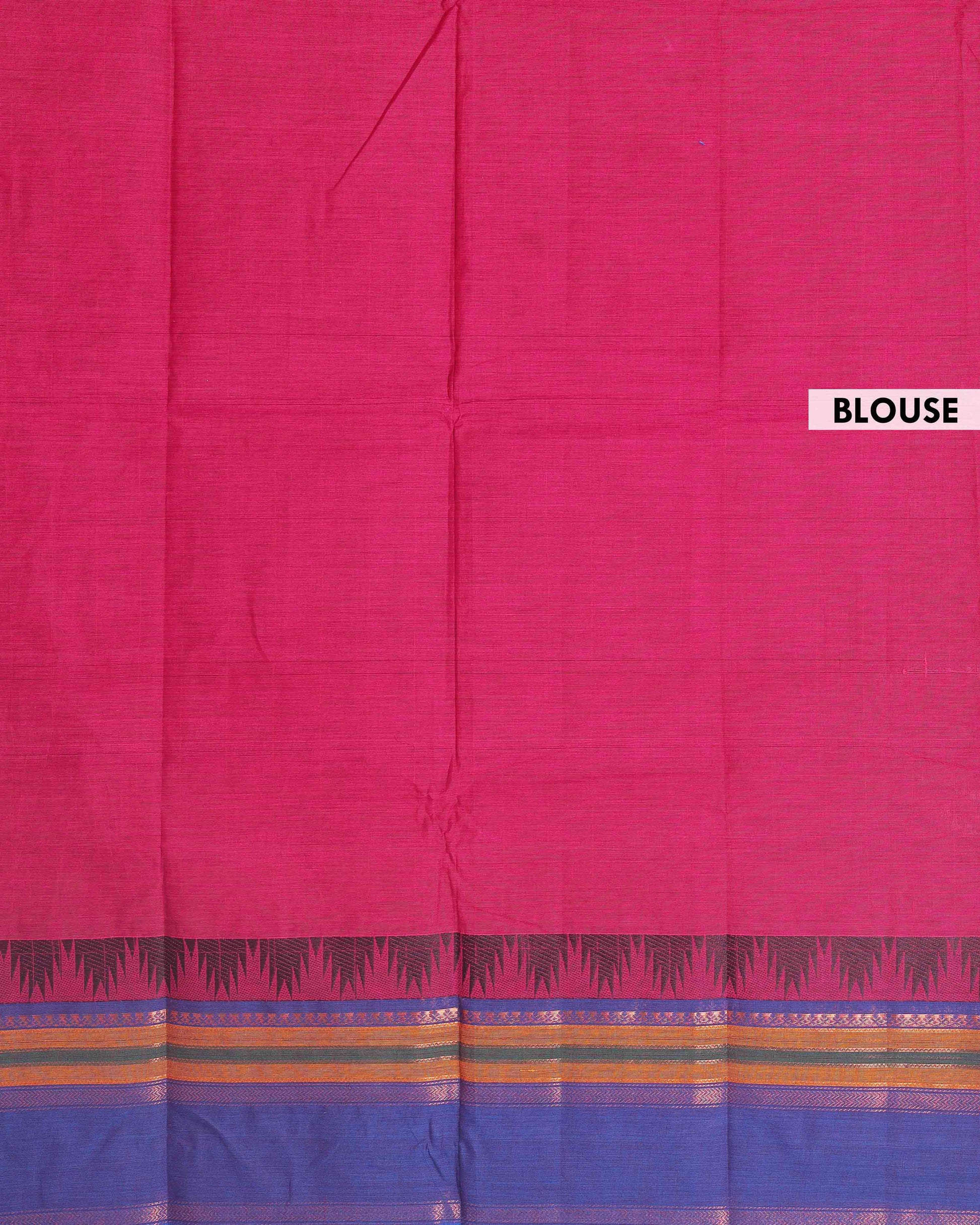 Elegant Chettinad Handloom Cotton Saree with Striped Body and Temple Border - Dark Pink