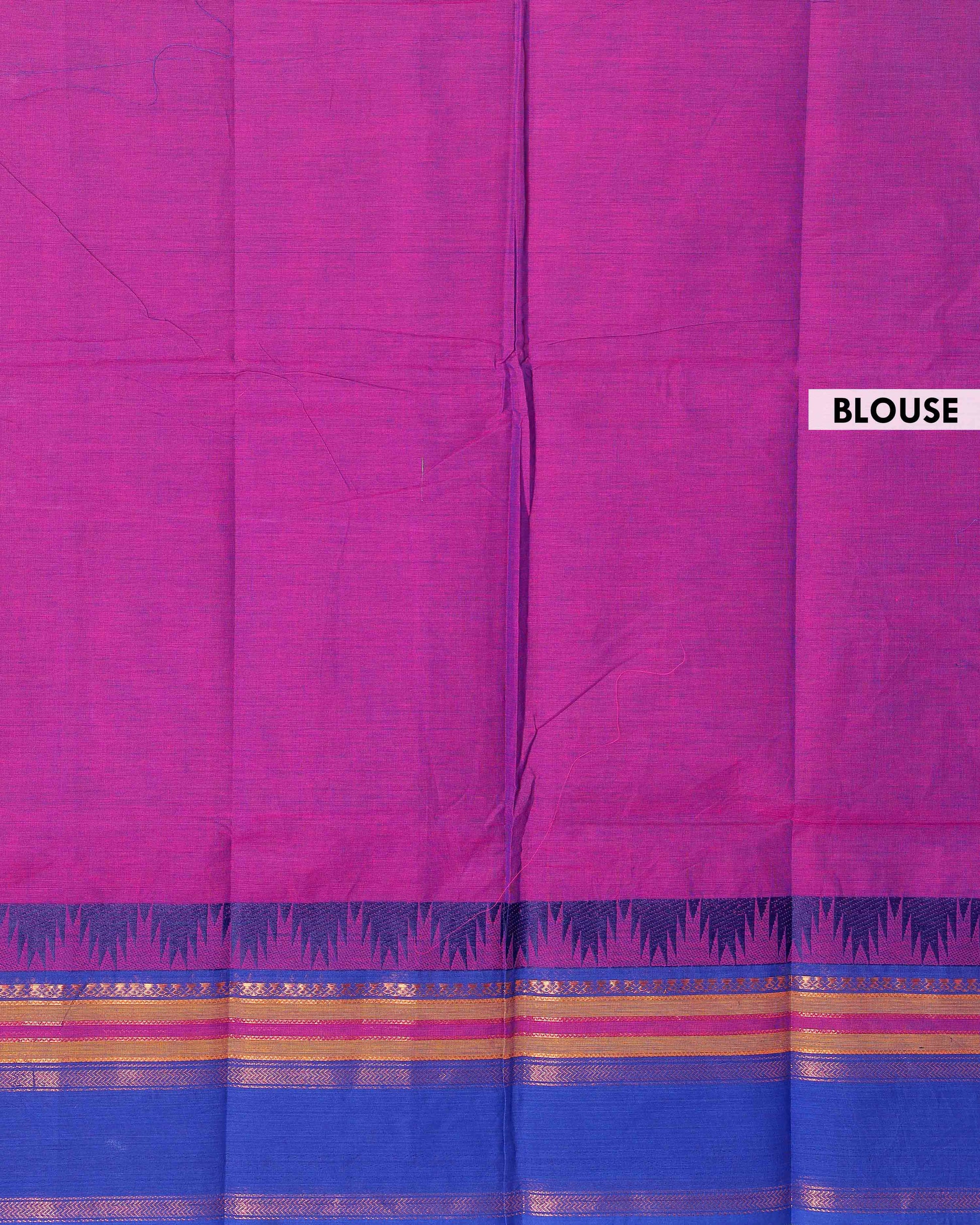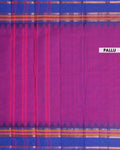 - This handloom Chettinad cotton saree a vibrant Purple body with a subtle checkered pattern, offering a graceful drape and comfortable feel