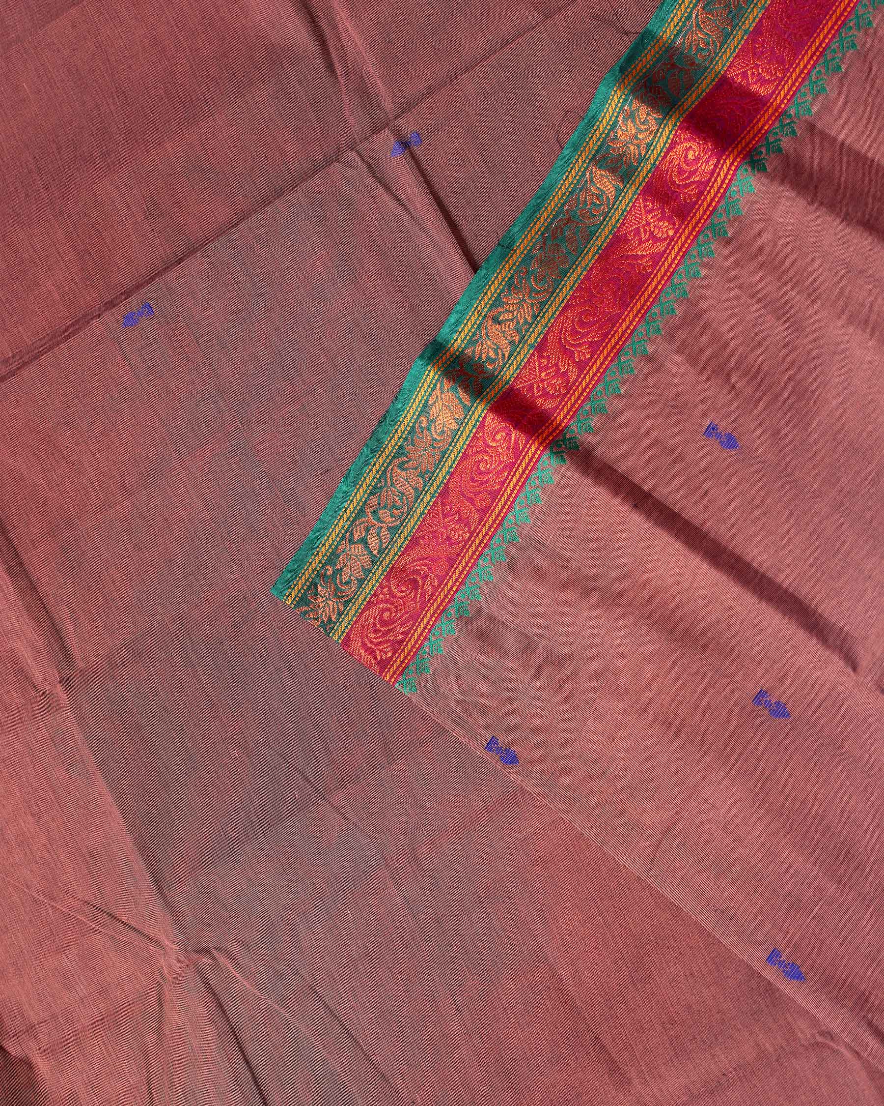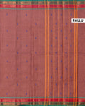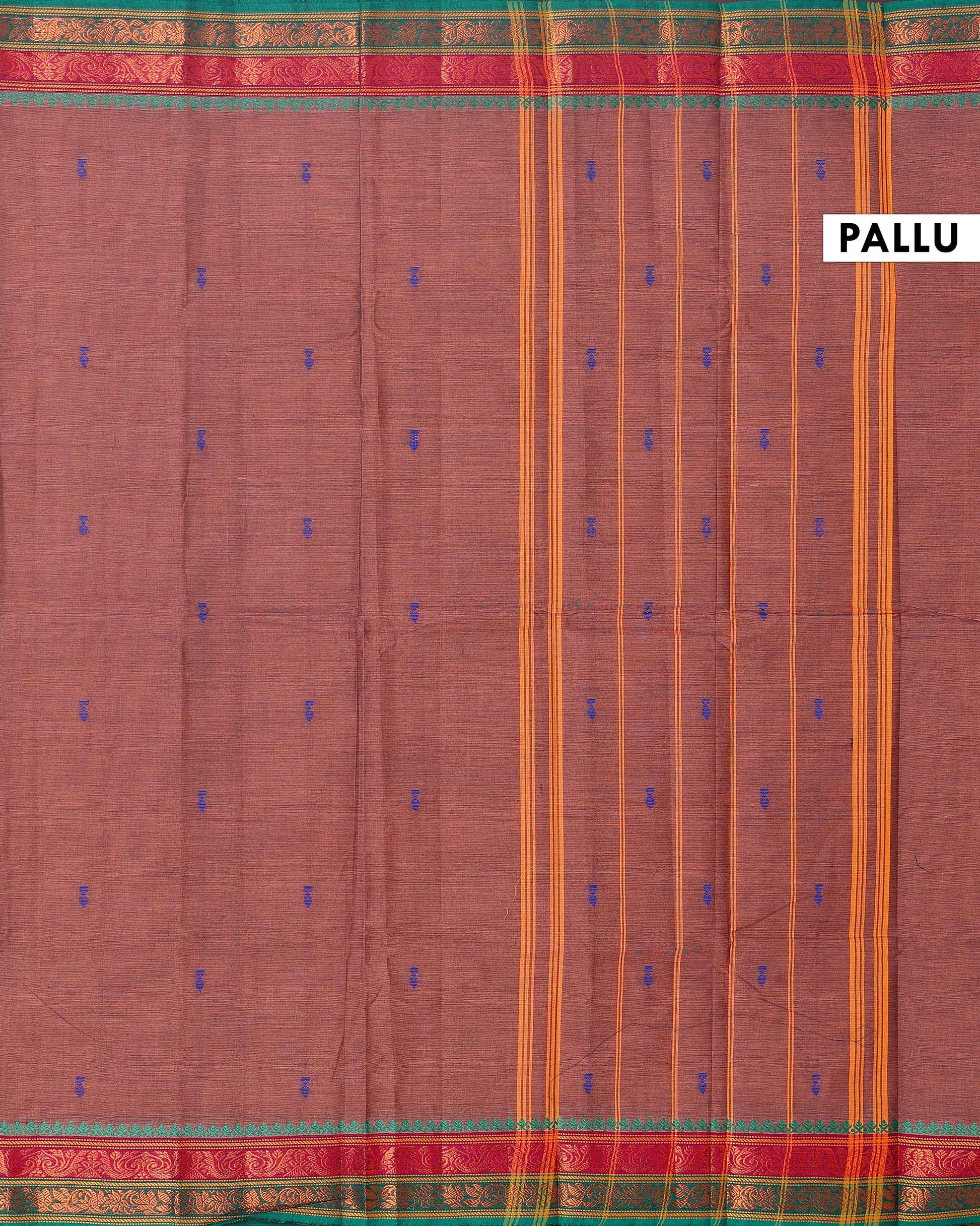 - This elegant Dark Brown Chettinad cotton saree a subtle textured body