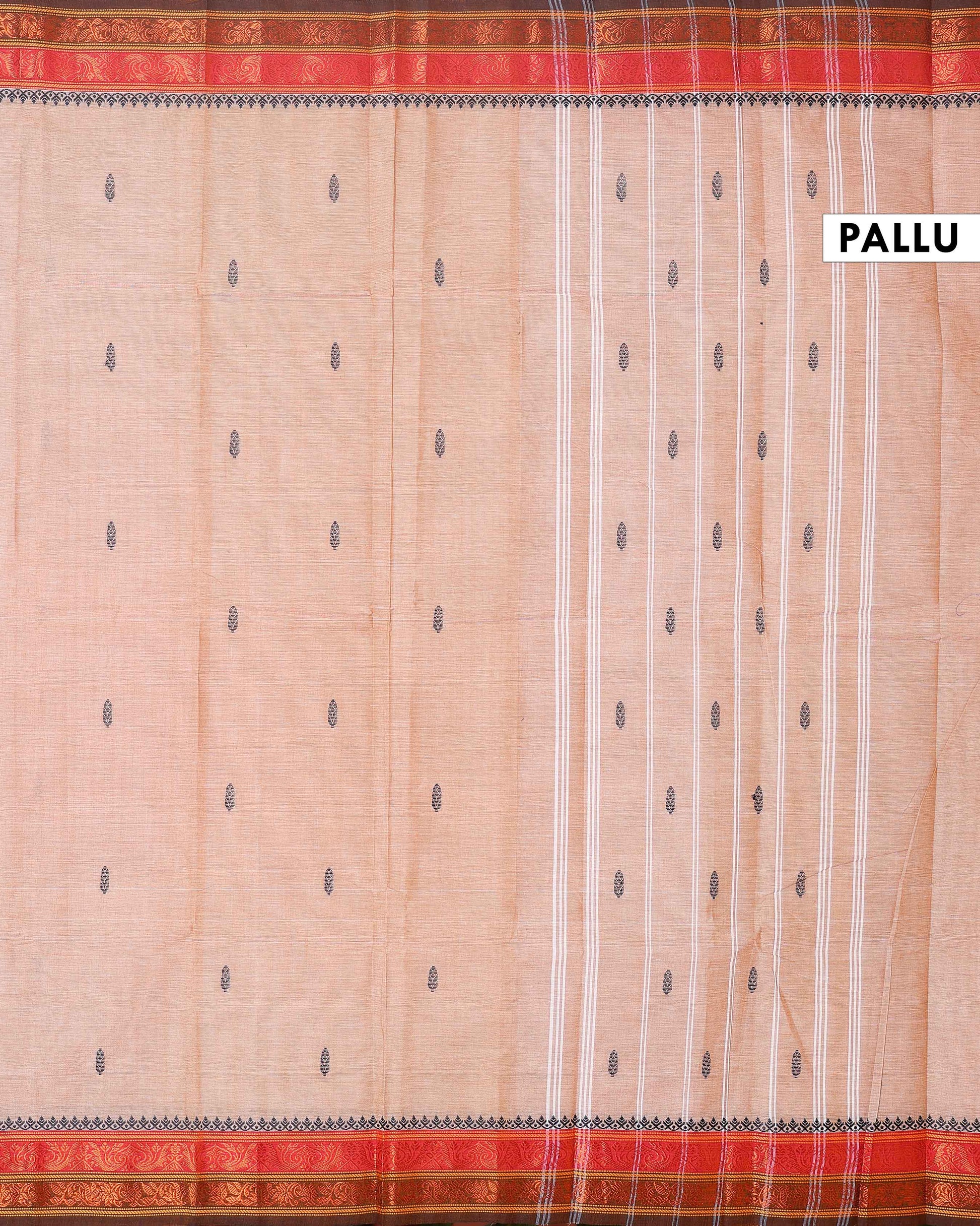 Elegant Chettinad Handloom Saree with Temple Border Design - Light Peach