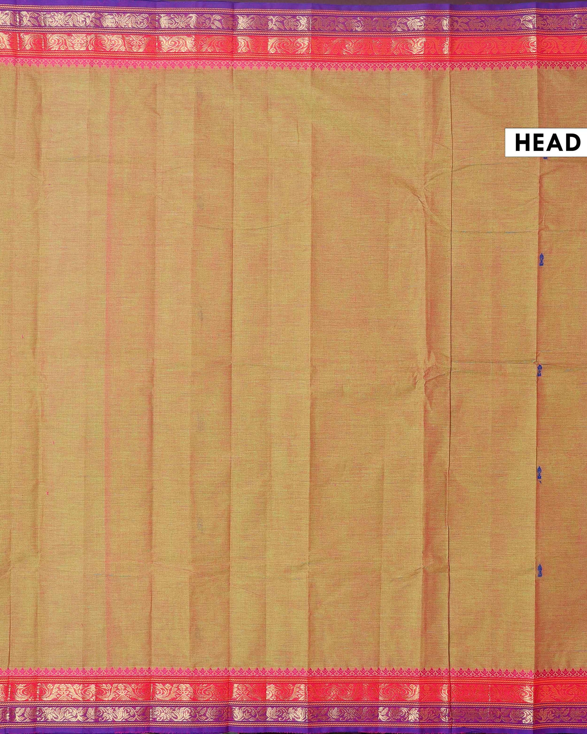 Elegant Chettinad Handloom Saree with Temple Border Design - Olive Green