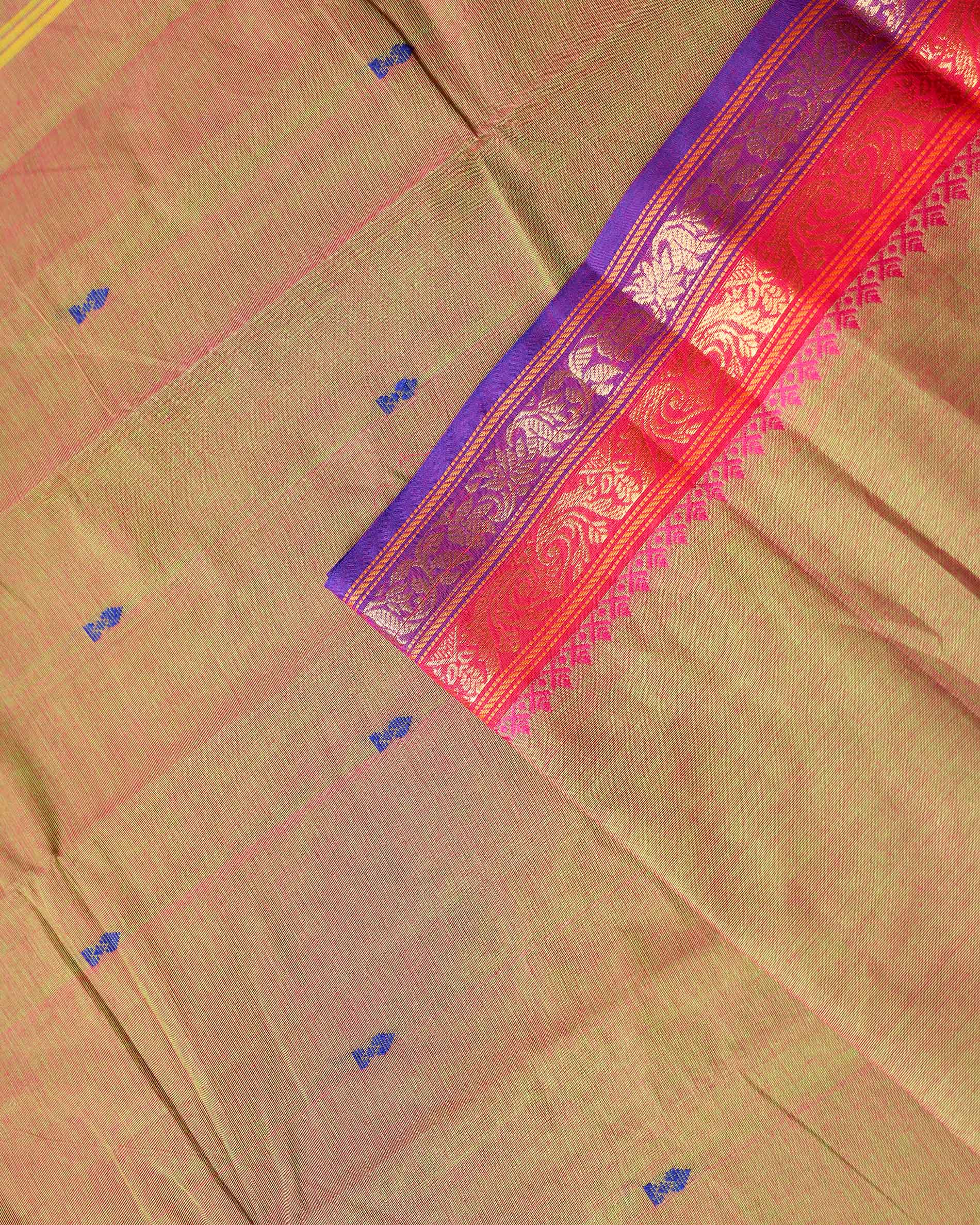 - This elegant Olive Green Chettinad cotton saree a subtle textured body
