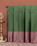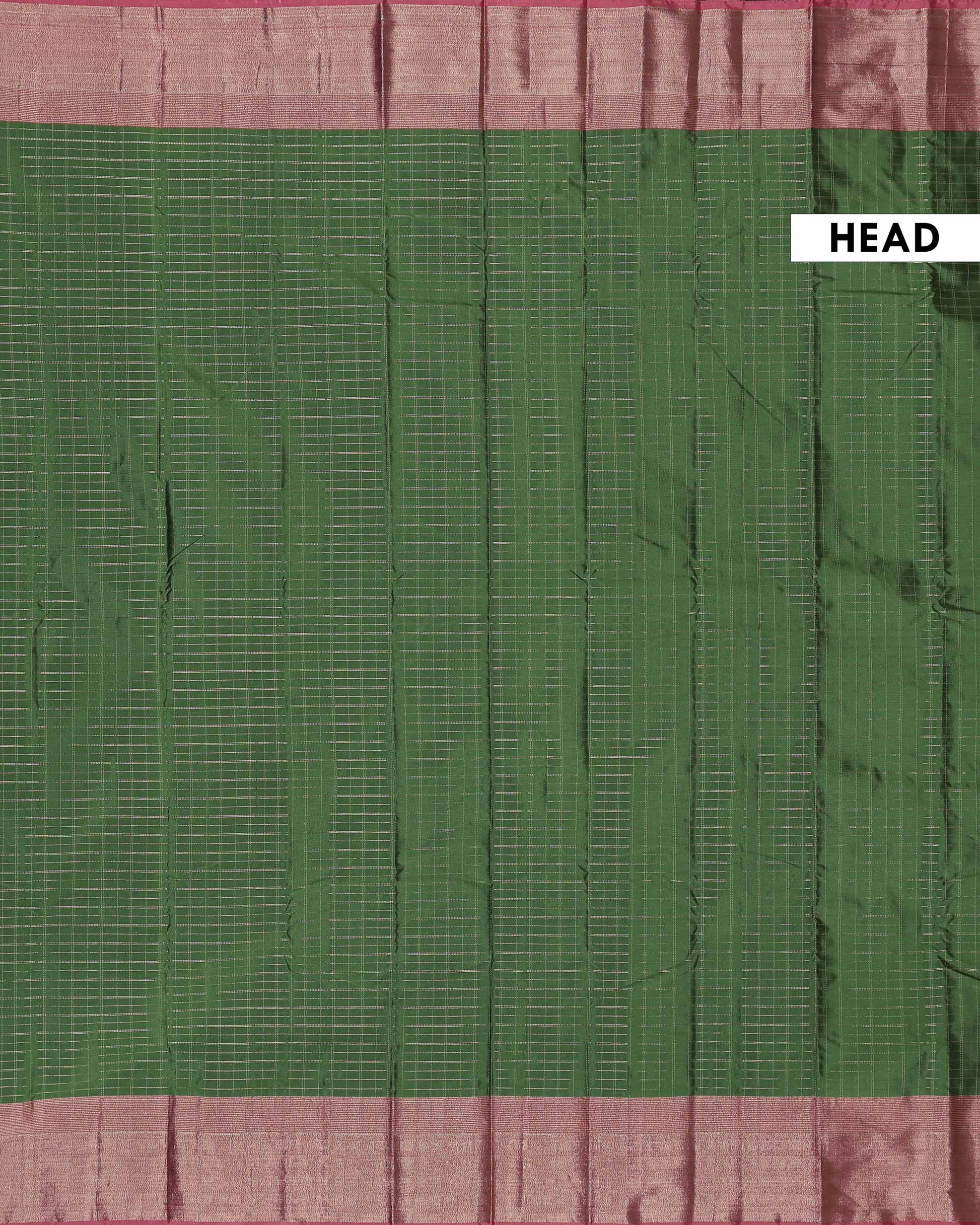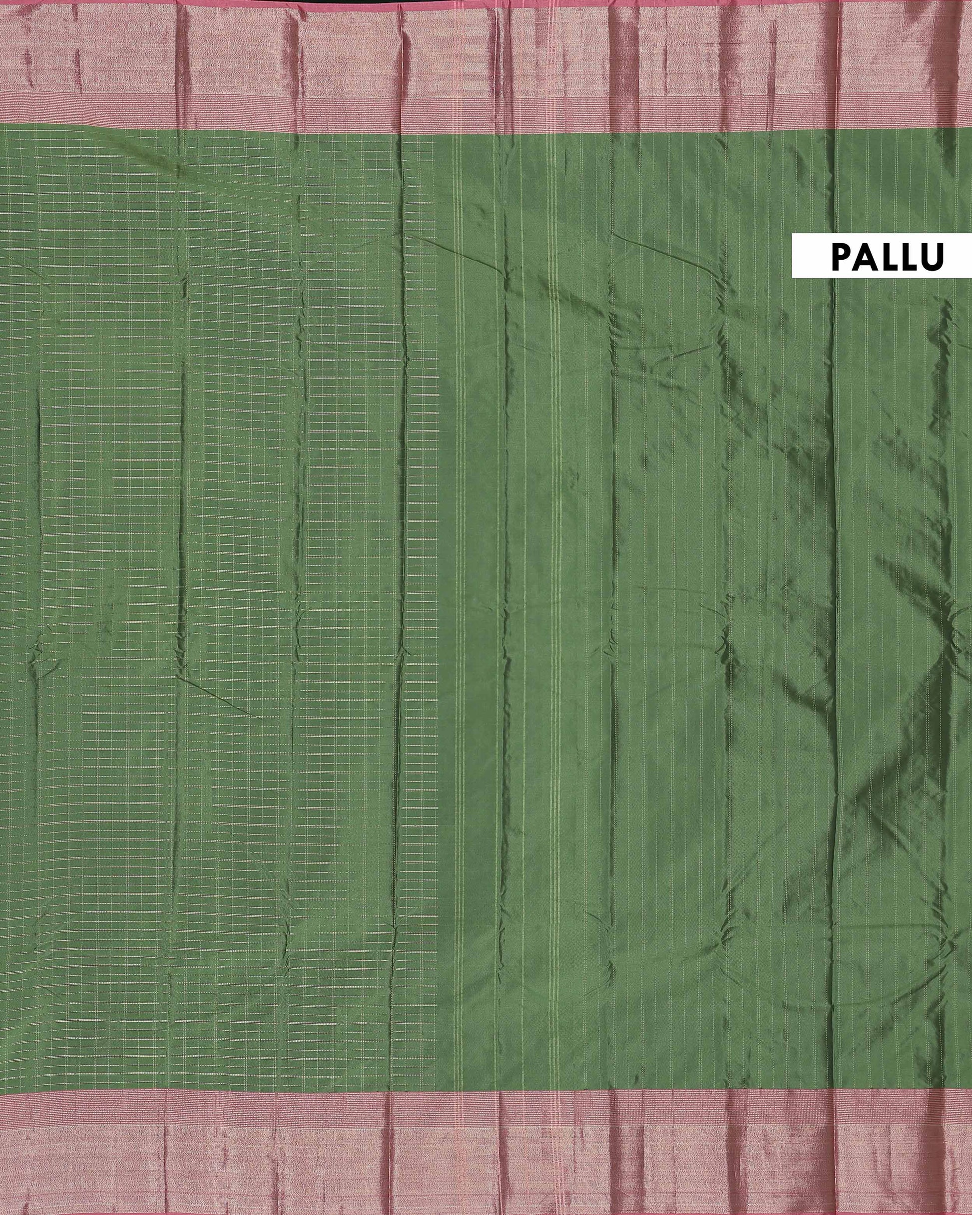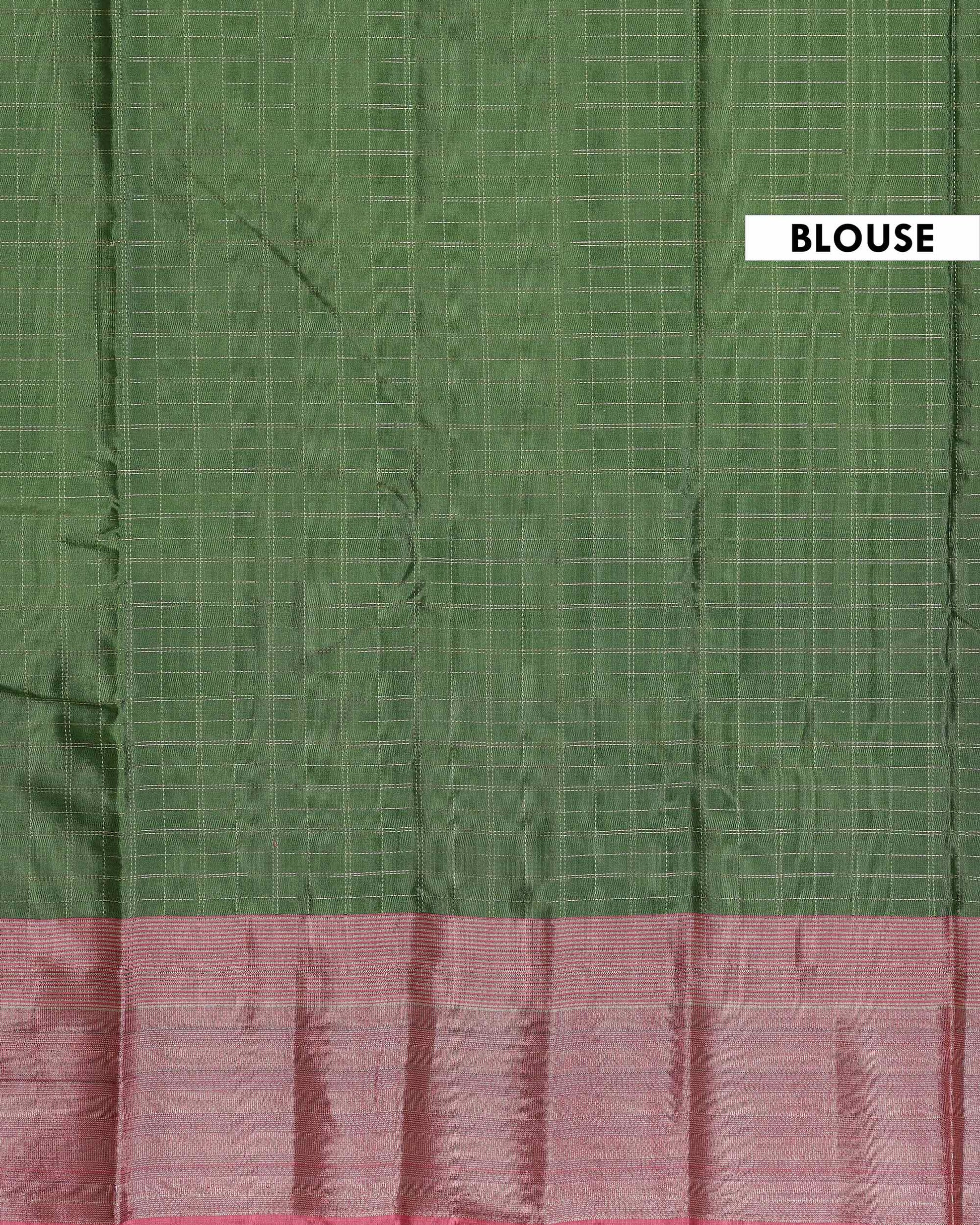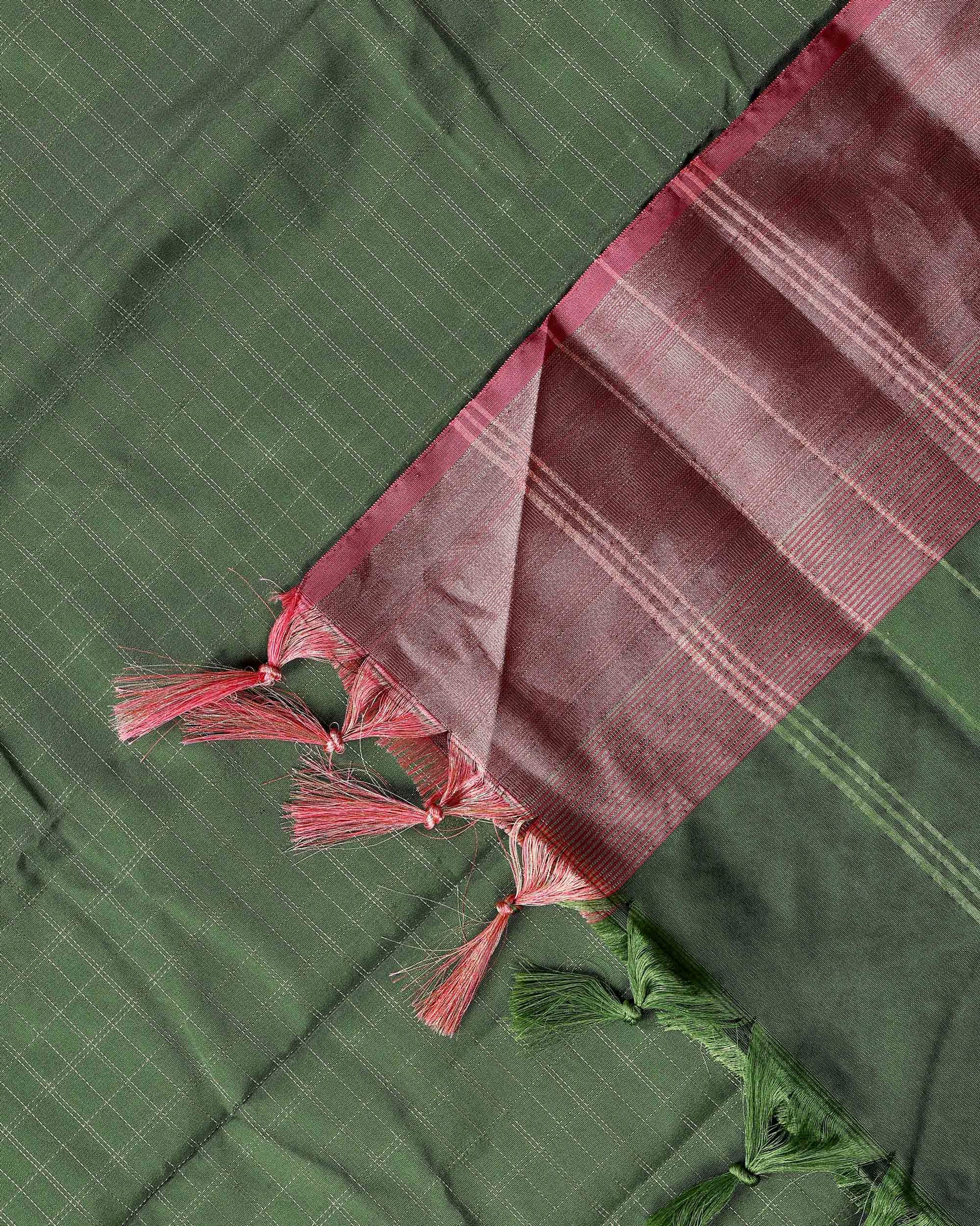 - This elegant green soft silk saree a delicate checkered pattern and a stunning contrast border with intricate zari work