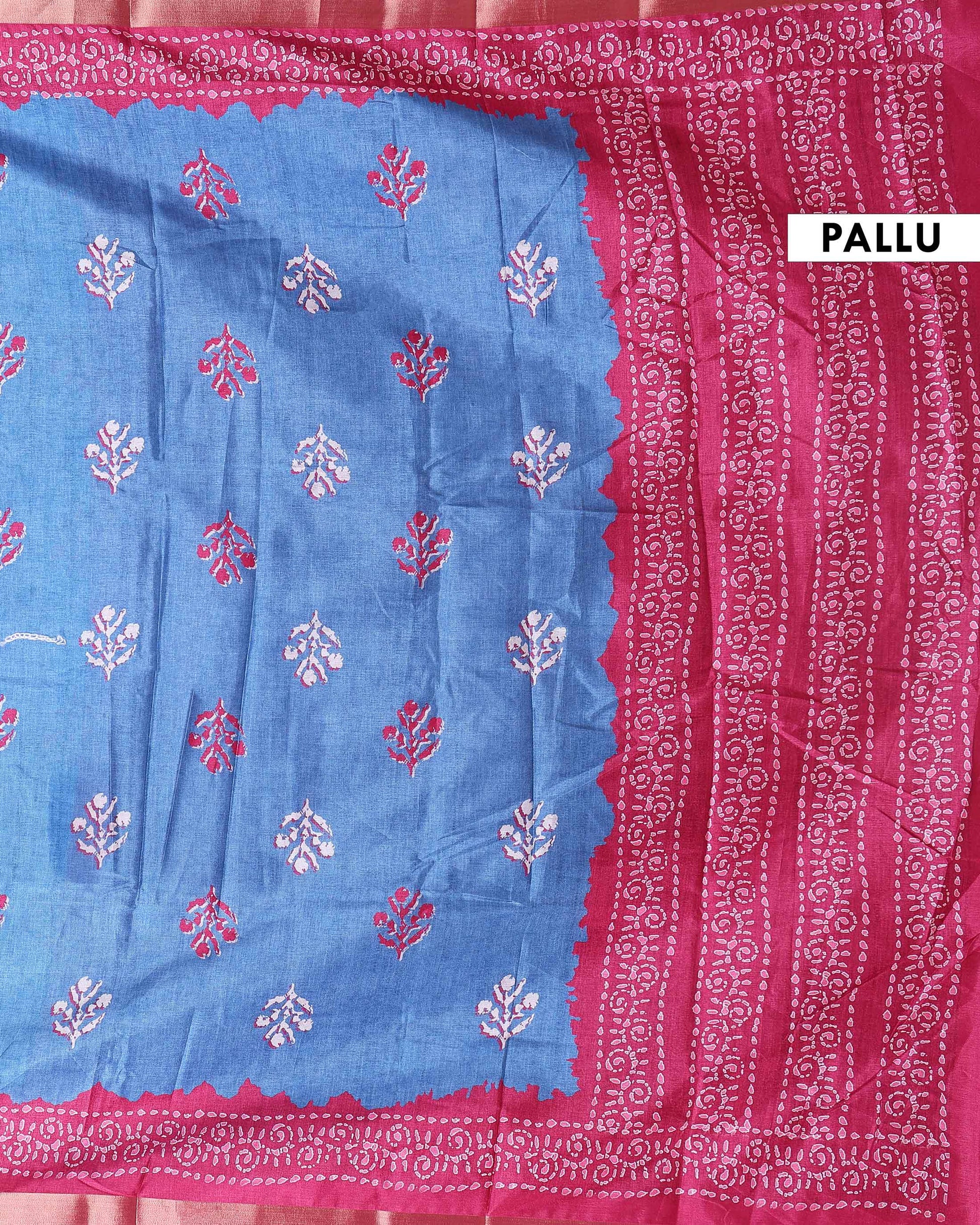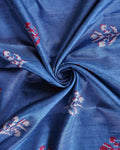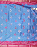 Elegant Dola Saree with Floral Motifs and Contrast Border - Blue