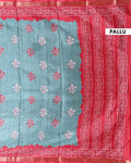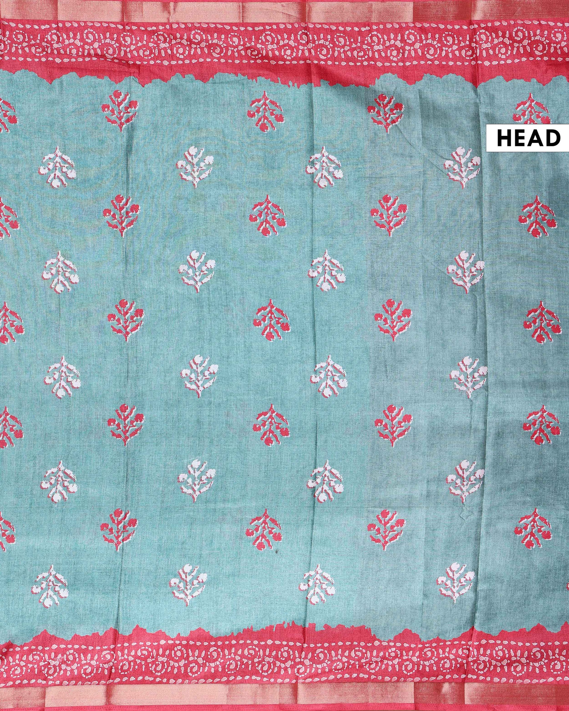 Elegant Dola Saree with Floral Motifs and Contrast Border - Green