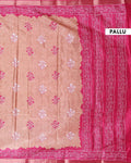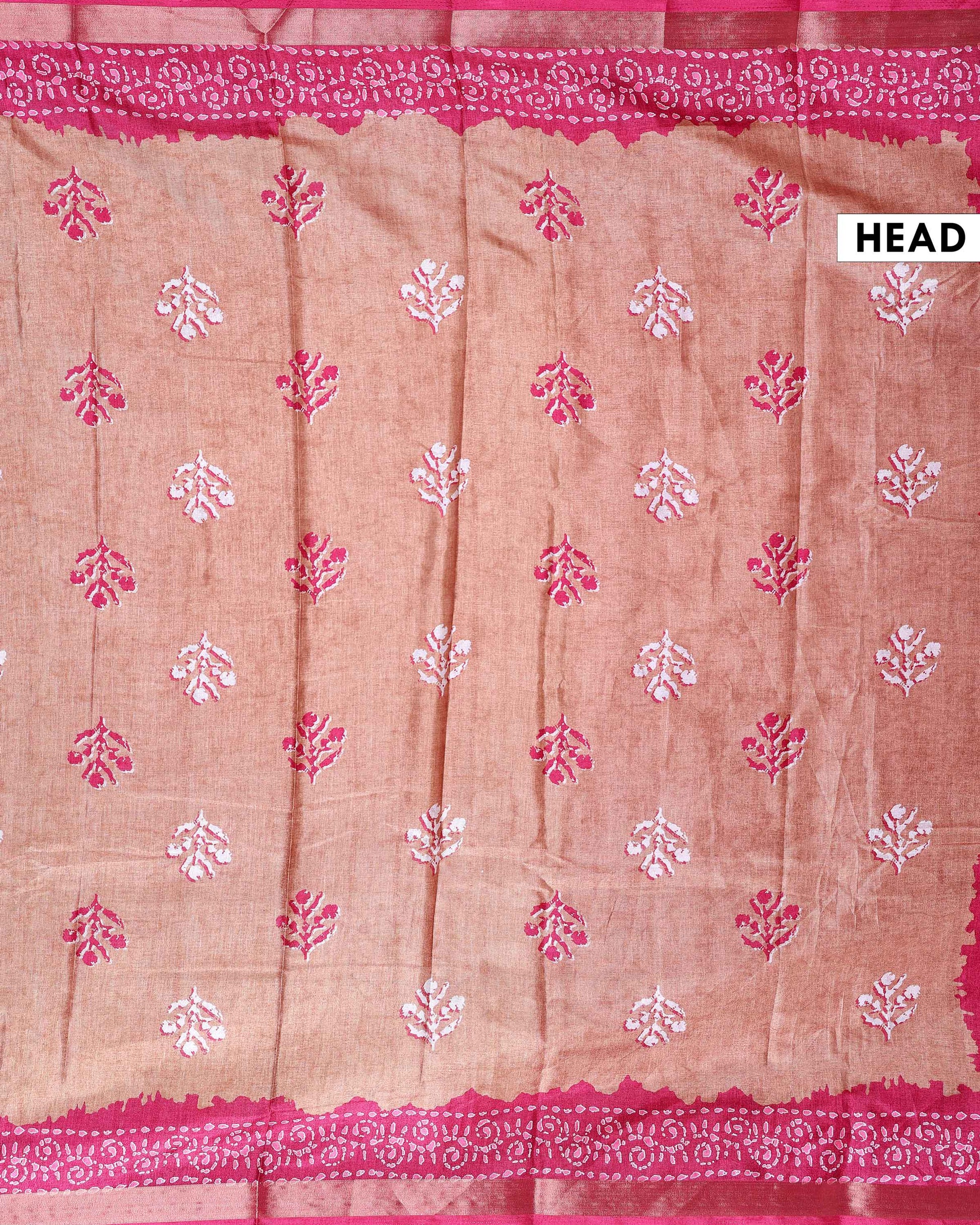 Elegant Dola Saree with Floral Motifs and Contrast Border - Light Brown