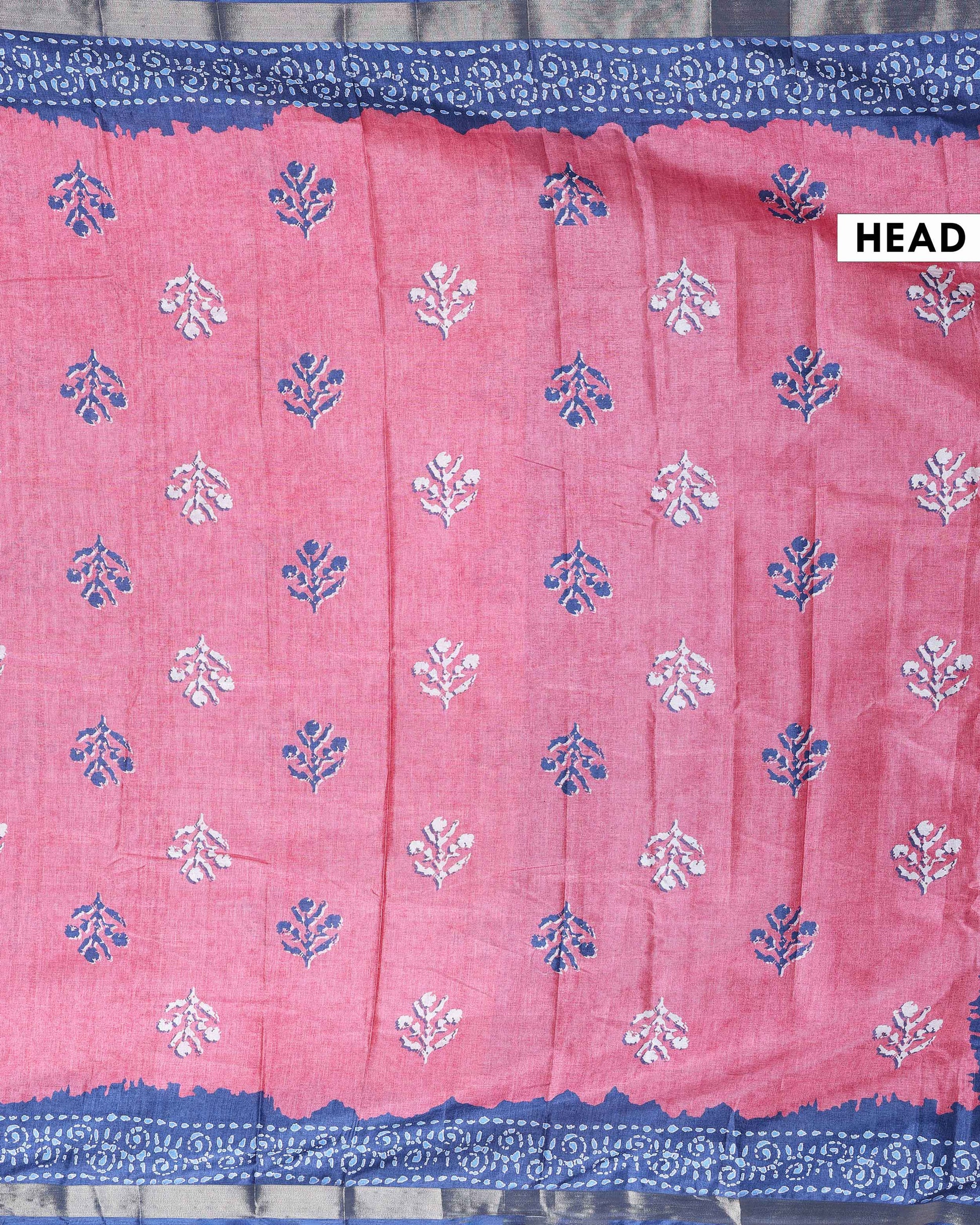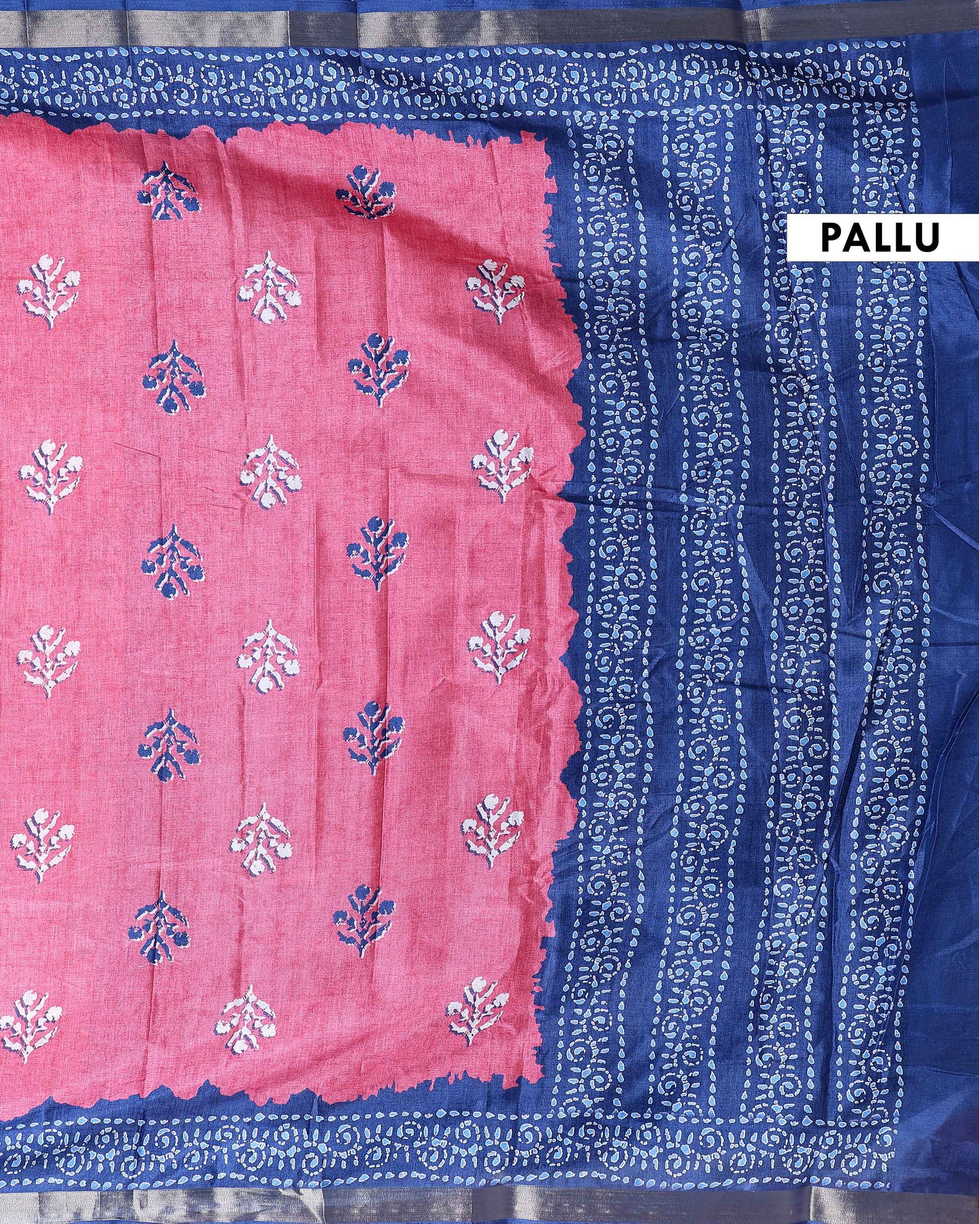 - This elegant dola Semi silk saree a vibrant Pink body with intricate white floral patterns