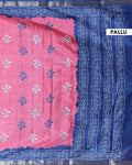 Elegant Dola Saree with Floral Motifs and Contrast Border -Pink