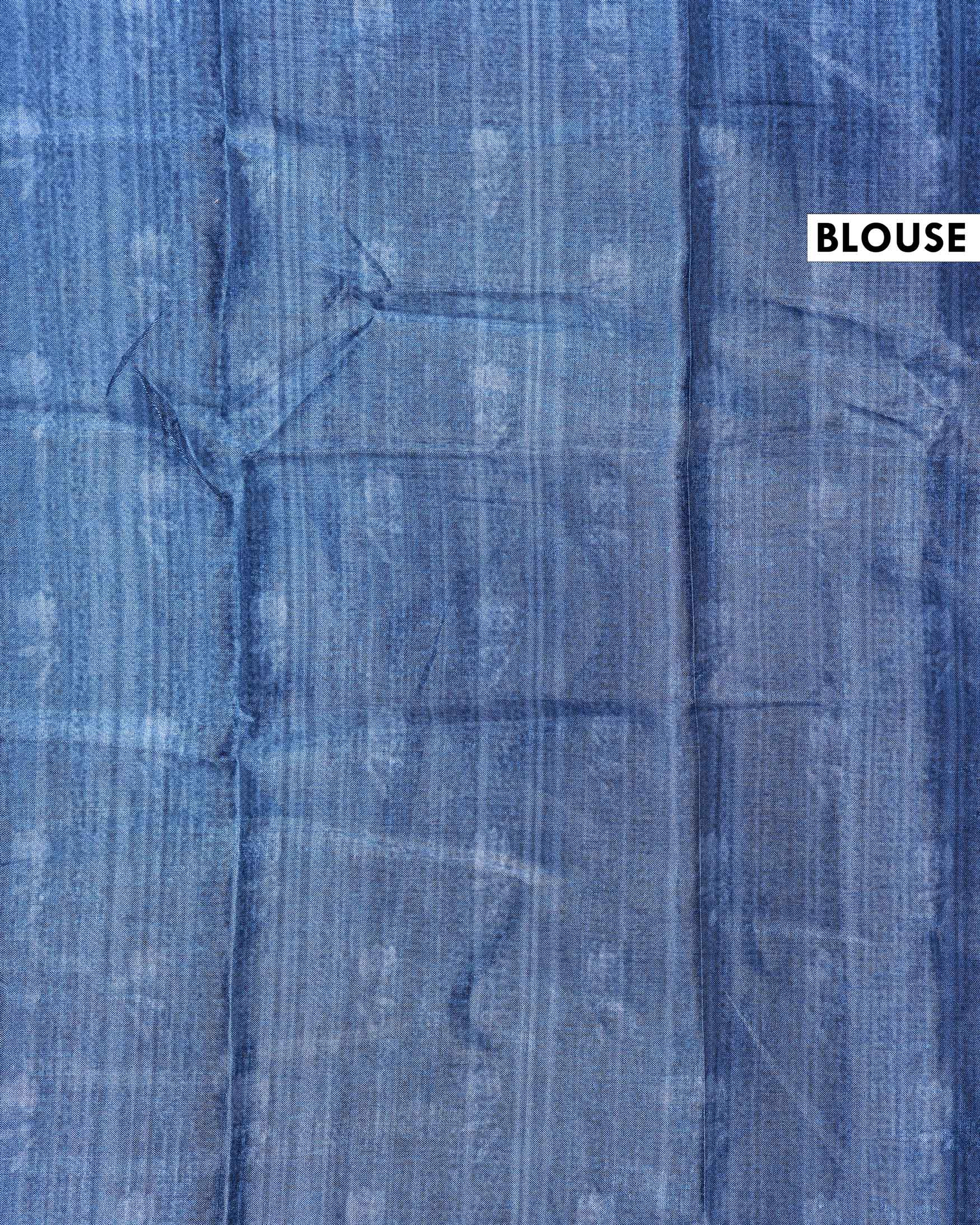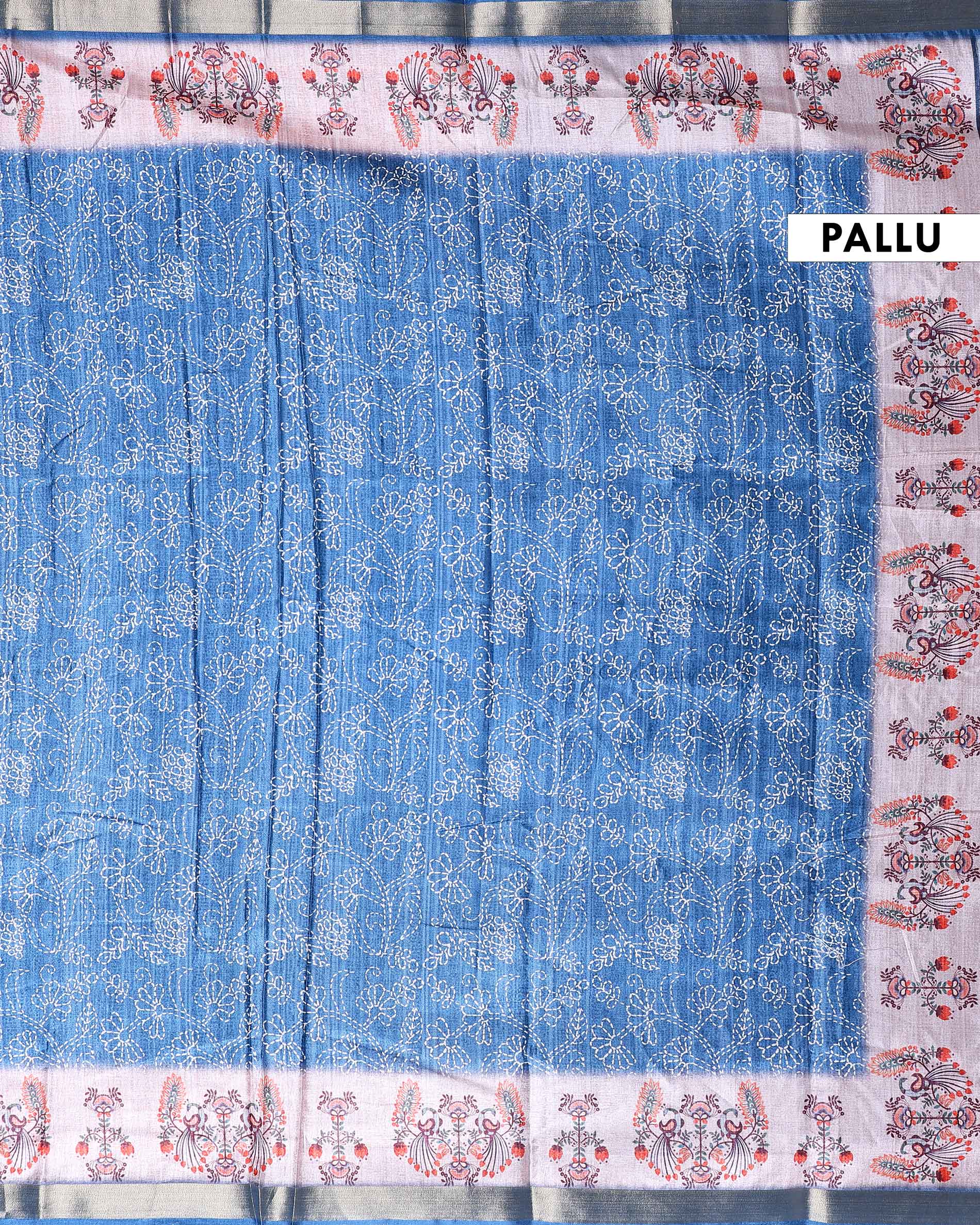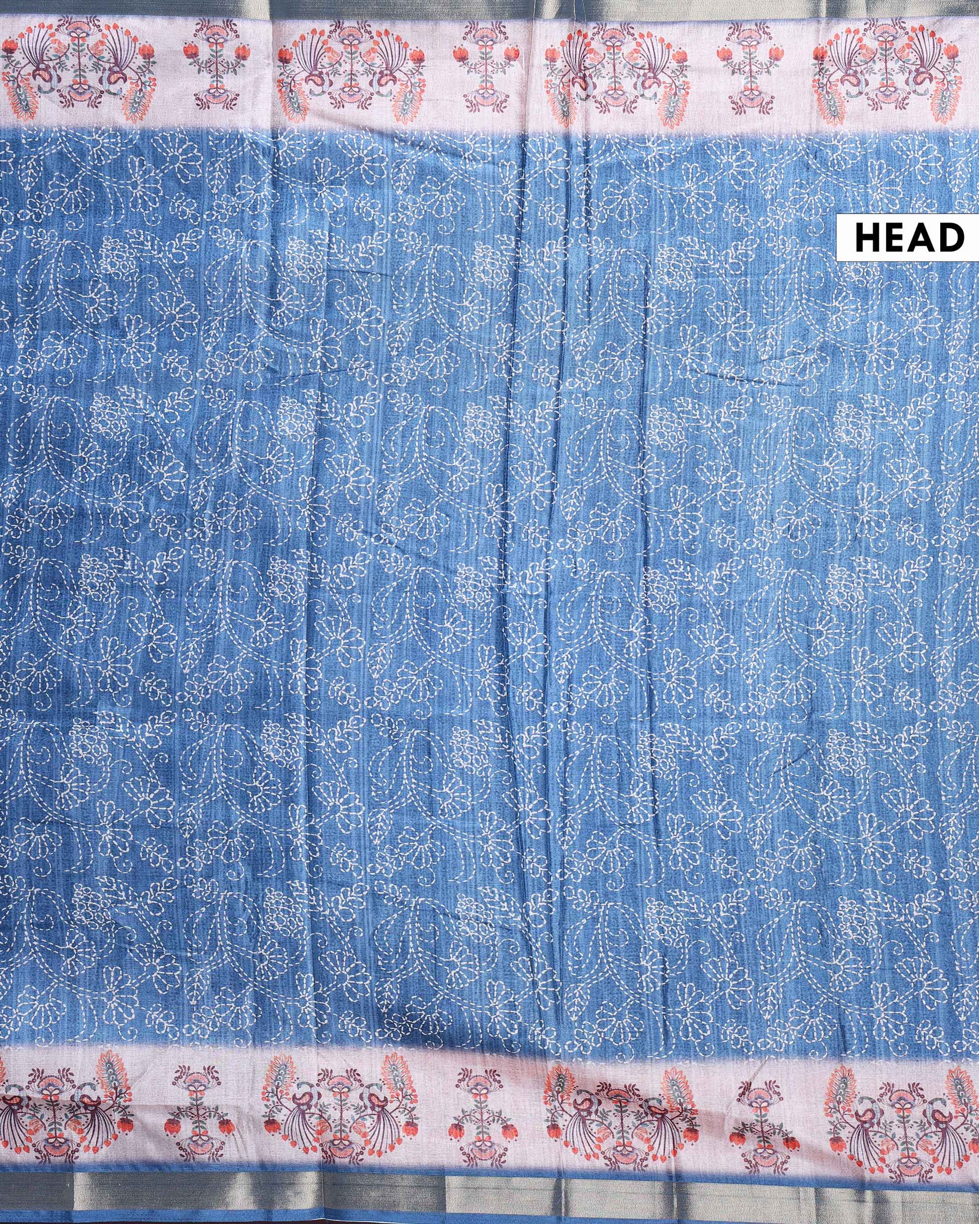 Elegant Dola Saree with Intricate Floral and Peacock Motif Border -Blue
