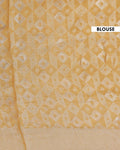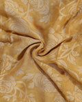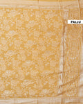 - This stunning yellow Dola silk saree features intricate floral prints, blending traditional elegance with a modern, lightweight feel for comfortable all day wear