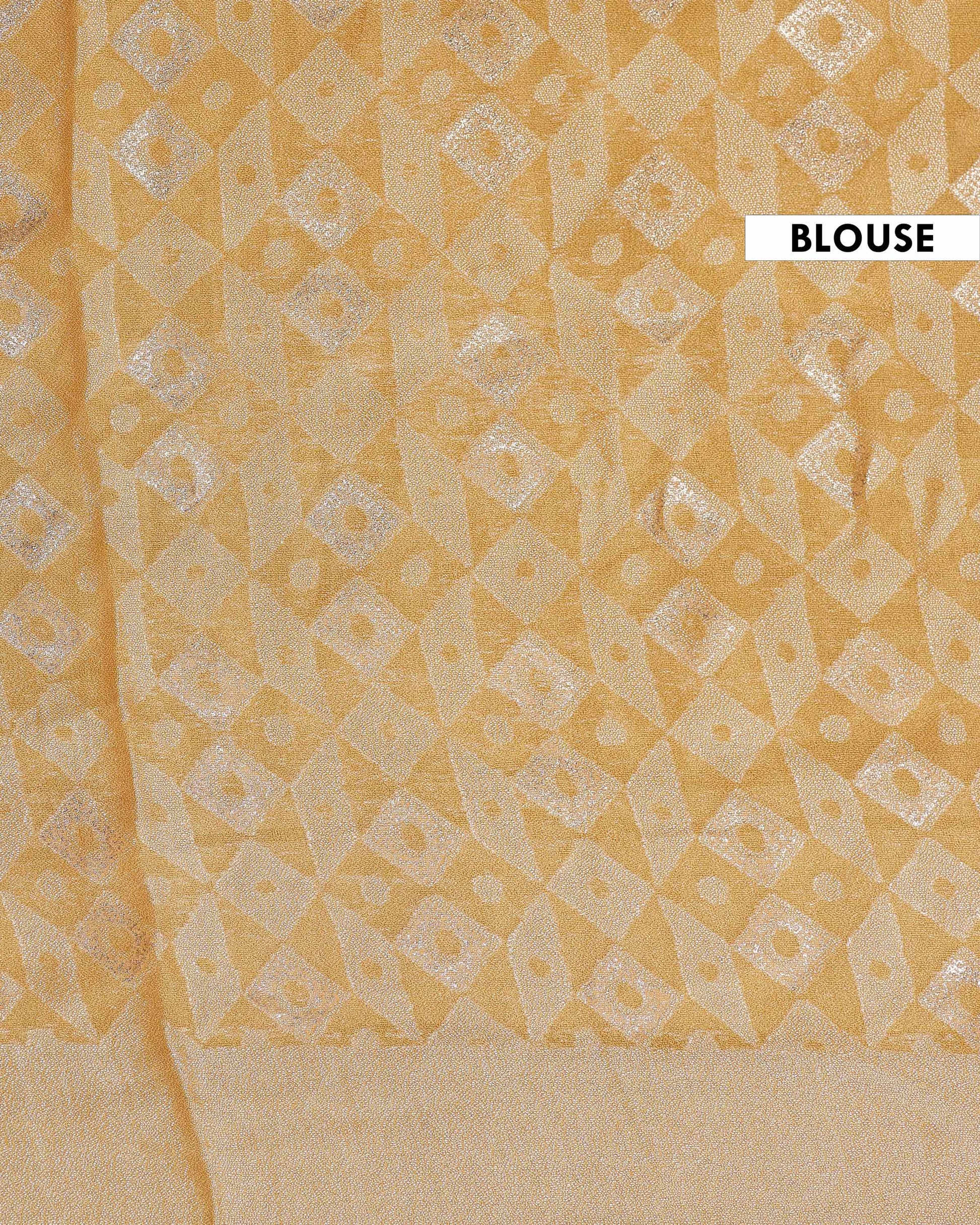 Elegant Dola Saree with Intricate Floral Motifs and Zari Border – Yellow