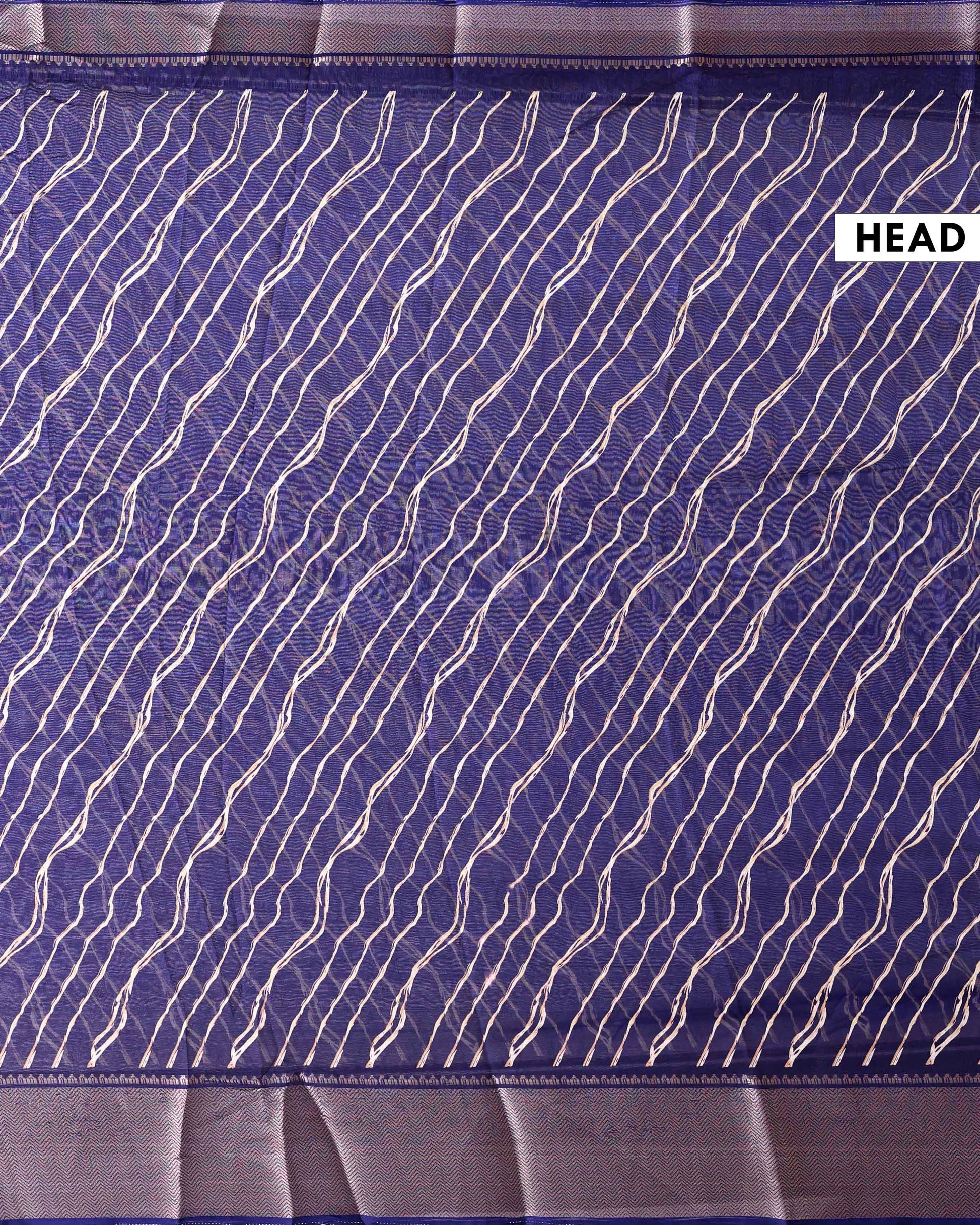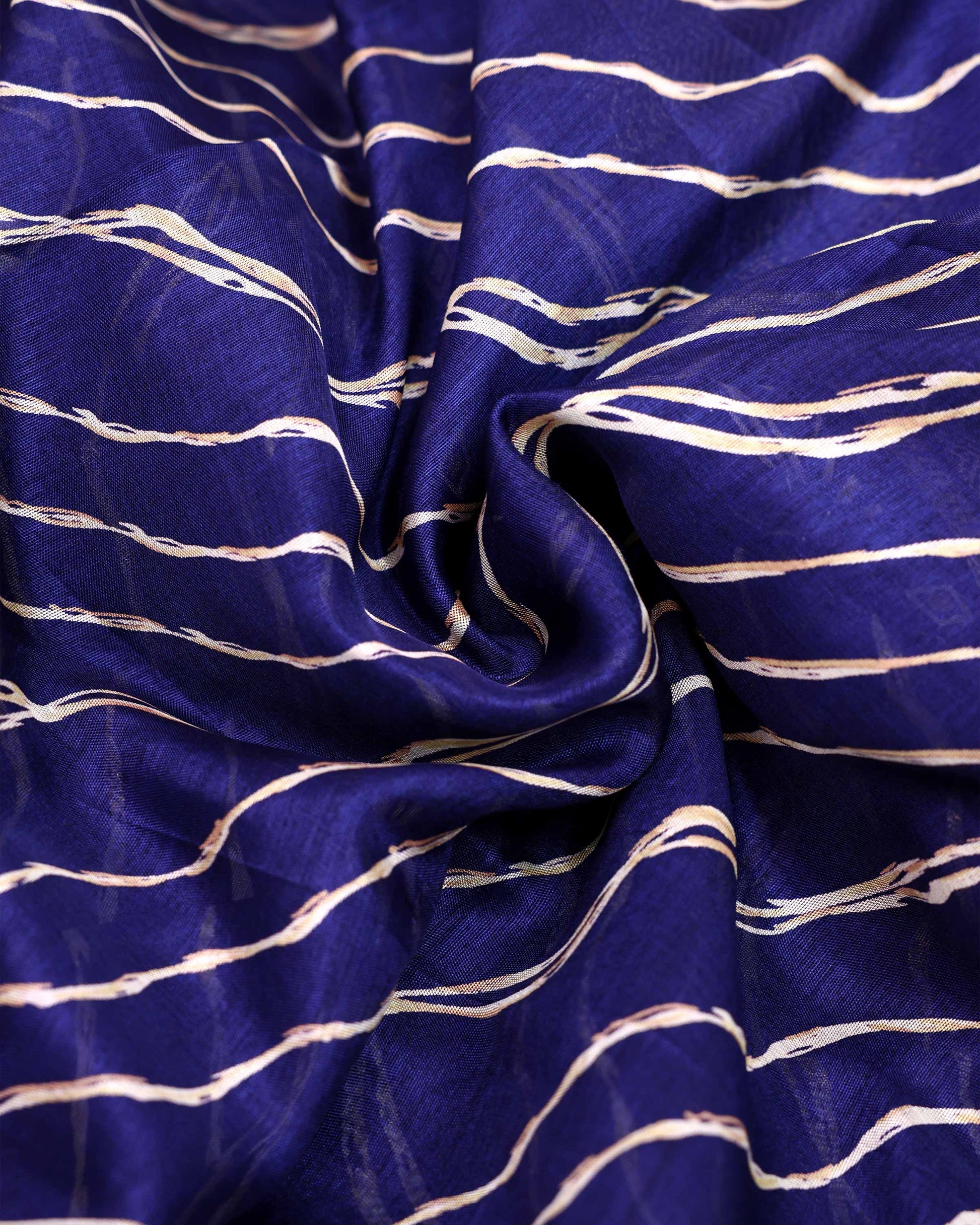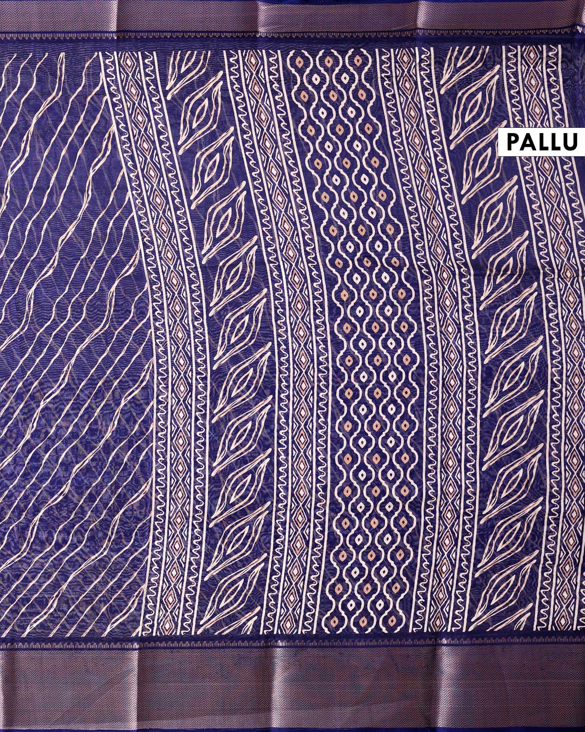 Elegant Dola Saree with Leheriya Inspired Print and Classic Zari Woven Border - Navy
