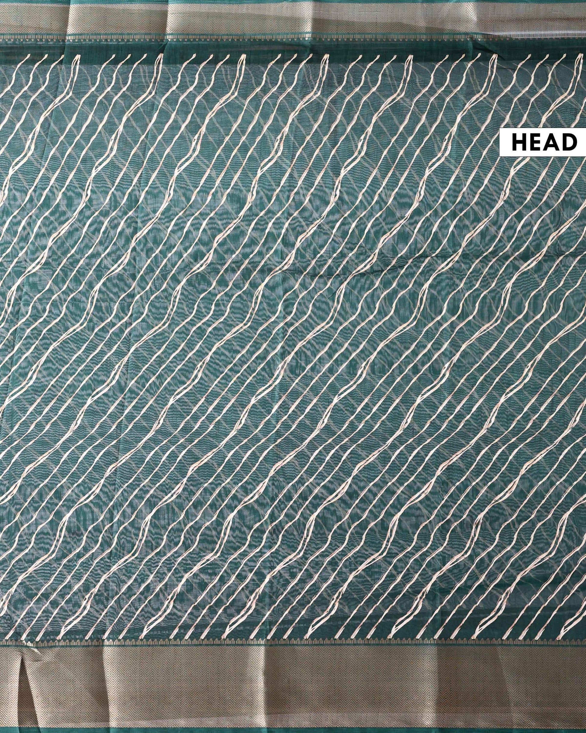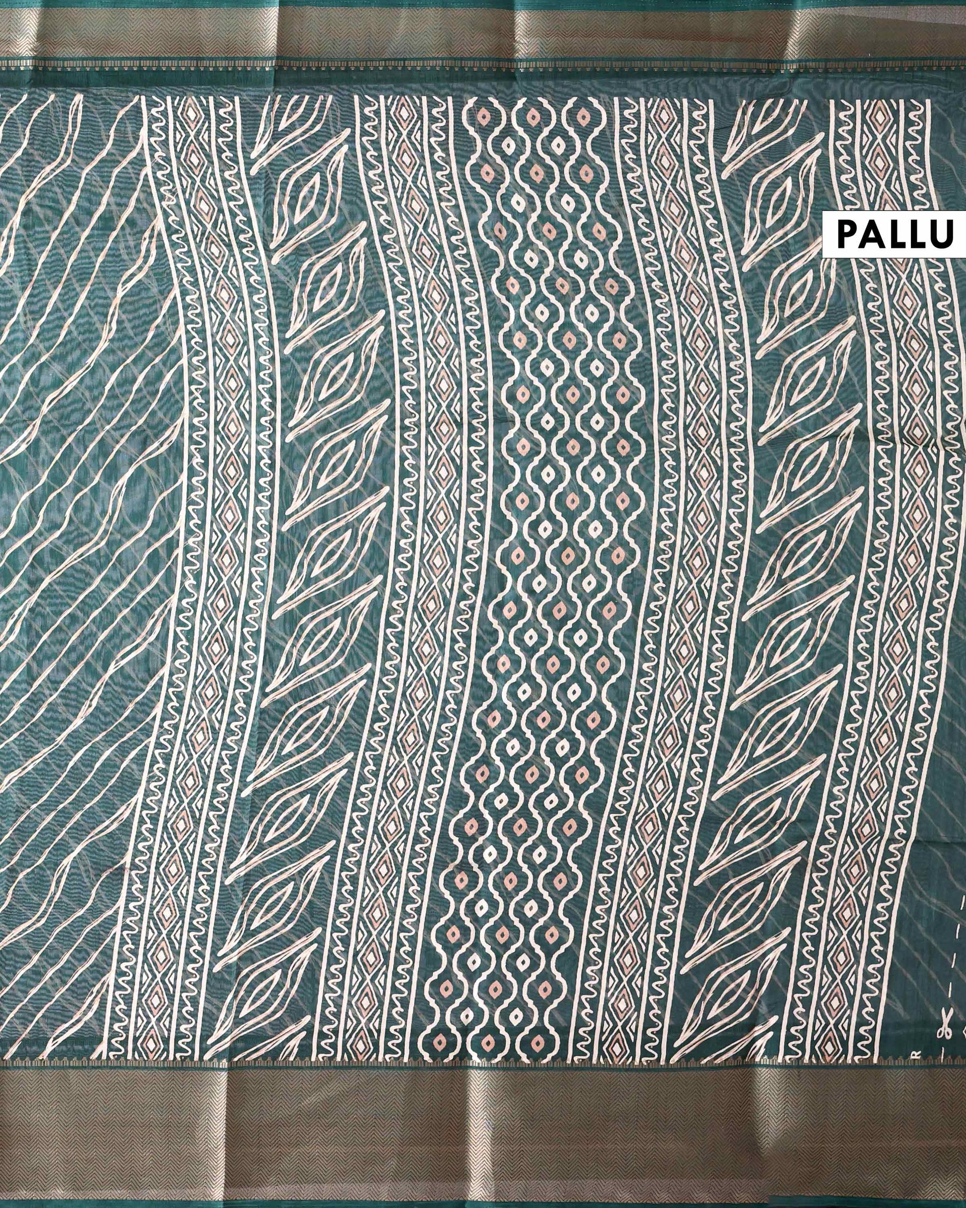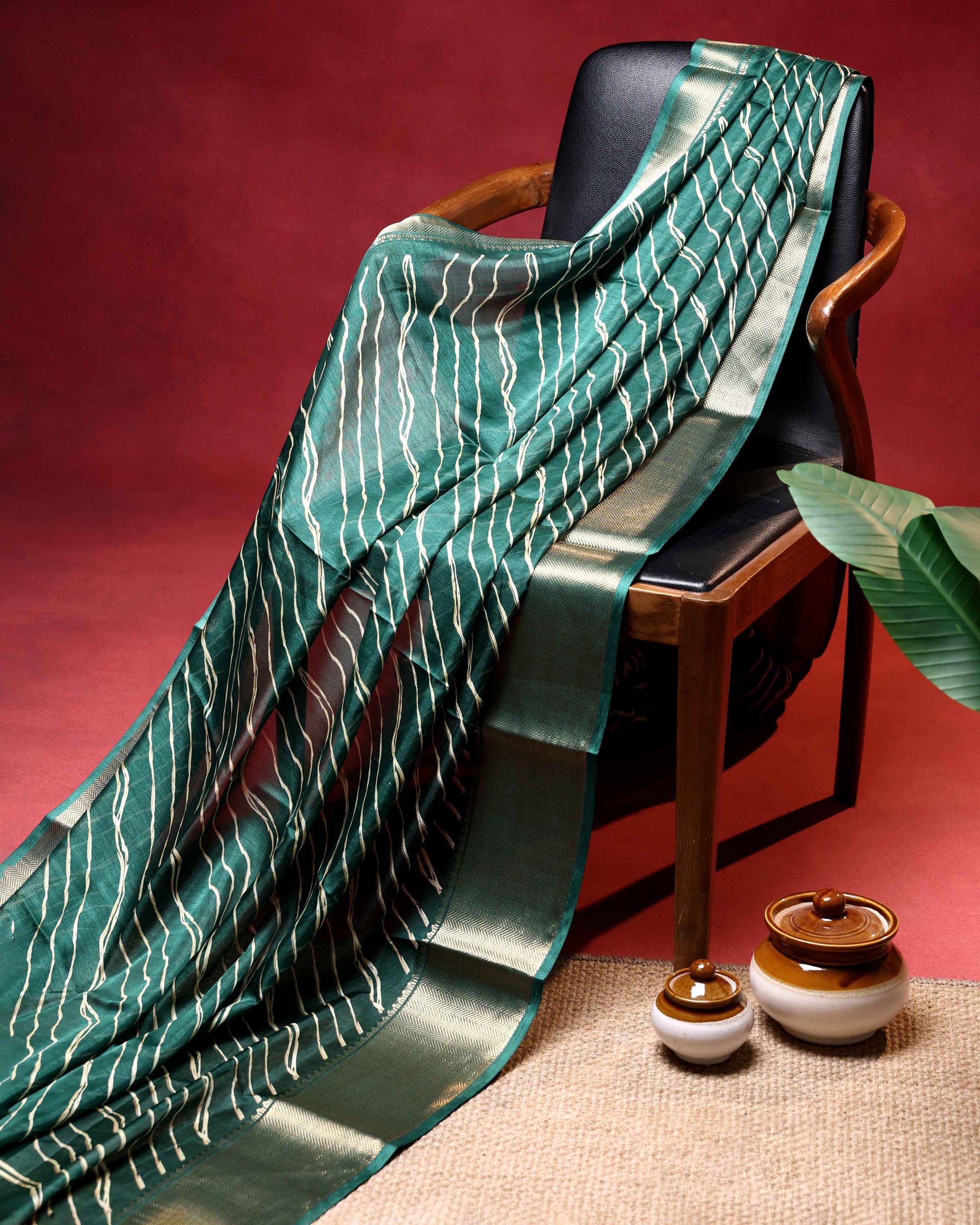 Elegant Dola Saree with Leheriya Inspired Print and Classic Zari Woven Border - Bottle Green