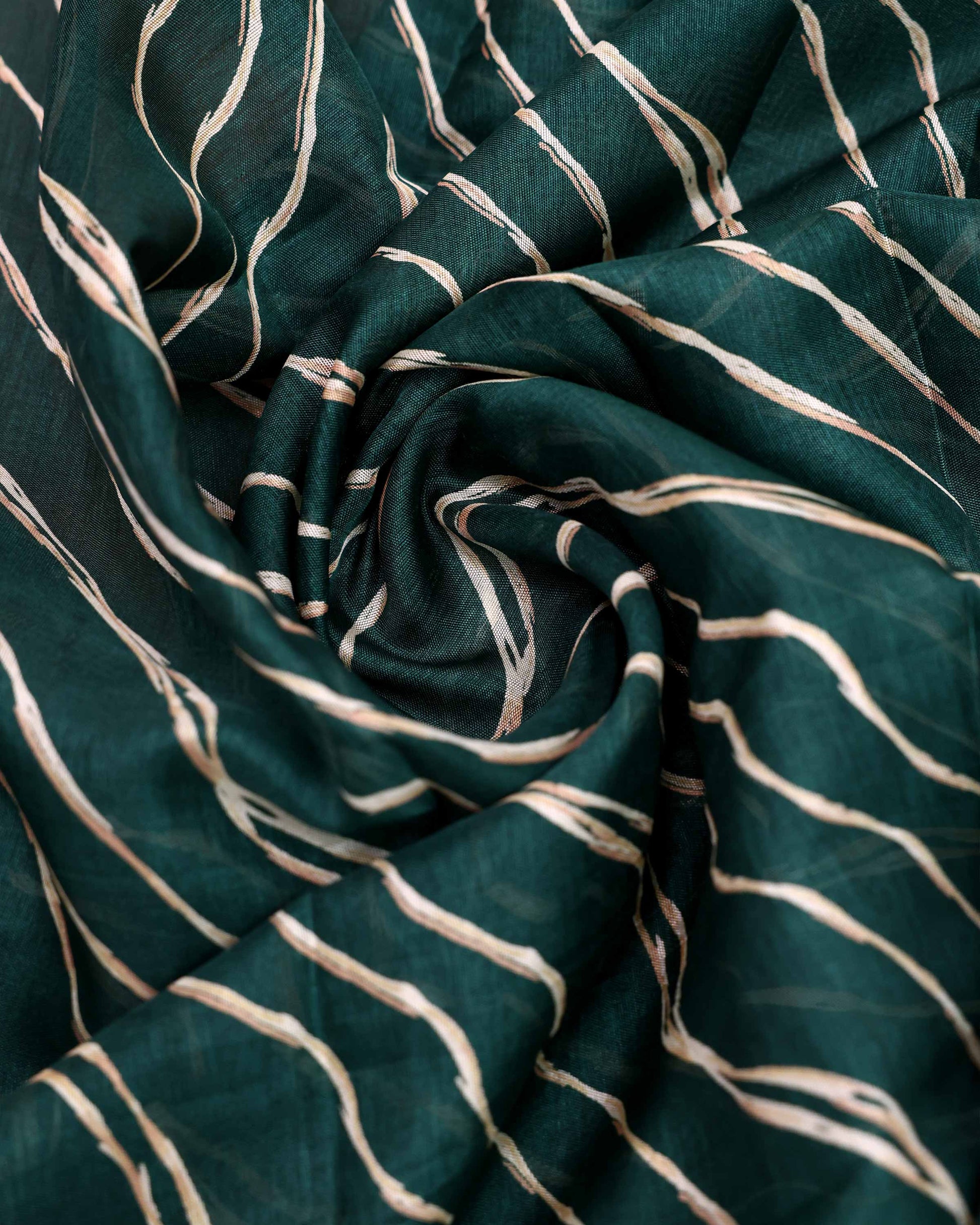 - This Elegant Bottle Green Dola saree with leheriya inspired print offers a perfect blend of traditional charm and modern comfort