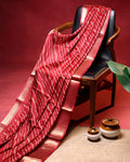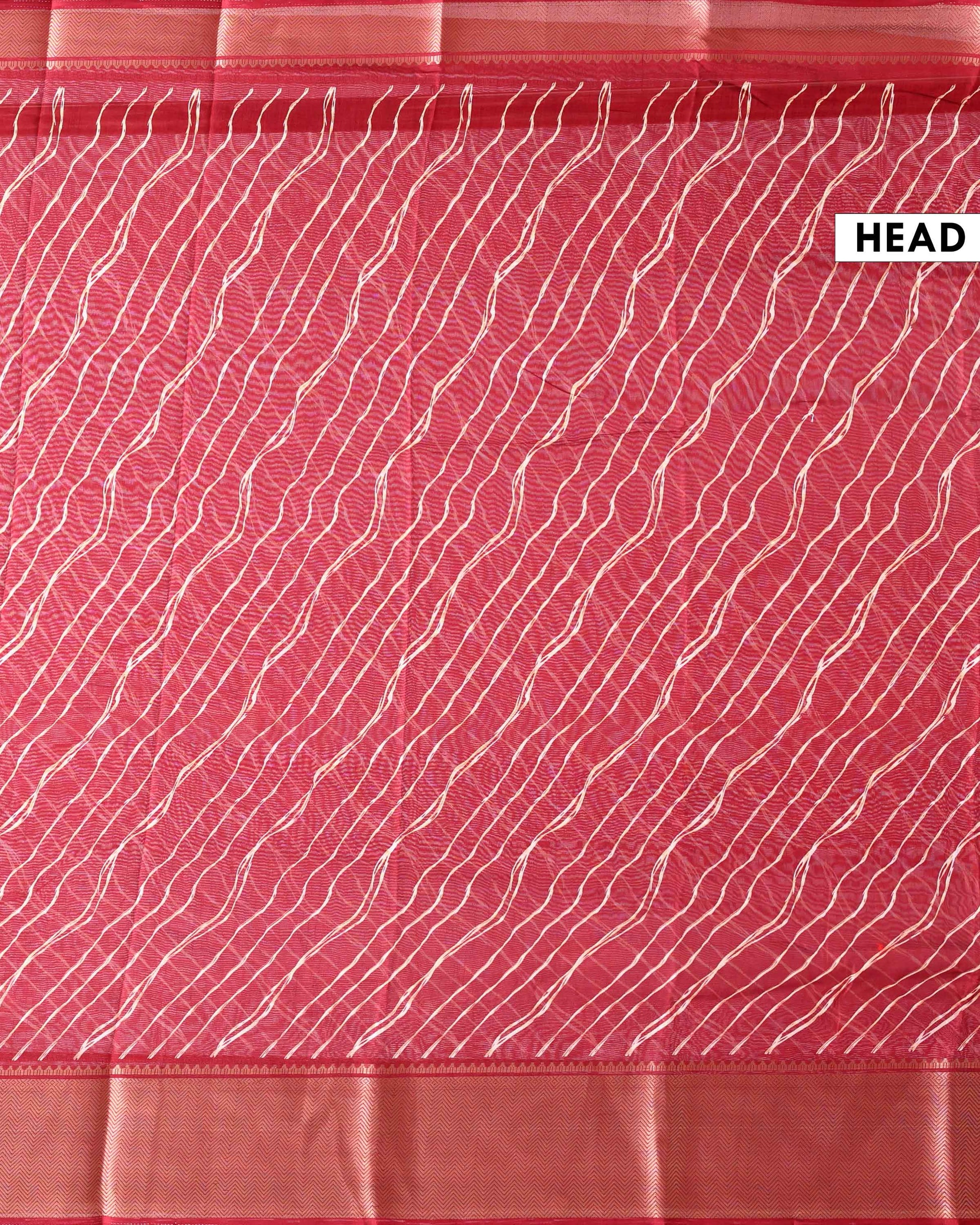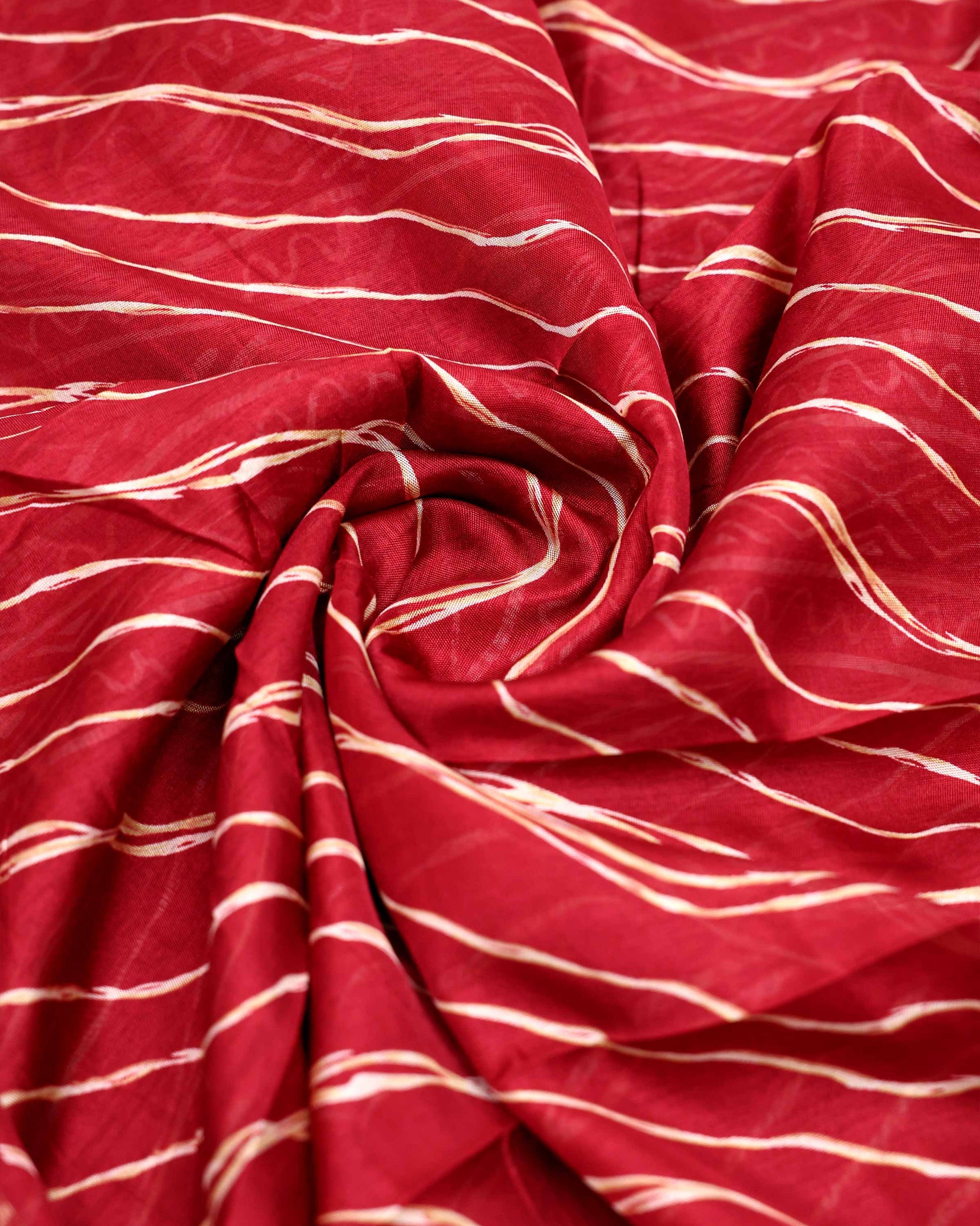 - This Elegant Red Dola saree with leheriya inspired print offers a perfect blend of traditional charm and modern comfort