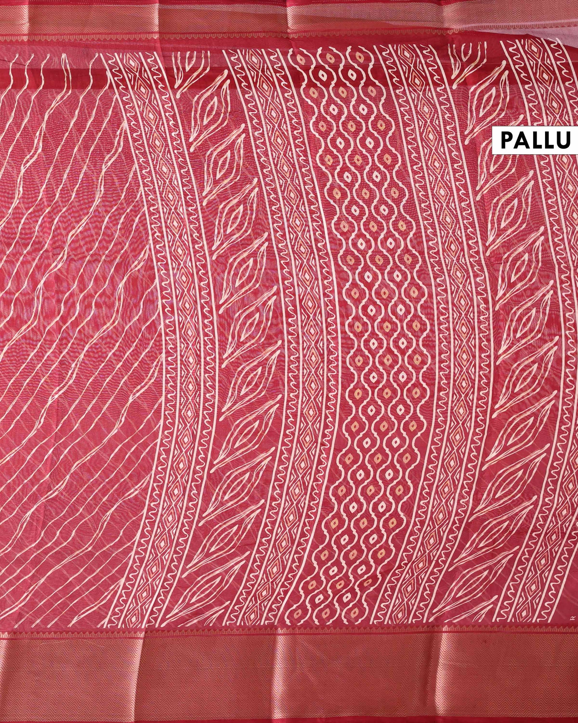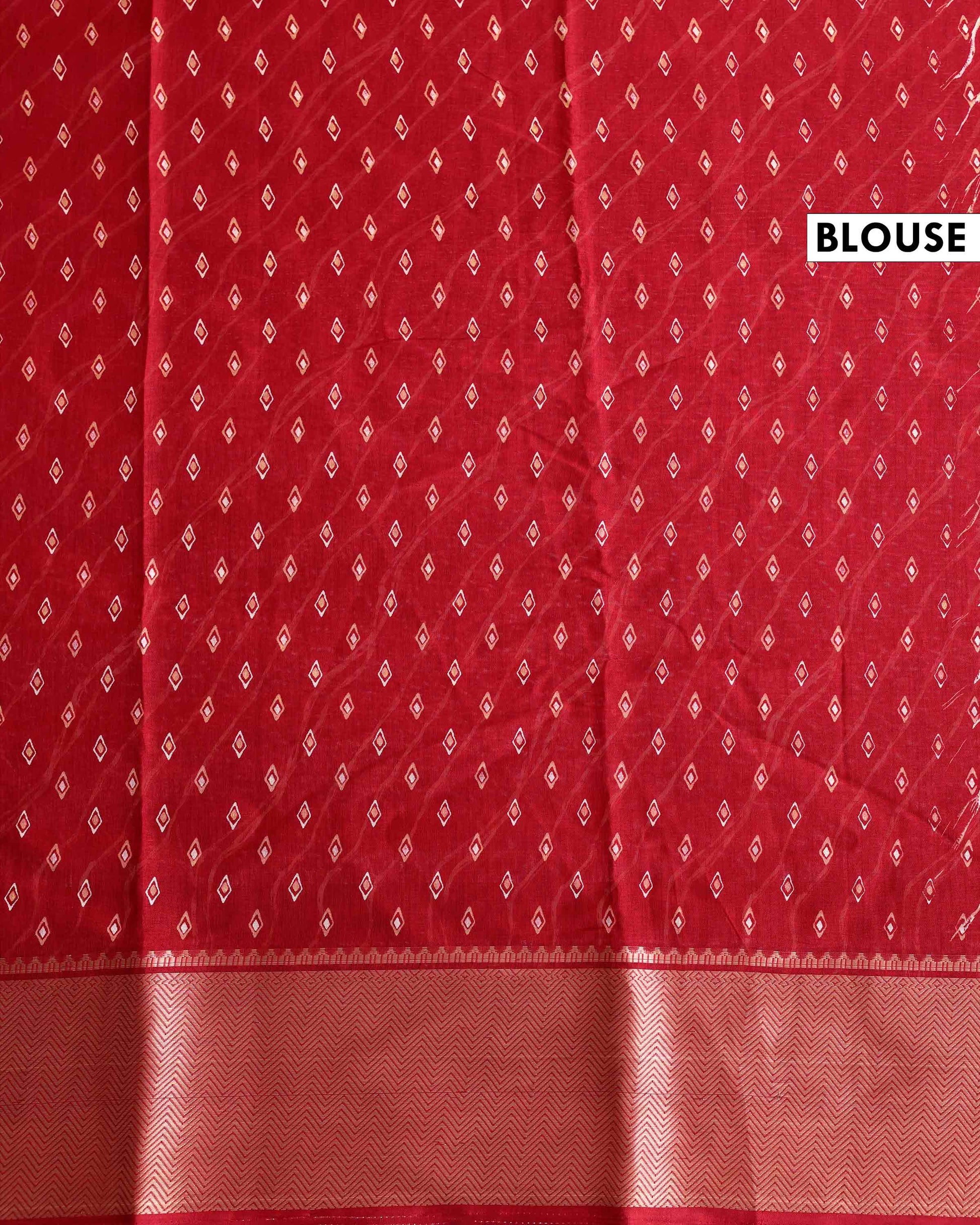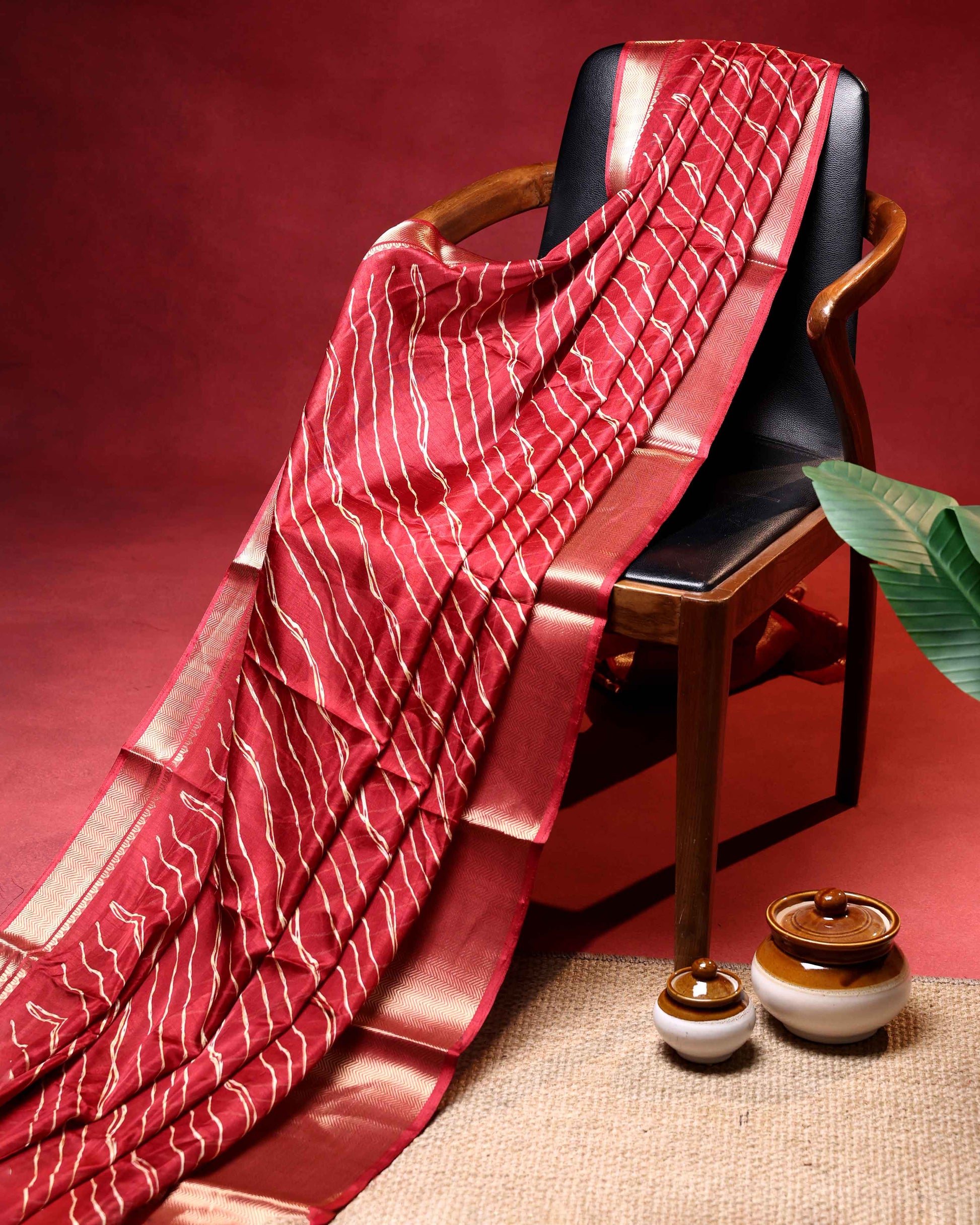 Elegant Dola Saree with Leheriya Inspired Print and Classic Zari Woven Border - Red