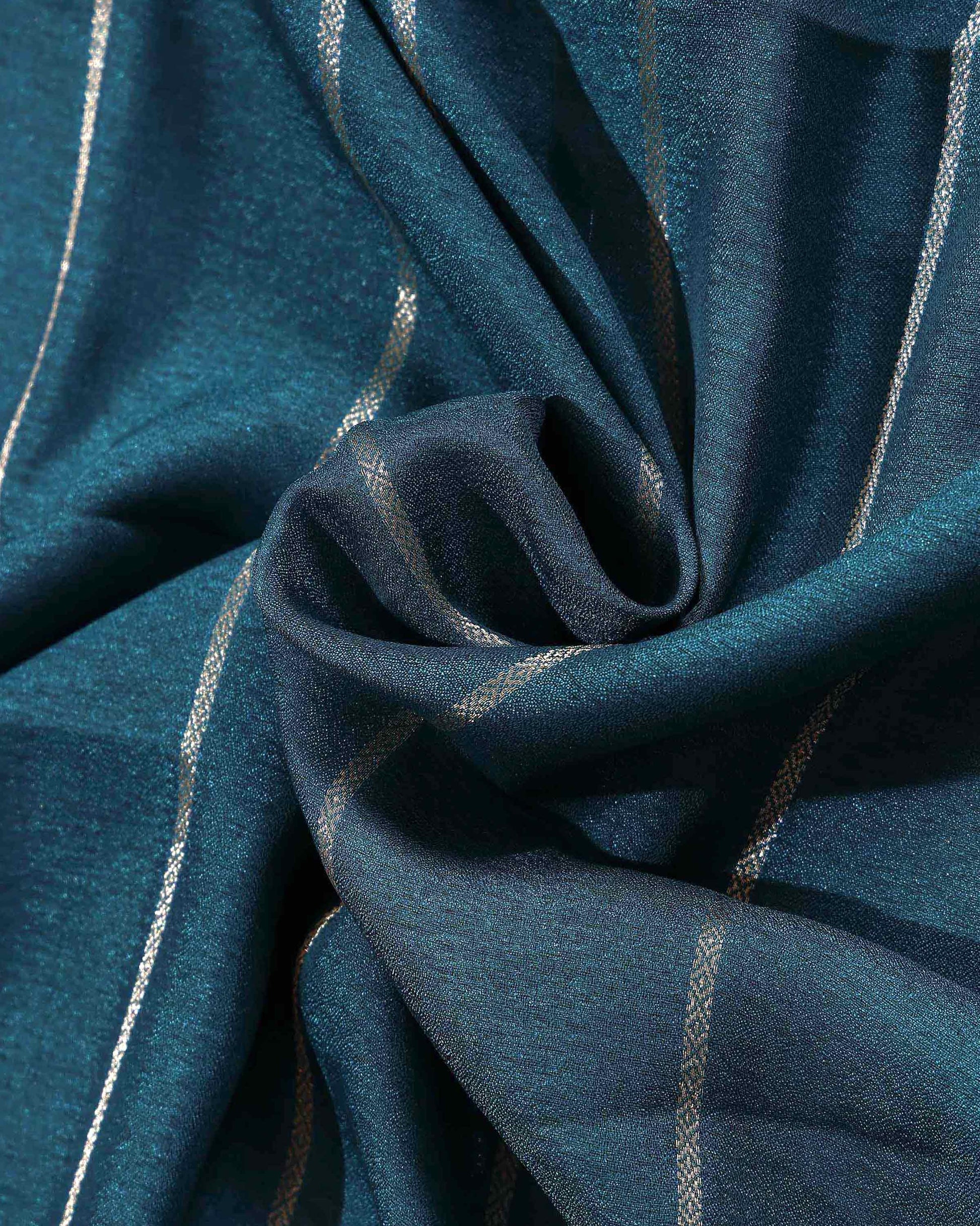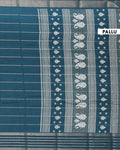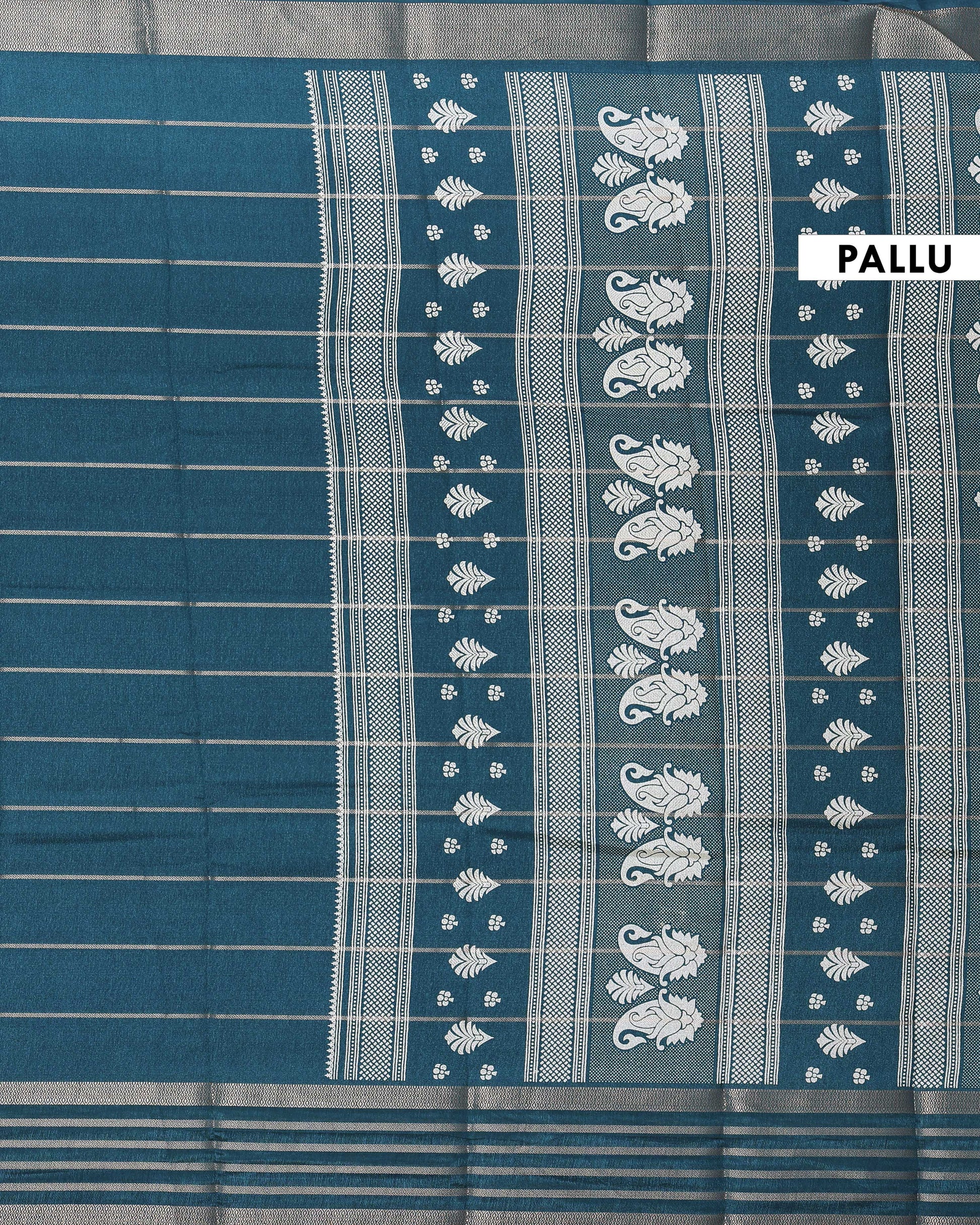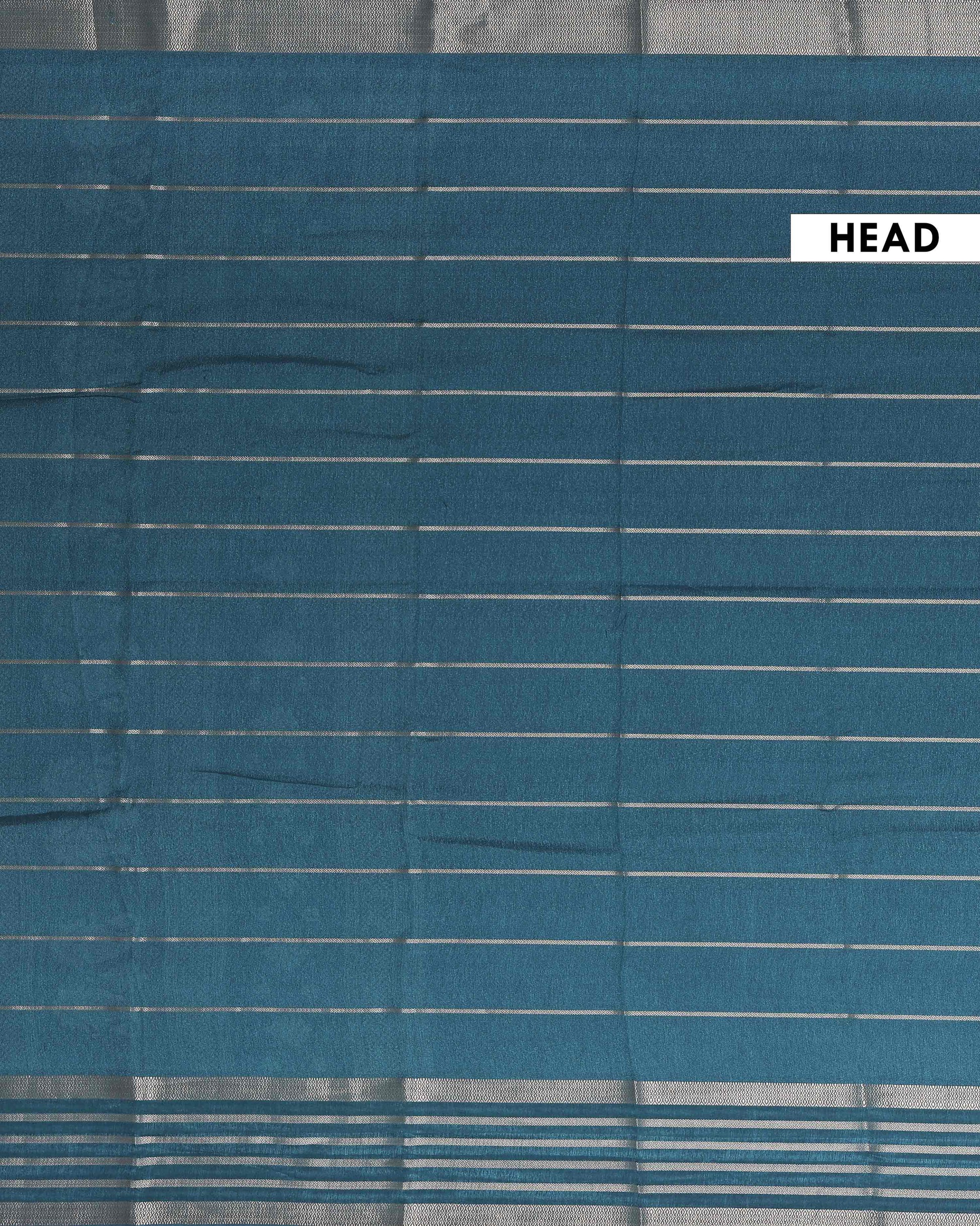 - Elevate your ethnic wardrobe with this stunning Teal Dola Saree featuring all over zari woven stripes and a rich border.