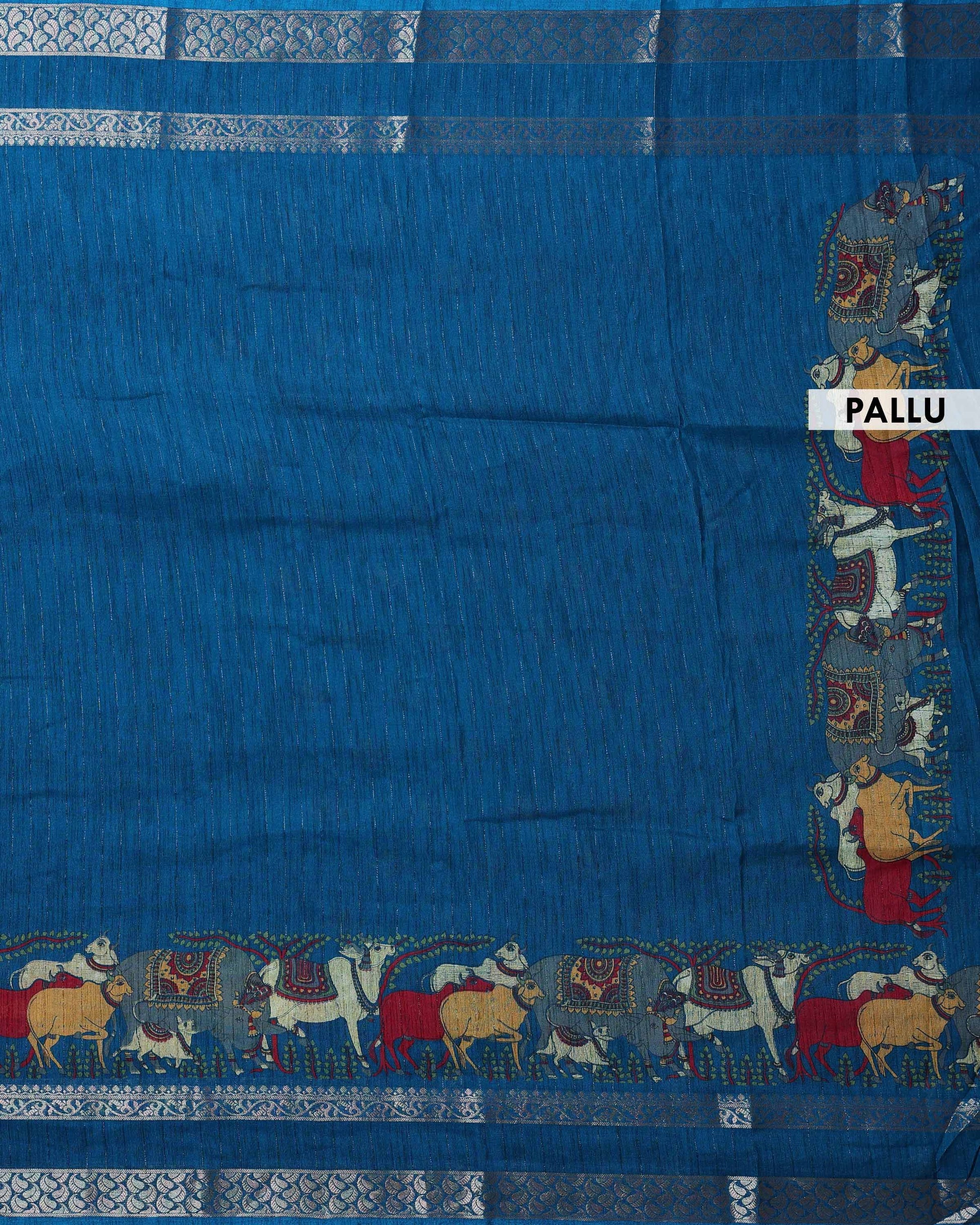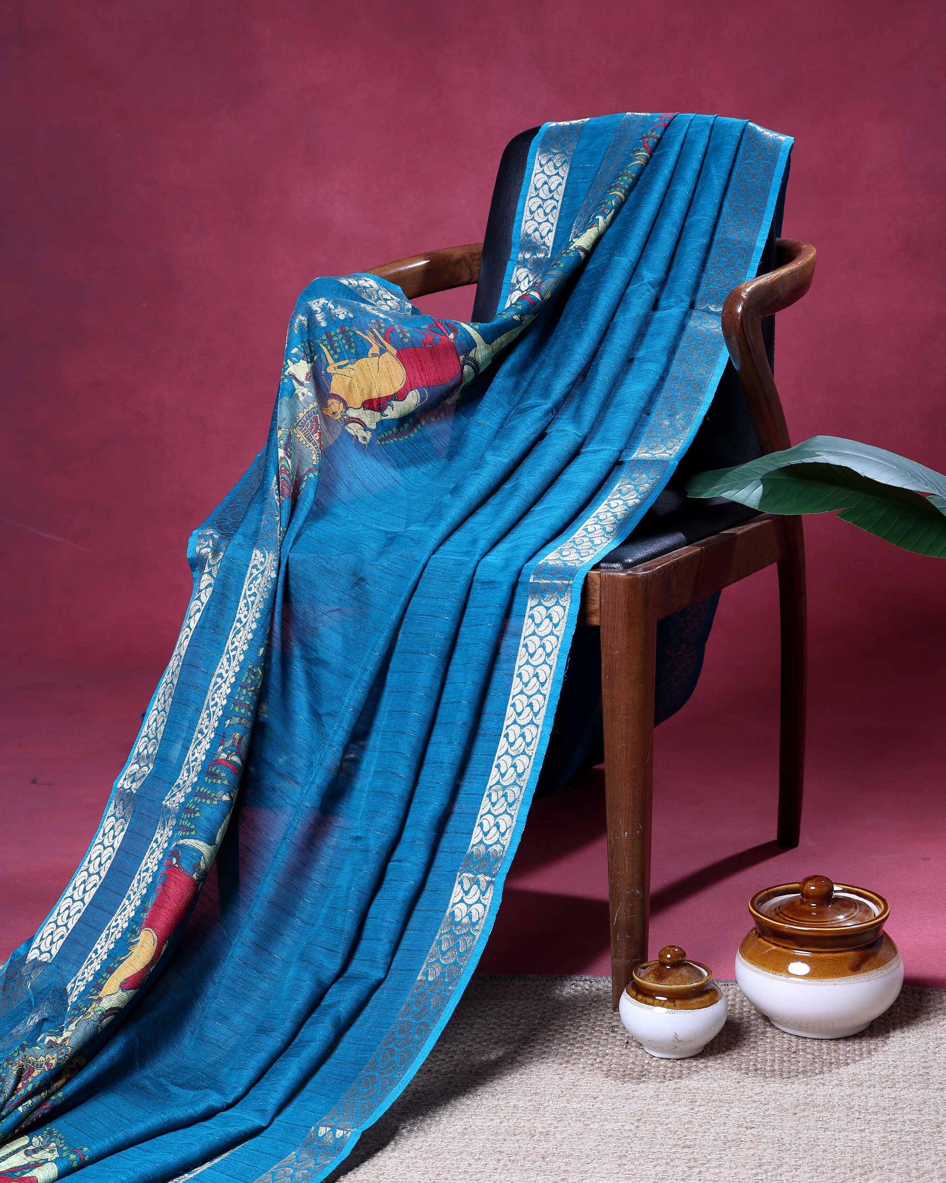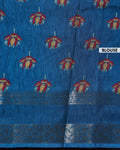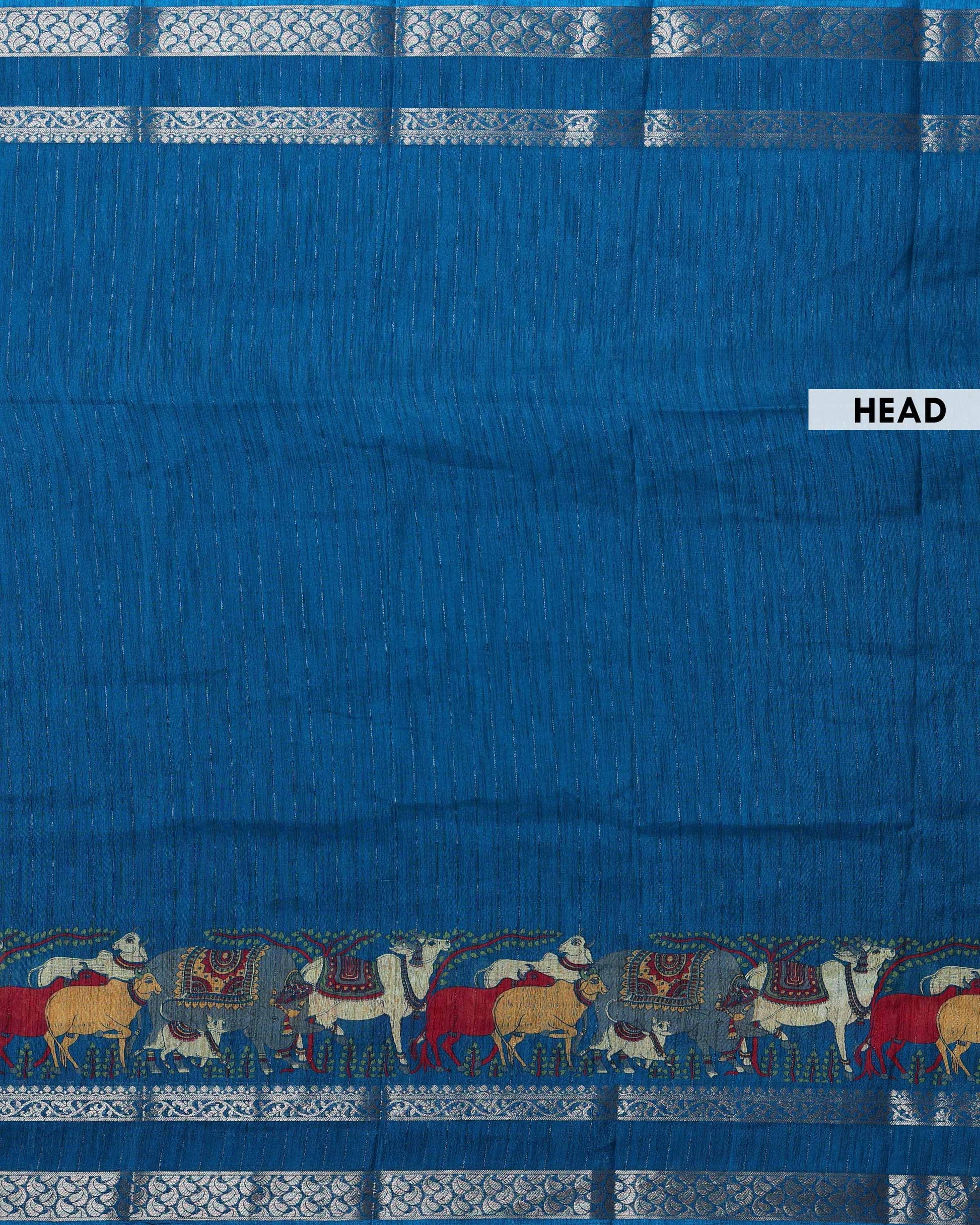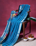Elegant Dola Saree with Traditional Animal Motifs And A Silver Zari Border - Blue