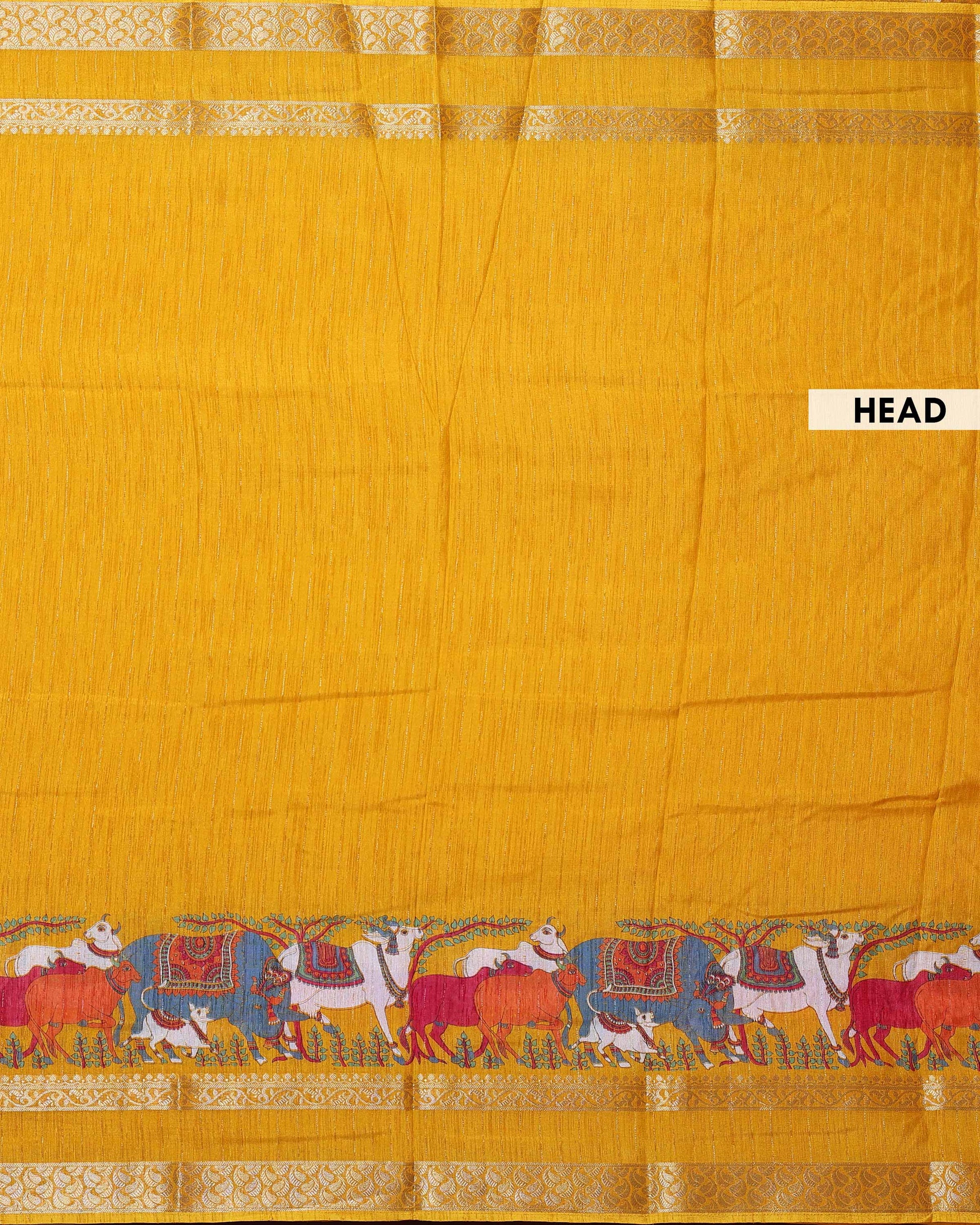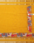 Elegant Dola Saree with Traditional Animal Motifs And A Silver Zari Border - Yellow