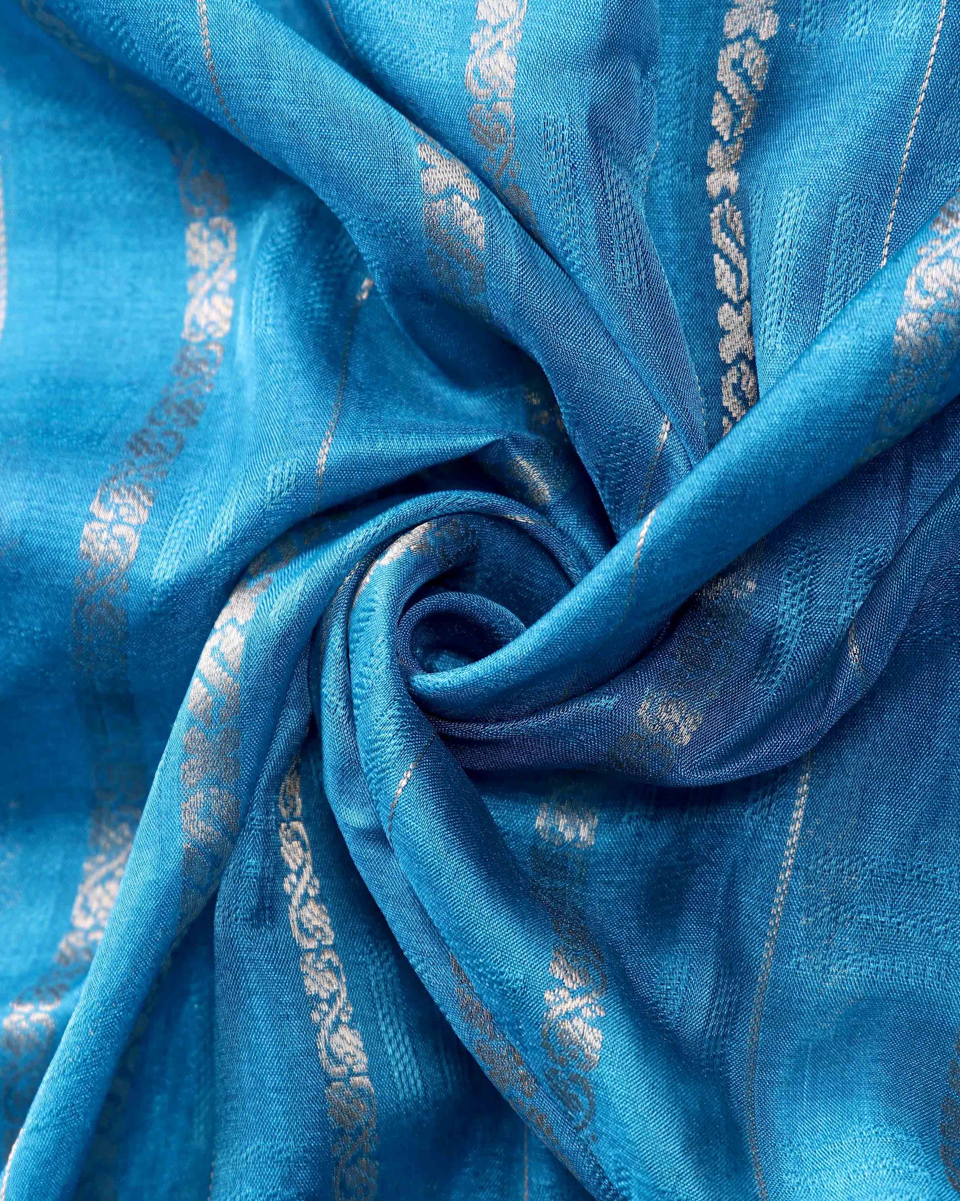 Elegant Dola Saree with Vertical Striped Body Design and Classic Contrast Woven Border - Blue