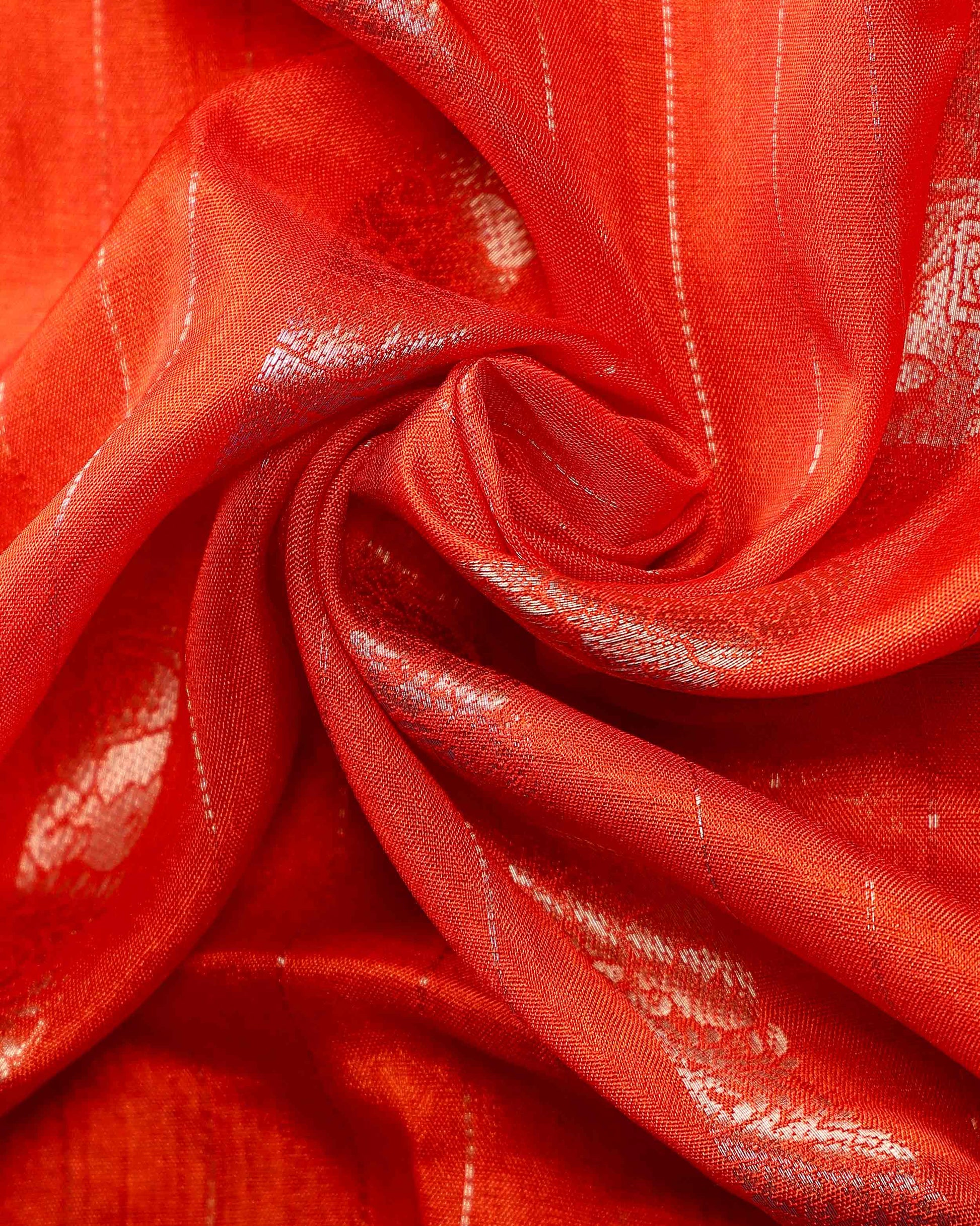 Elegant Dola Saree with Vertical Striped Body Design and Classic Contrast Woven Border - Orange