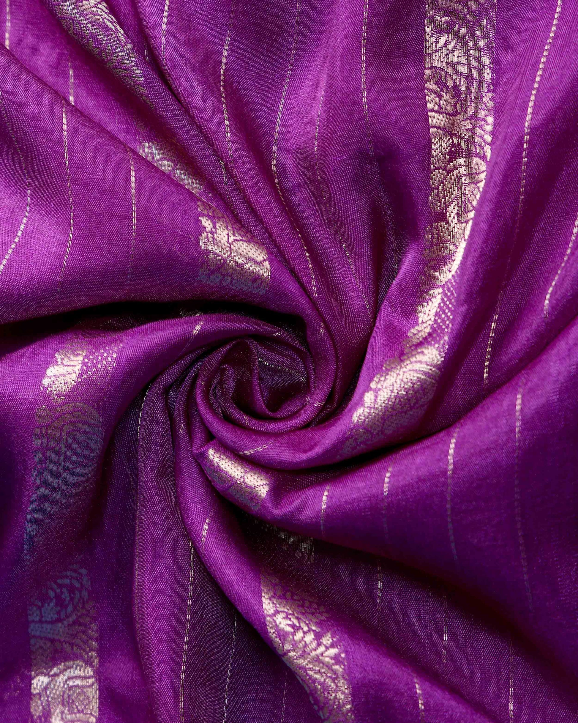Elegant Dola Saree with Vertical Striped Body Design and Classic Contrast Woven Border - Purple