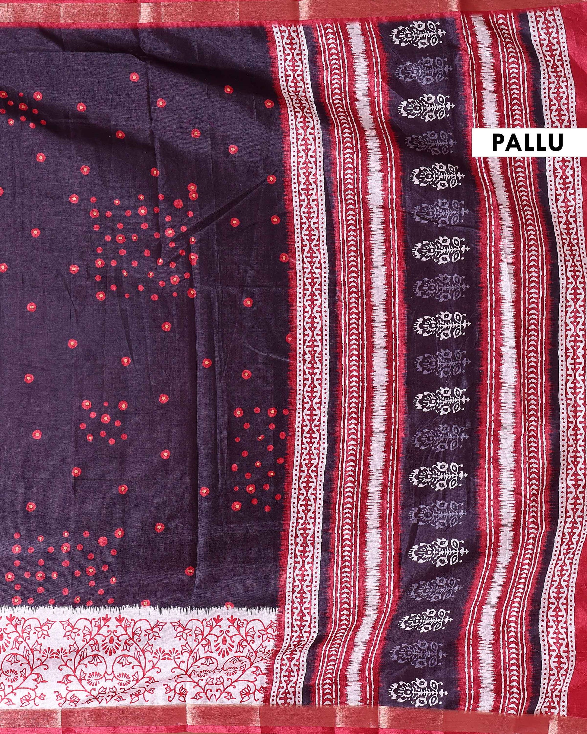 - This elegant Dola saree a subtle polka dot pattern across the body
