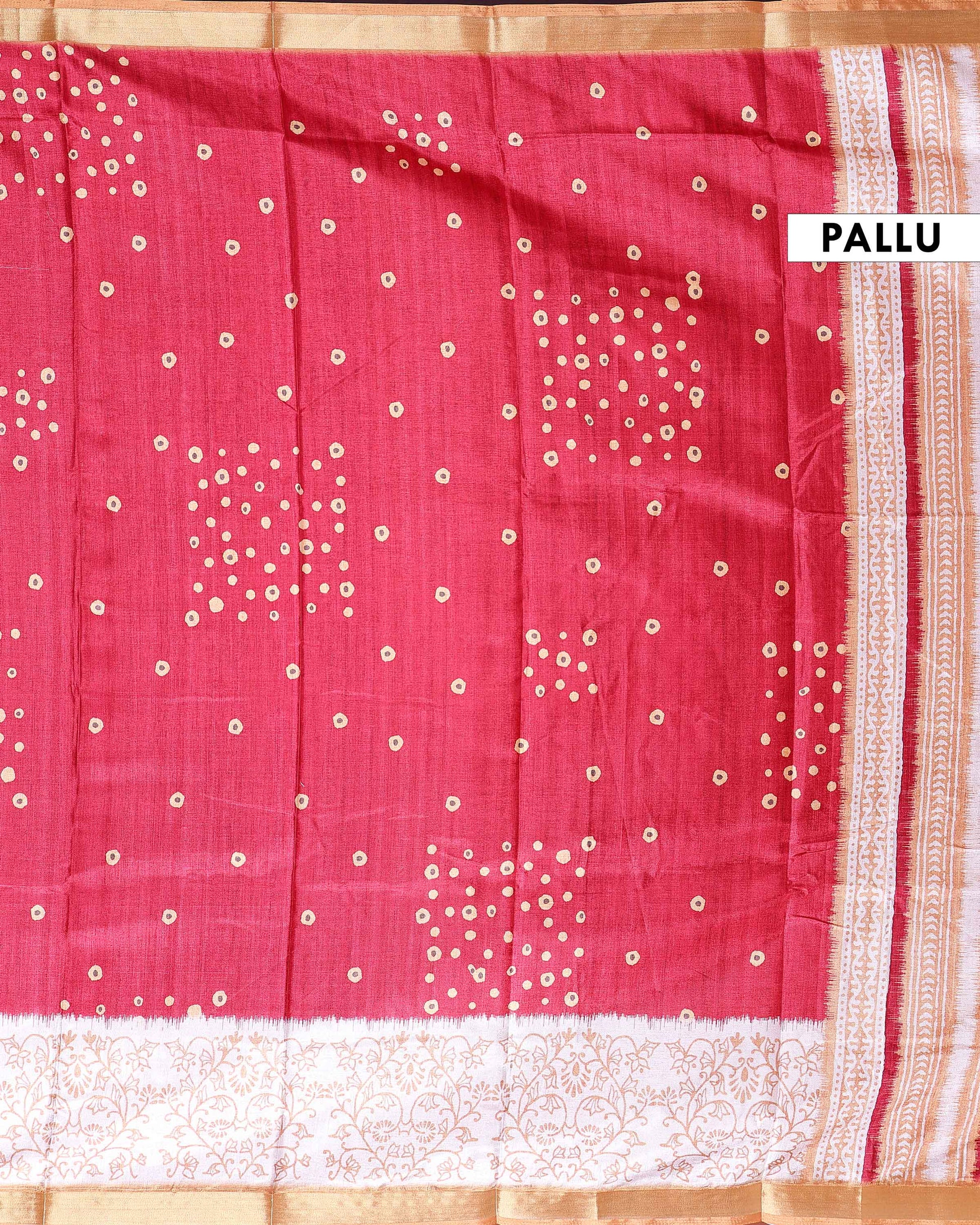 Elegant Dola Saree with Woven Polka Dot Motifs and Detailed Floral - Red