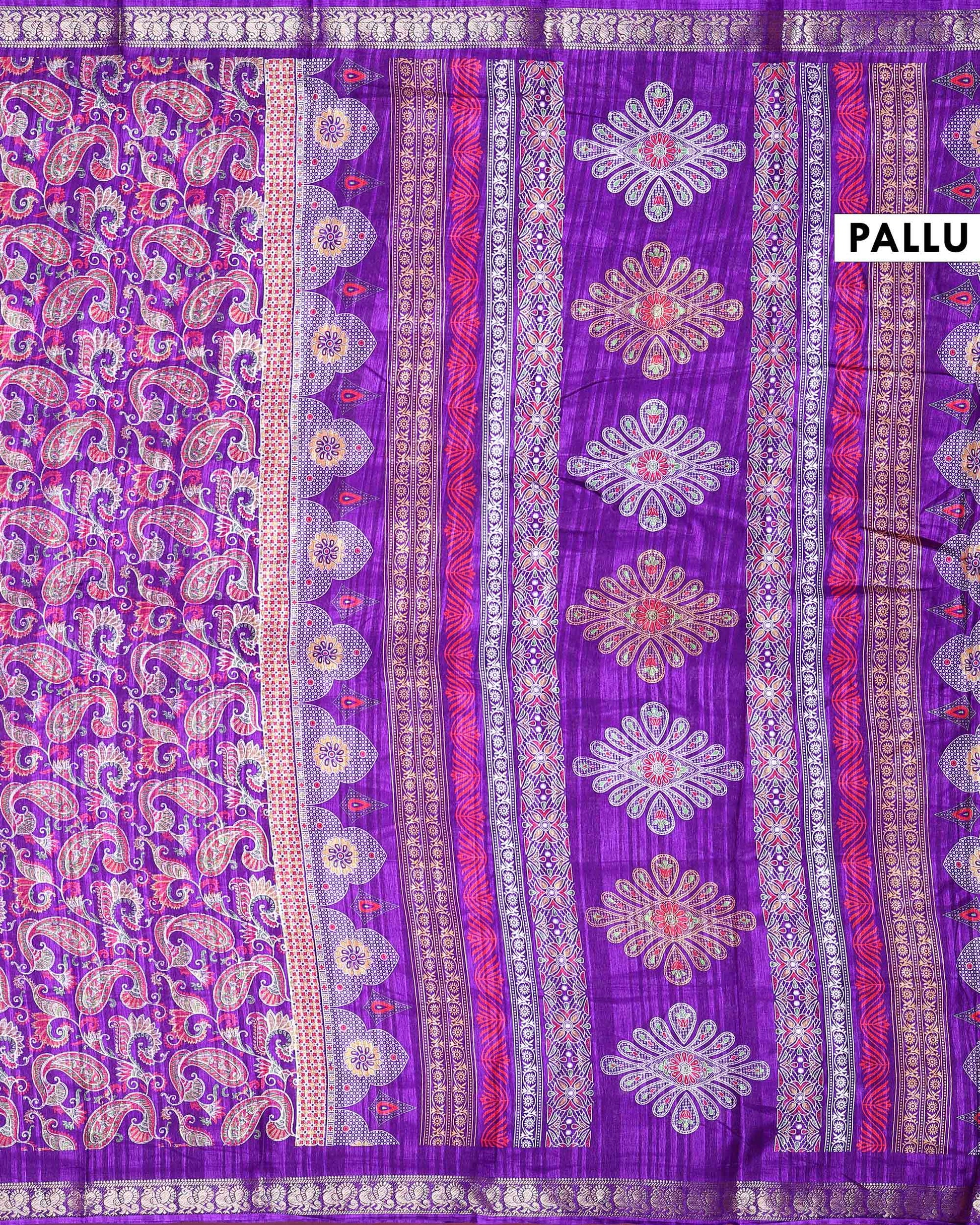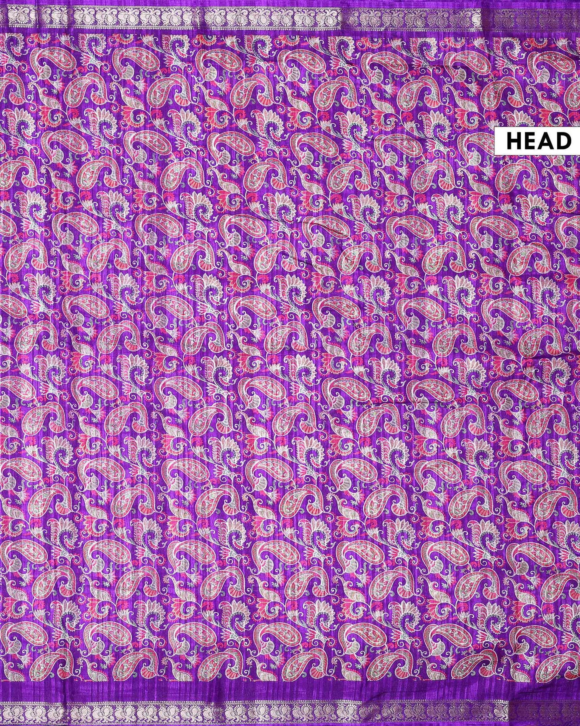 Elegant Dola Silk Saree with All-Over Traditional Paisley Buti Motifs and Intricate Zari Woven Floral Border - Purple