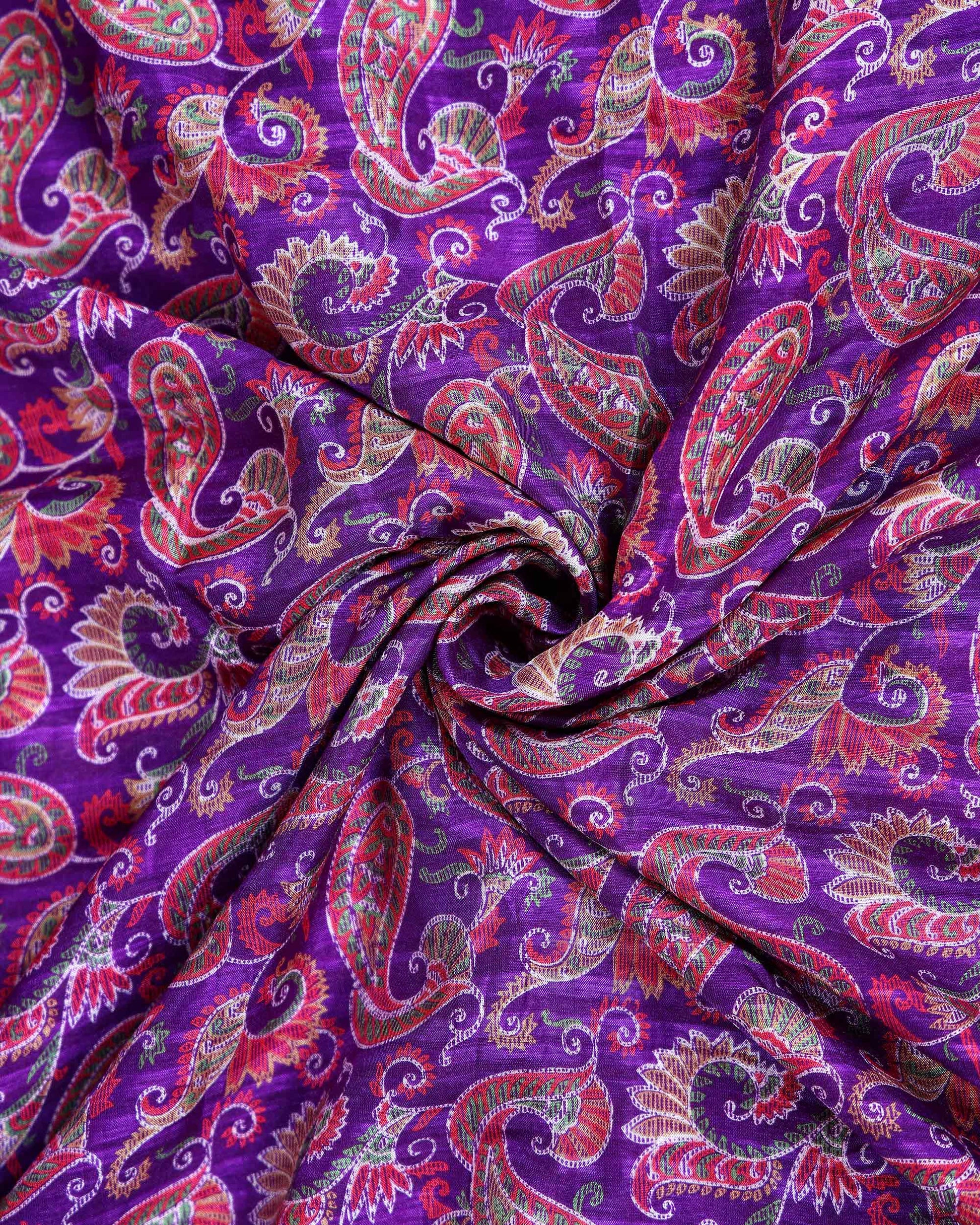 - This elegant Dola silk saree all over traditional paisley buti motifs complemented by an intricate zari woven floral border, showcasing timeless craftsmanship and rich ethnic appeal.