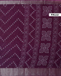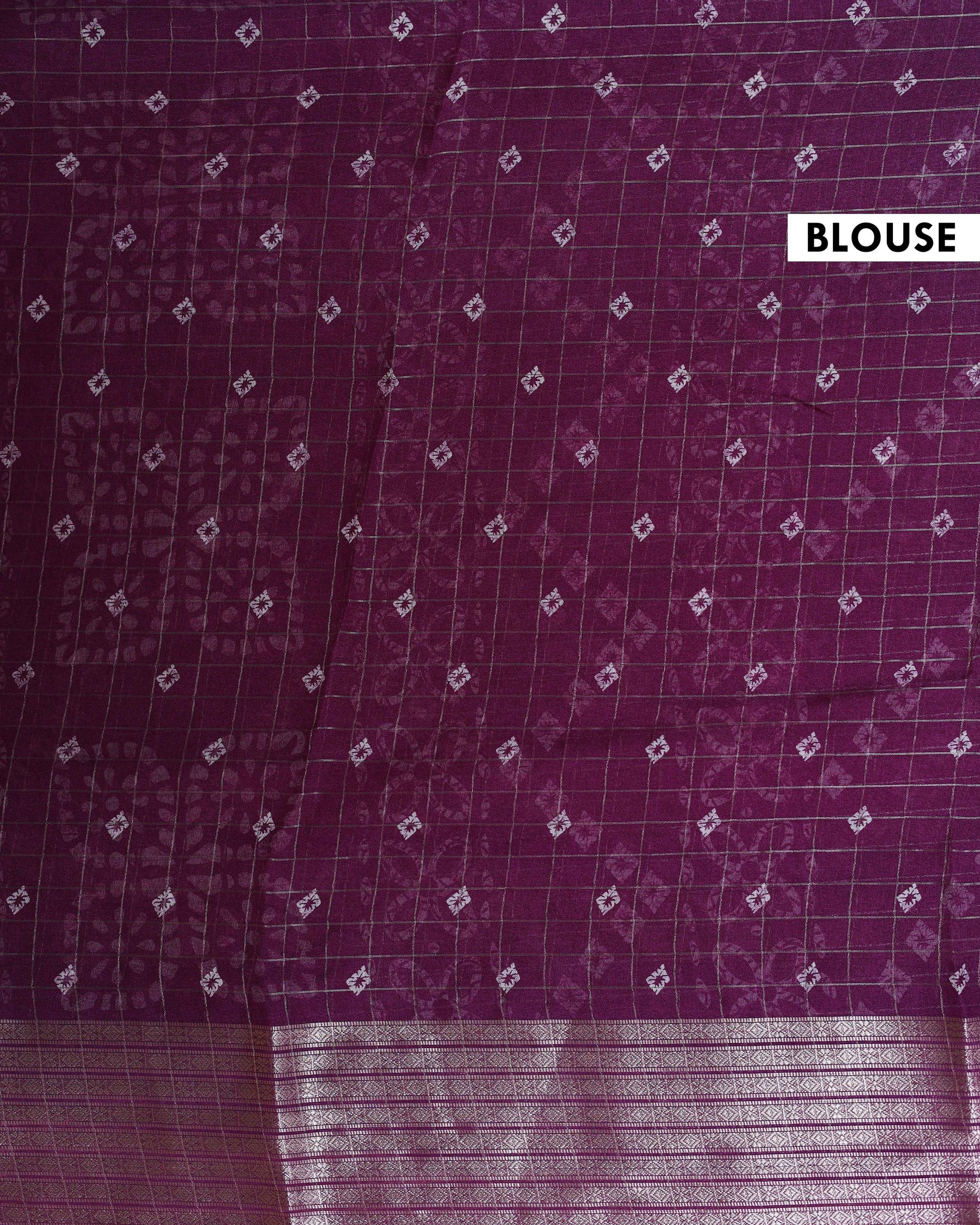 - Elevate your style with this exquisite Dola silk saree a rich purple hue and intricate Bandhani print.