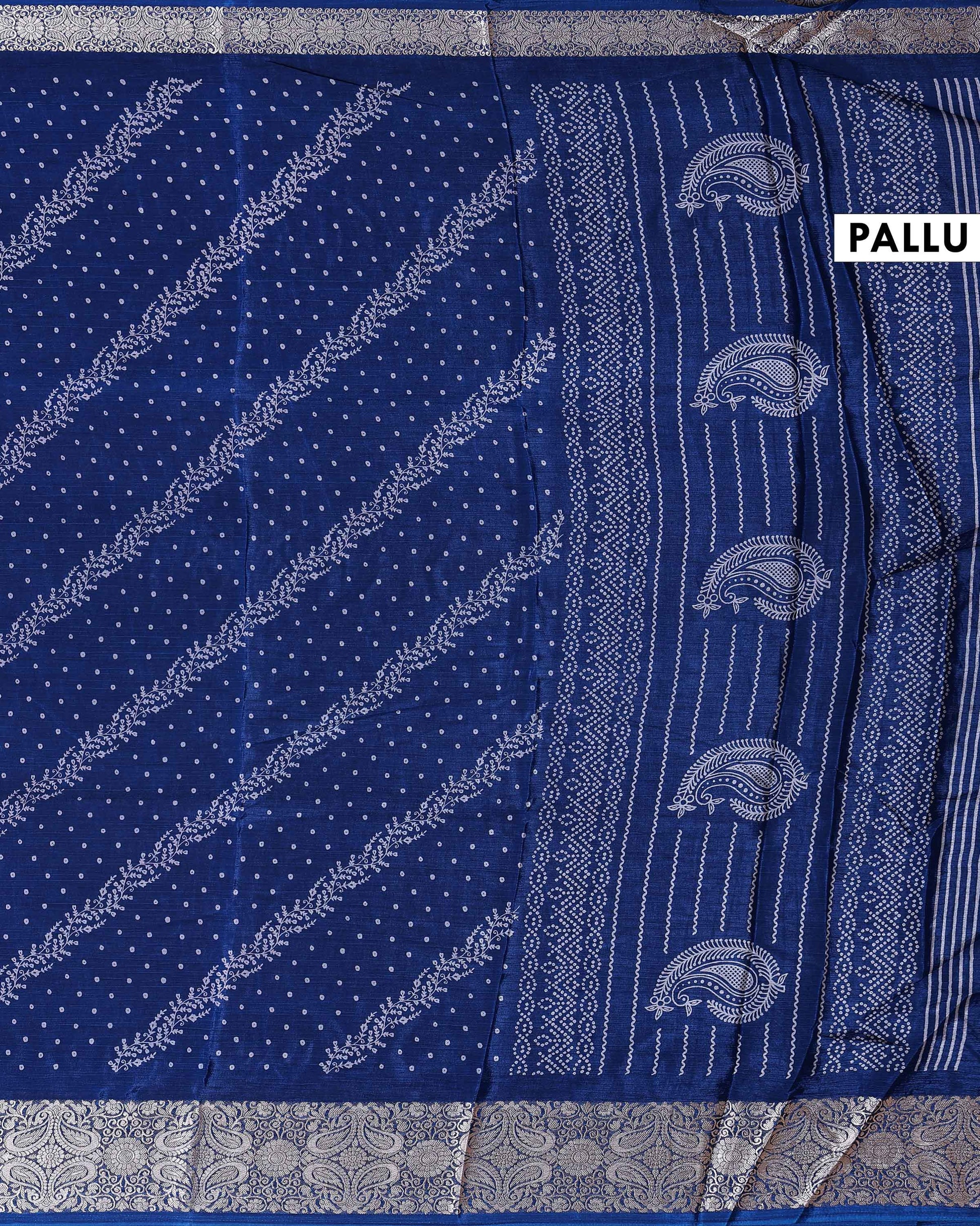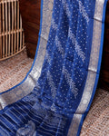 - This Elegant Navy Blue saree offers a perfect blend of traditional charm and modern comfort
