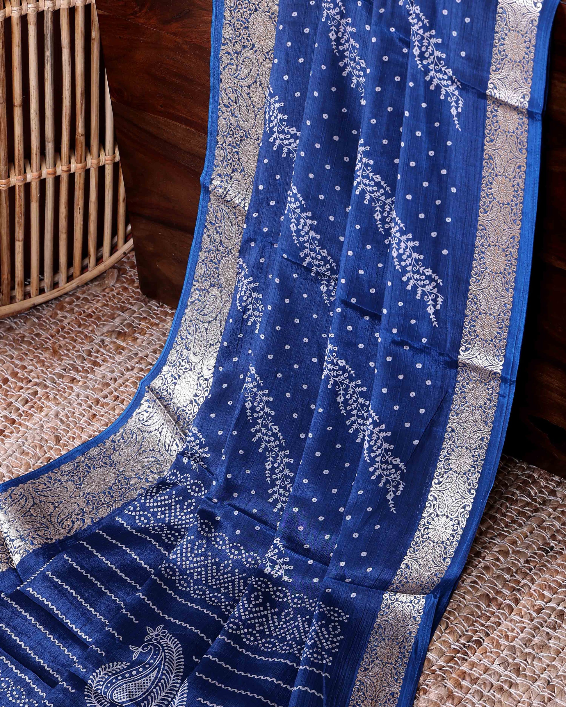 Elegant Dola Silk Saree with Delicate Floral Vine Buti and Intricately Woven Zari Border - Navy Blue