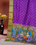 Elegant Dola Silk Saree with Traditional Peacock and Floral Motifs Border - Purple