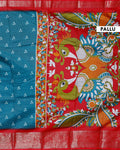 Elegant Dola Silk Saree with Traditional Peacock and Floral Motifs Border - Teal