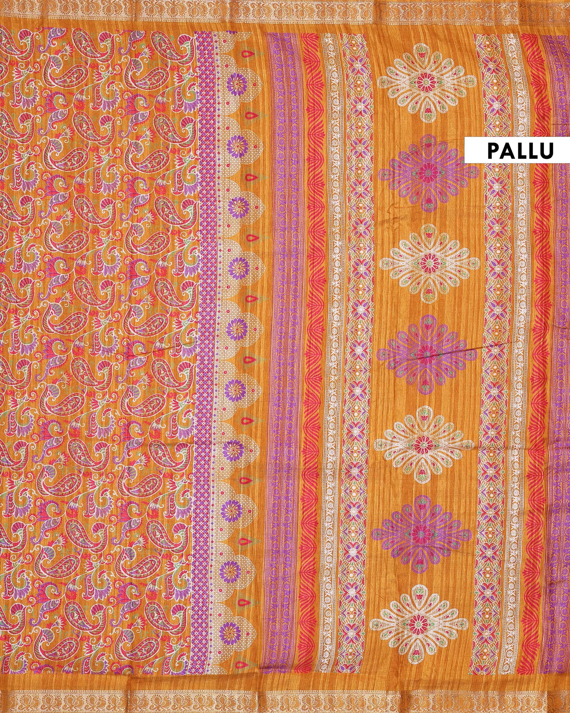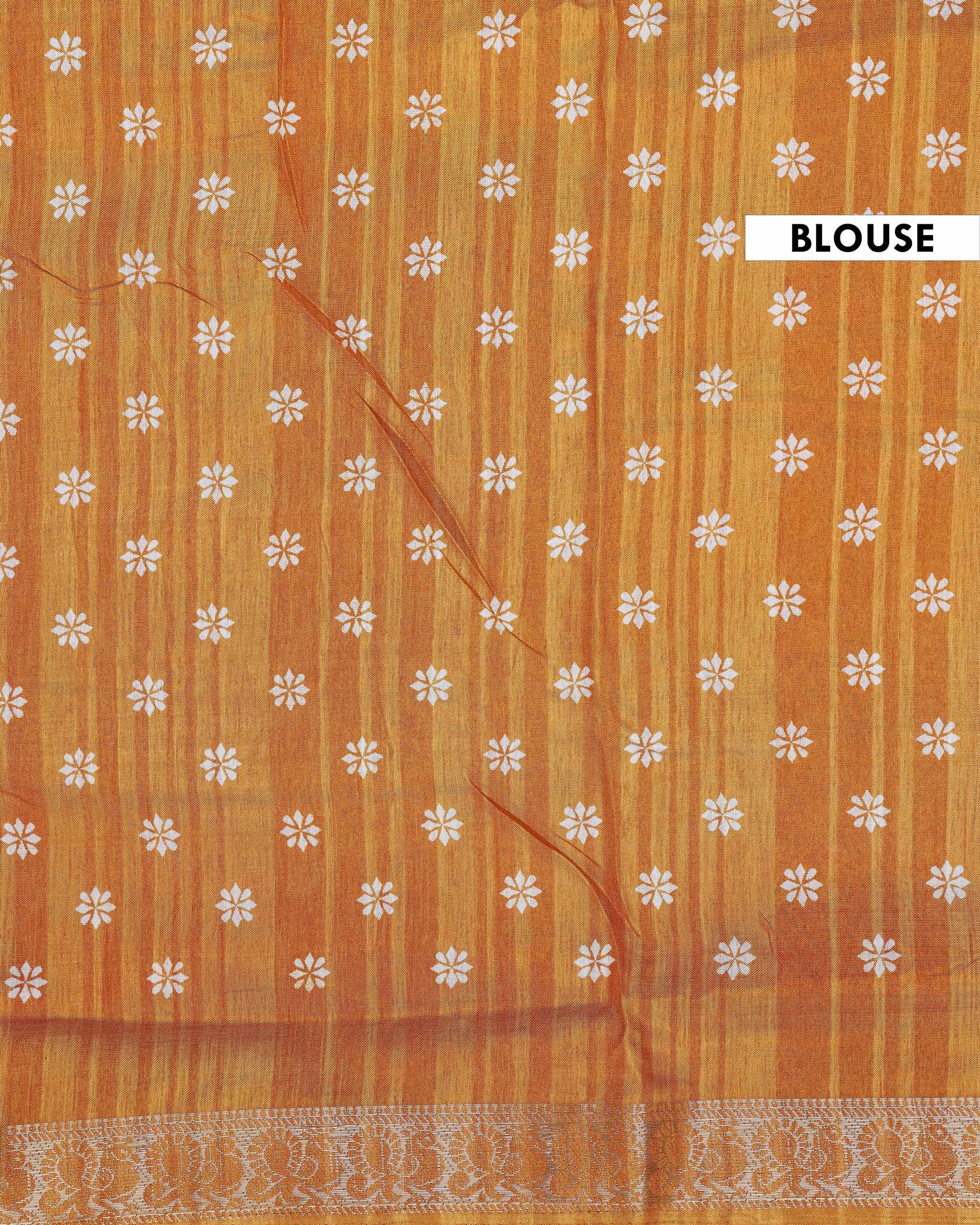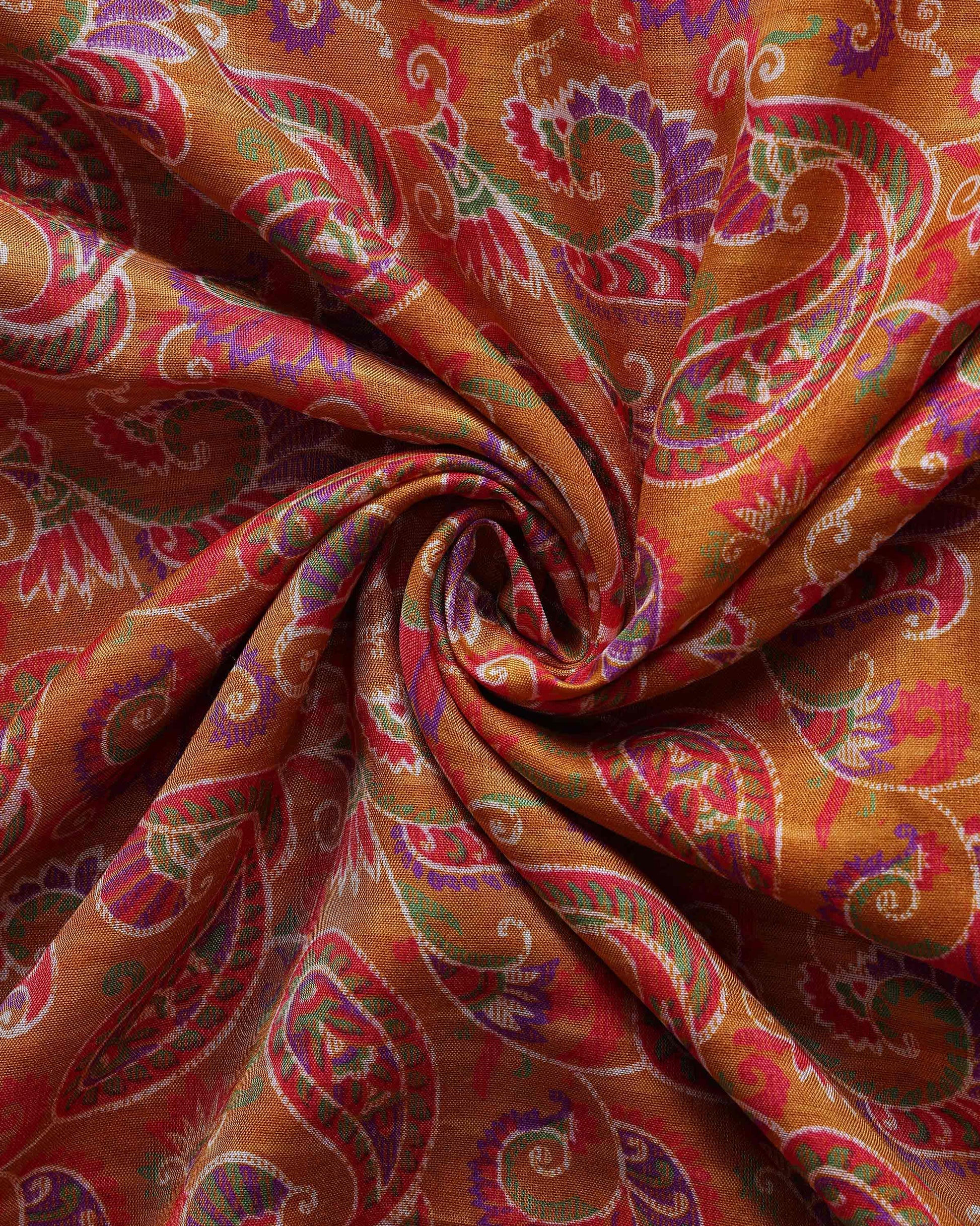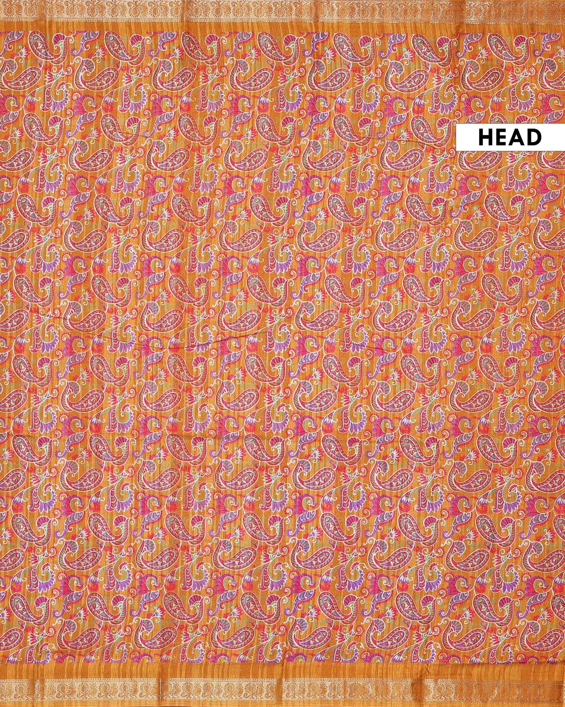 - This stunning Orange Dola Silk saree traditional Paisley prints and a rich border offers a luxurious feel and graceful drape
