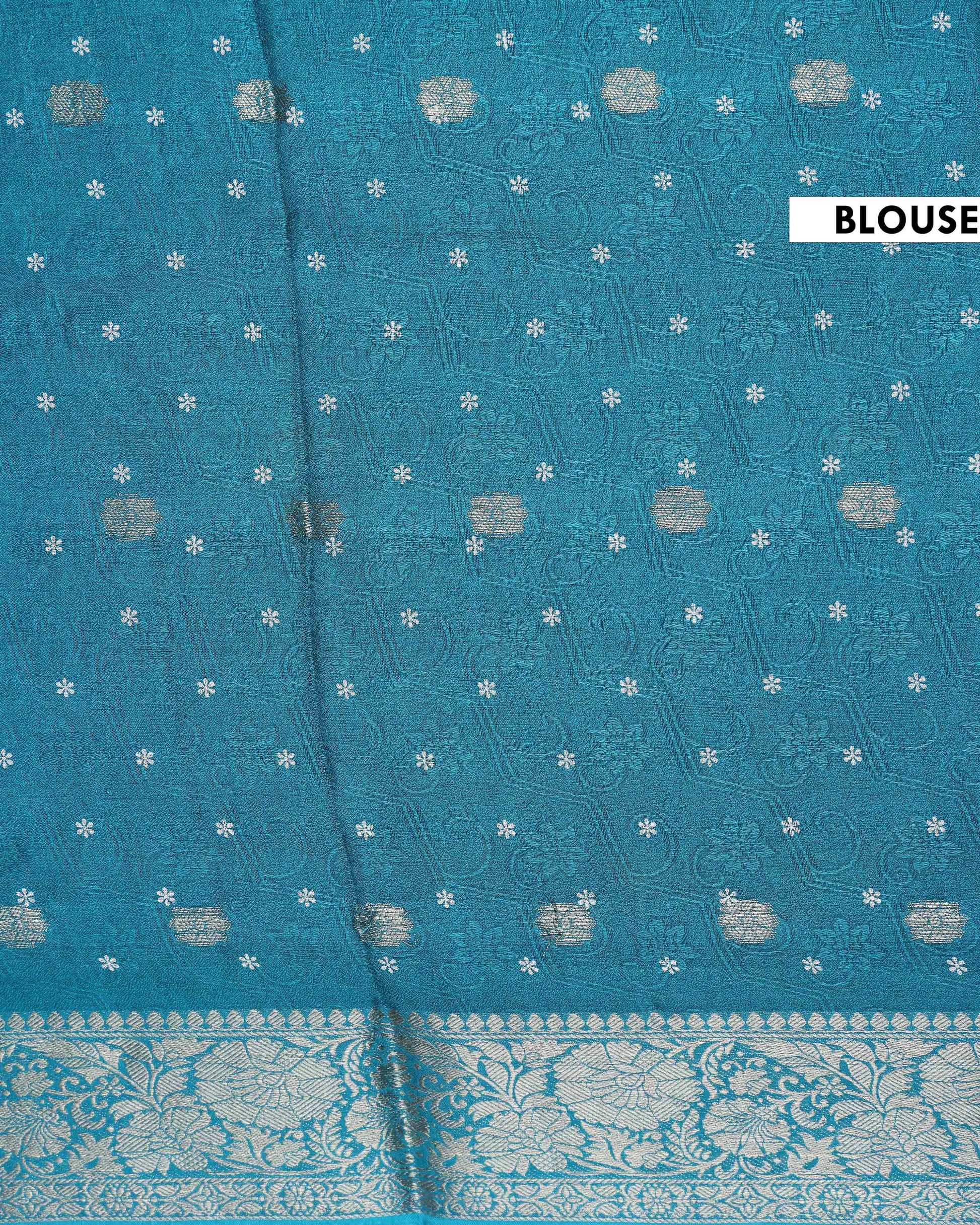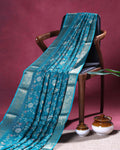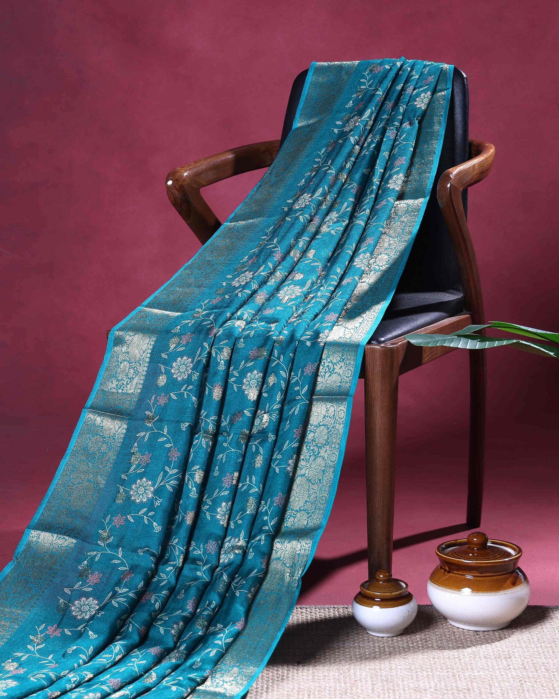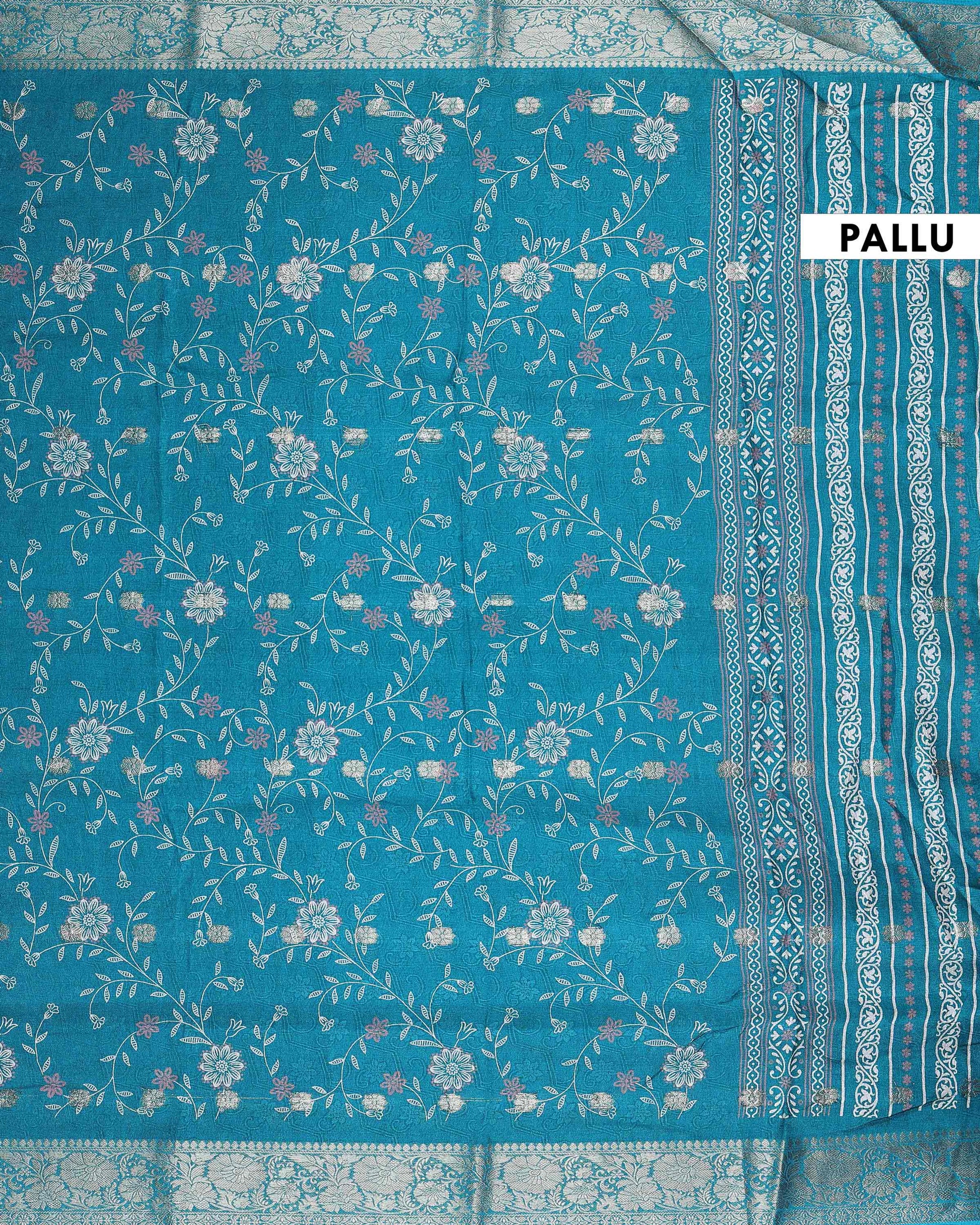 Elegant Dola Silk Saree with Subtle All Over Floral Print and a Graceful Zari Border - Blue