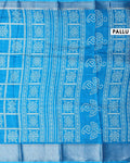 Elegant Dola Silk Saree with Traditional Geometric Square Buta Motifs and Intricately Woven Classic Border - Sky Blue