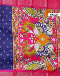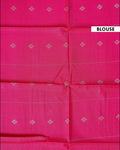 The vibrant pink border and pallu are adorned with traditional peacock and floral designs making it a stunning choice for festive occasions.