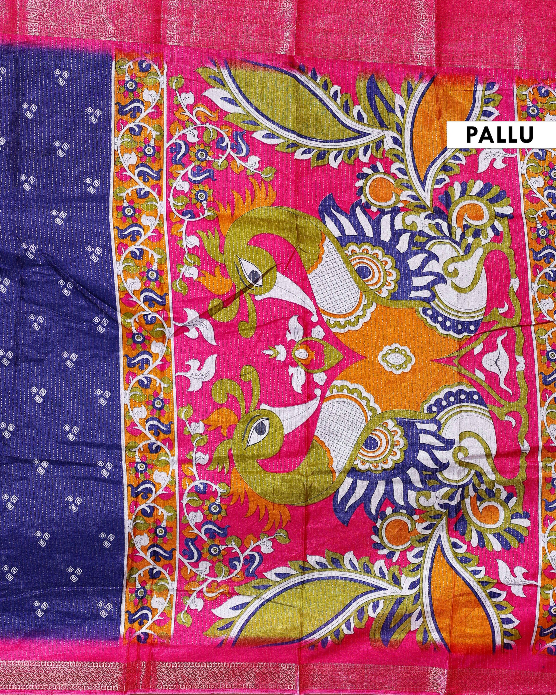 - This elegant Dola silk saree a rich blue body with delicate butti motifs