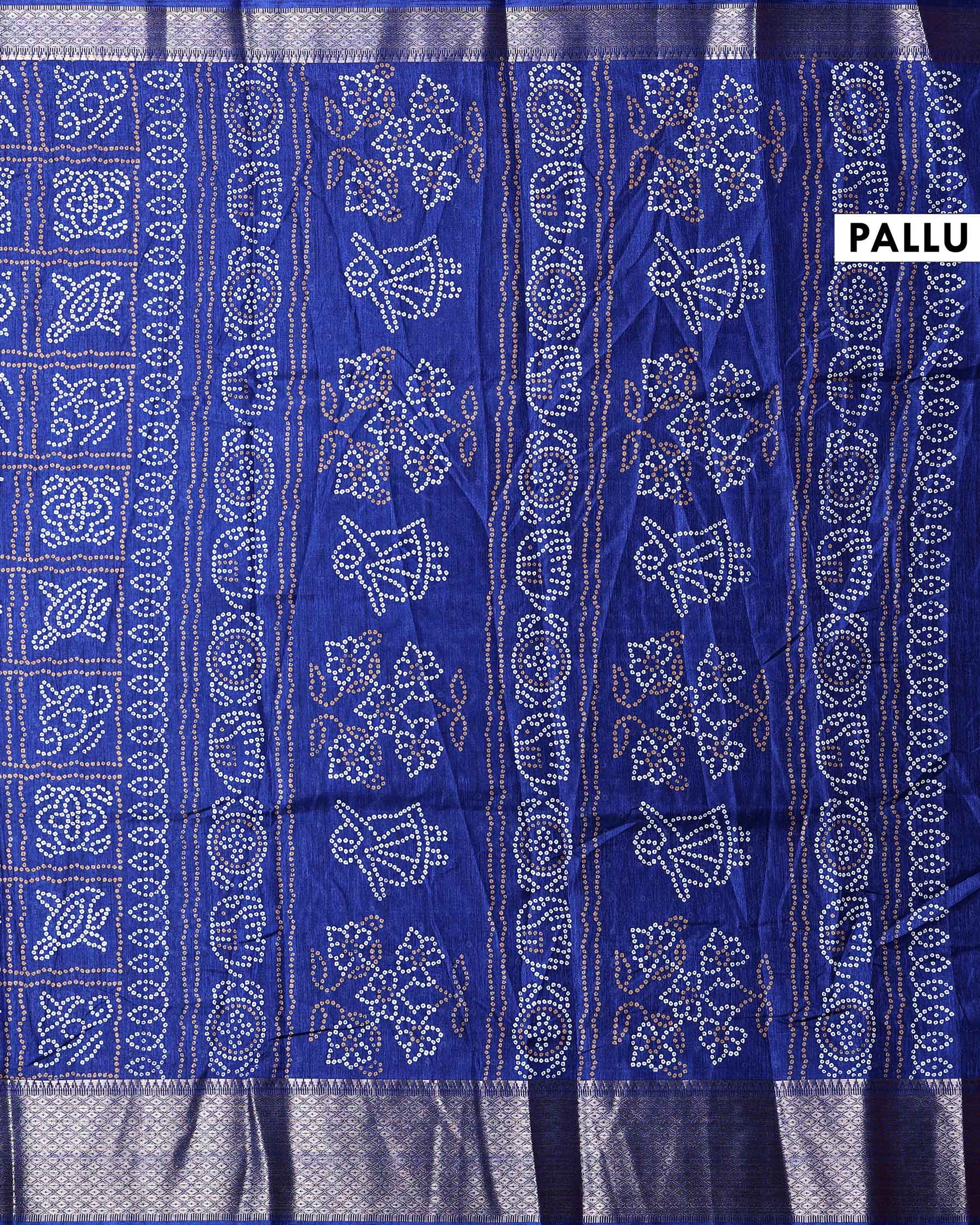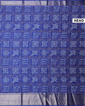 Elegant Dola Silk Saree with Traditional Square Buta Motif Pattern and Intricately Woven Ornamental Zari Border - Navy Blue