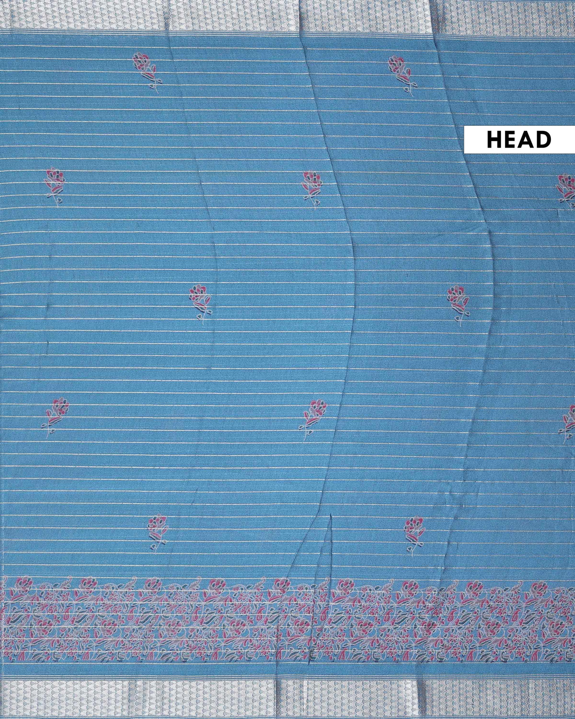 Elegant Dola Silk Saree with Vertical Stripes Intricate Floral Butta Motifs and Traditional Zari Woven Border - Teal