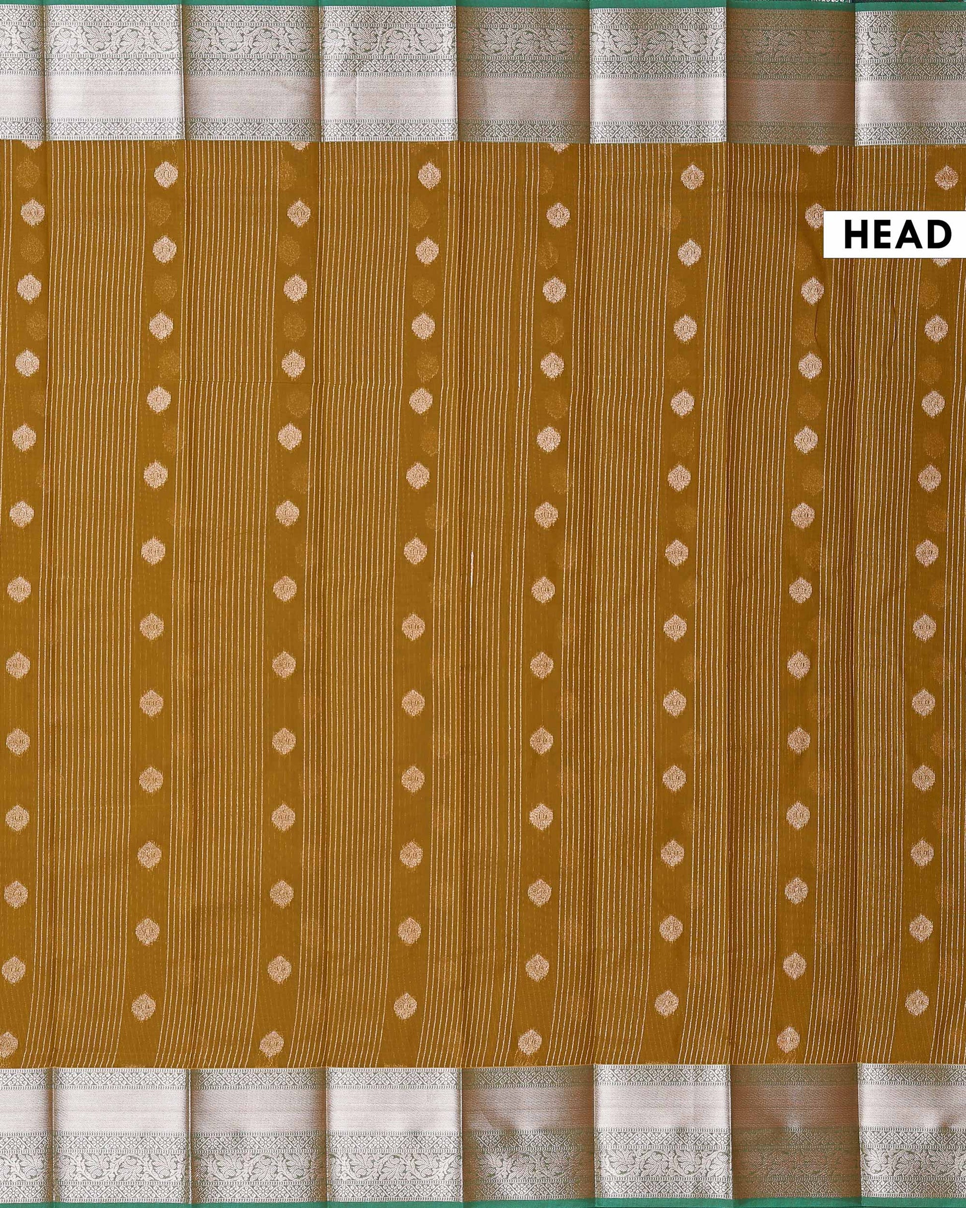 - Elevate your style with this elegant Olive Green Elampillai silk cotton saree shimmering silver zari stripes.