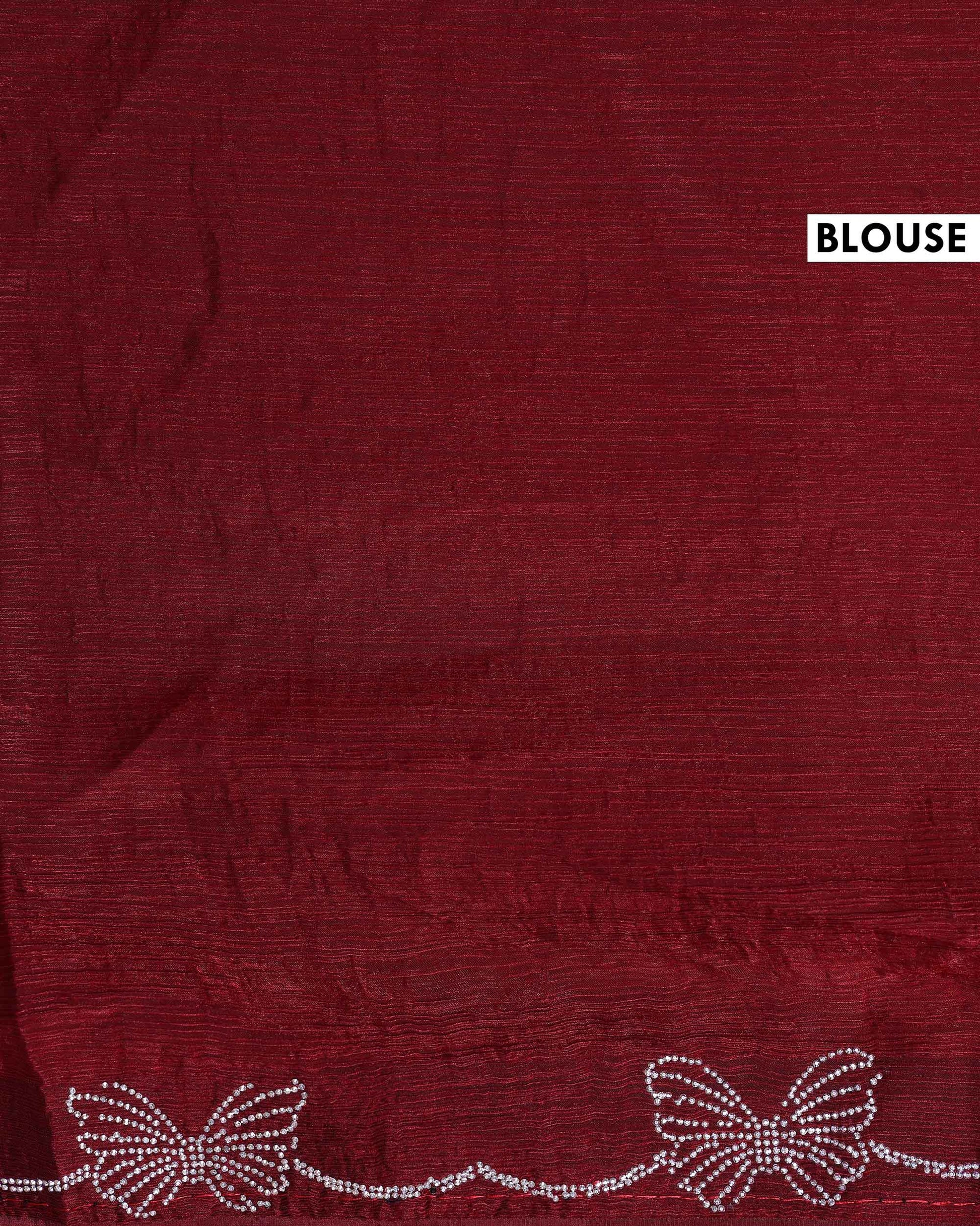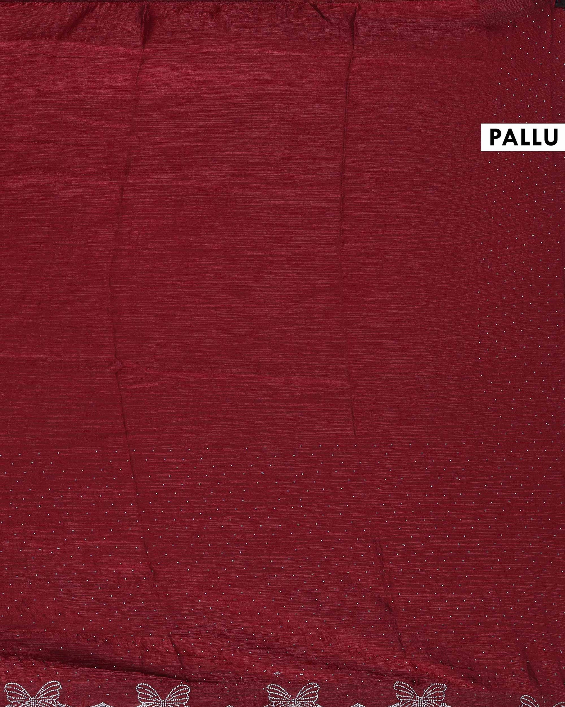 - Elevate your style with this stunning Maroon fancy saree delicate shimmering trim for a touch of elegance.