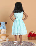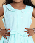Elegant Embroidered Sleeveless Kids Frock with Peter Pan Collar and Bow Waist Design - Blue